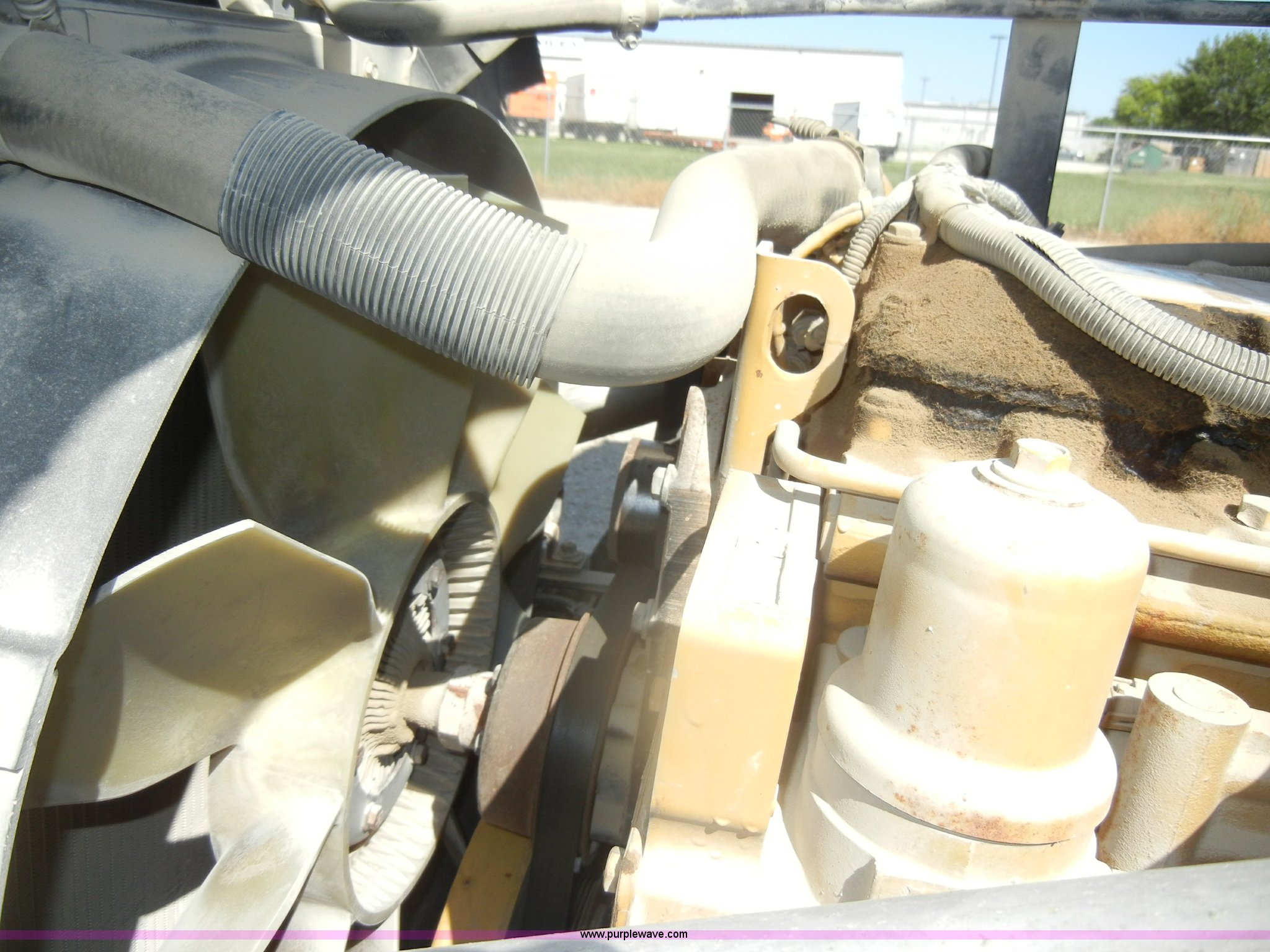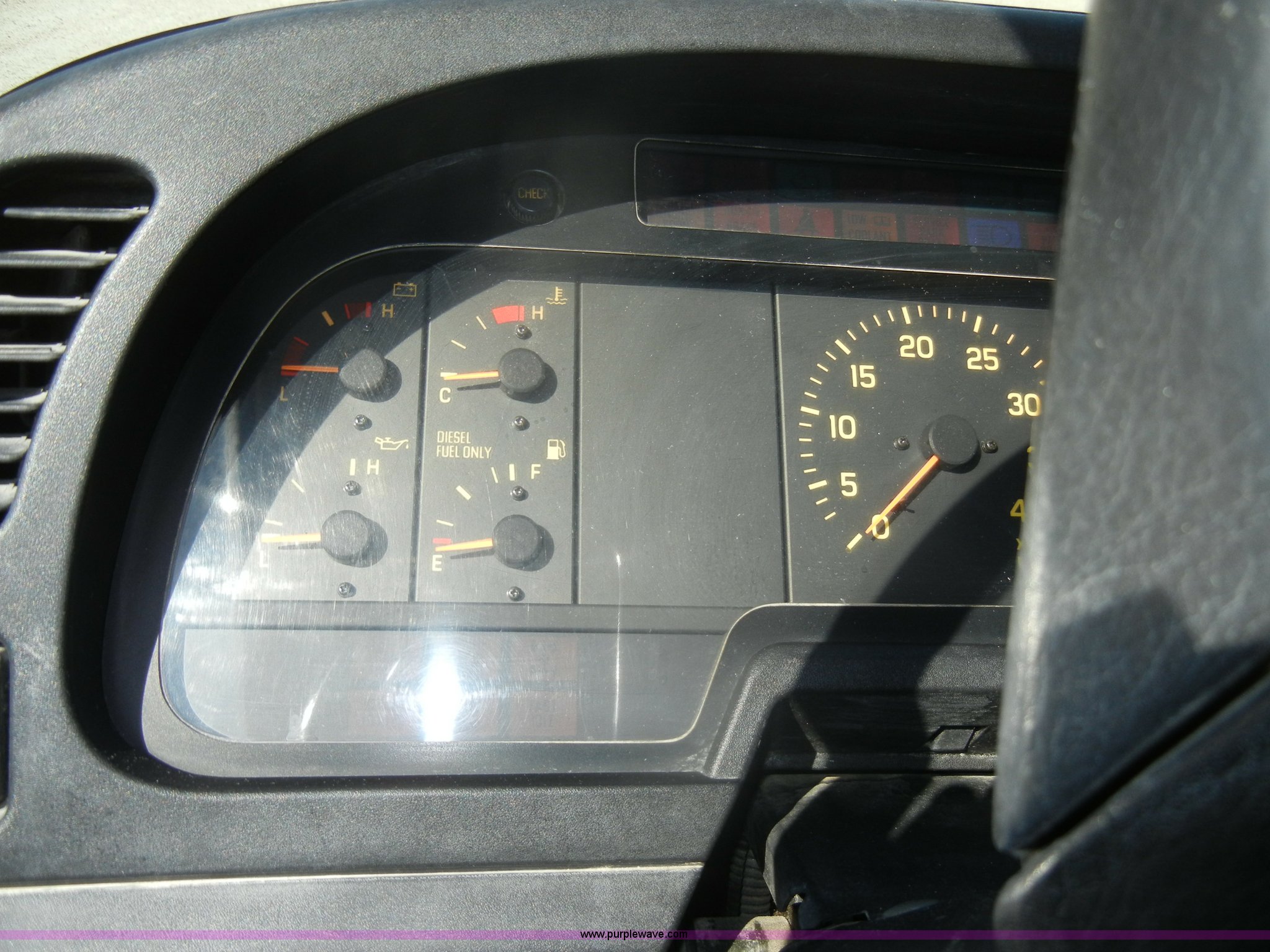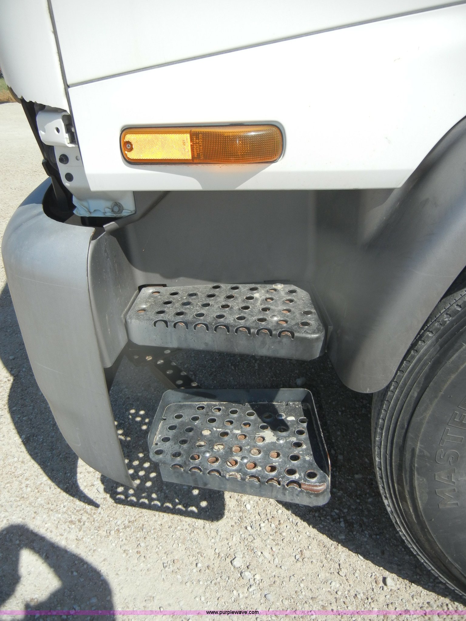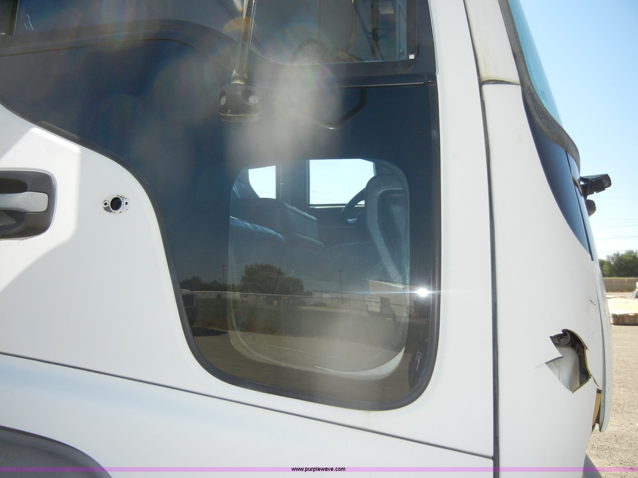 Purple Wave is selling a used Box Truck in Kansas. This item is a 1997 GMC T6500 box truck with the following: 114,946 miles on odometer, Caterpillar 3116 6.6L six cylinder diesel engine, 275 HP, Automatic transmission, AC and heat, Tilt, AM/FM, Manual windows and locks, Passenger daylight window, Vinyl interior, Brown cargo box, Model 800W2493 1/2, Serial S533787, 292" x 95", Rear roll up door, 2,000 lb lift, Wood flooring, Interior lights, Single side entry door, Damaged,, Dual 50 gallon fuel tanks, Spring suspension, Hydraulic brakes, 11R22.5 tires, GVWR 25,950 lbs, FAWR 10,000 lbs, RAWR 17,850 lbs, Passenger side mirror cracked, Interior/exterior cosmetic damage, Damage to hood