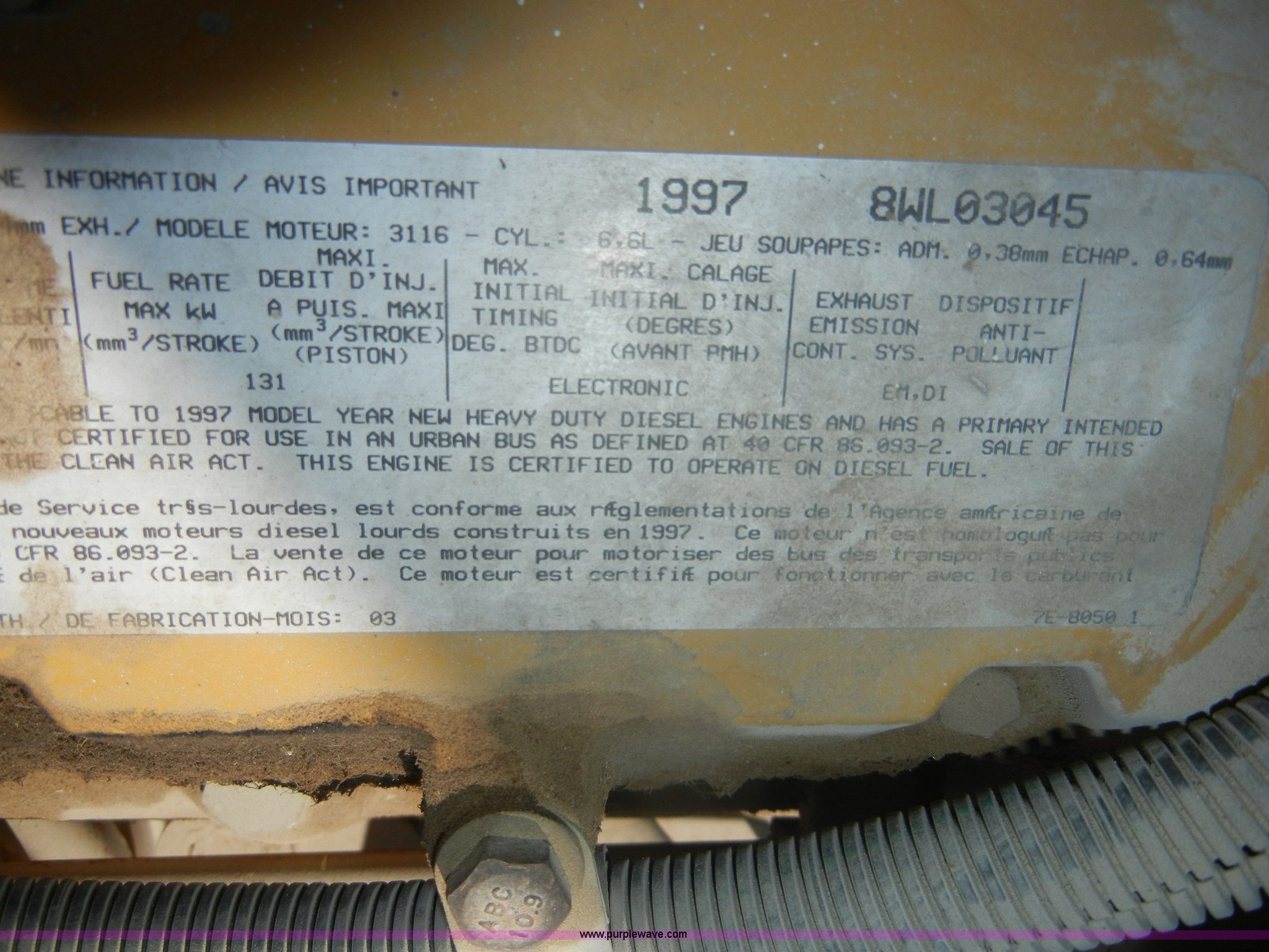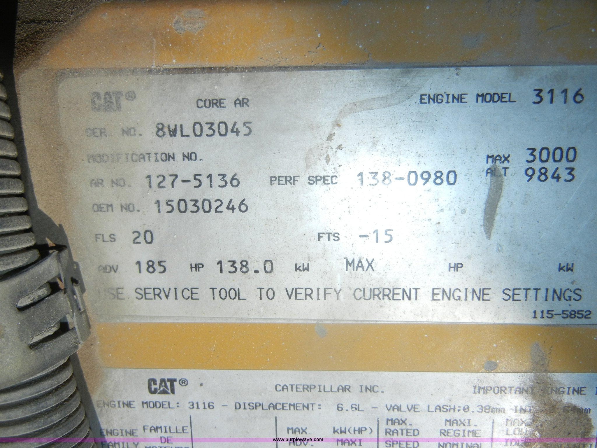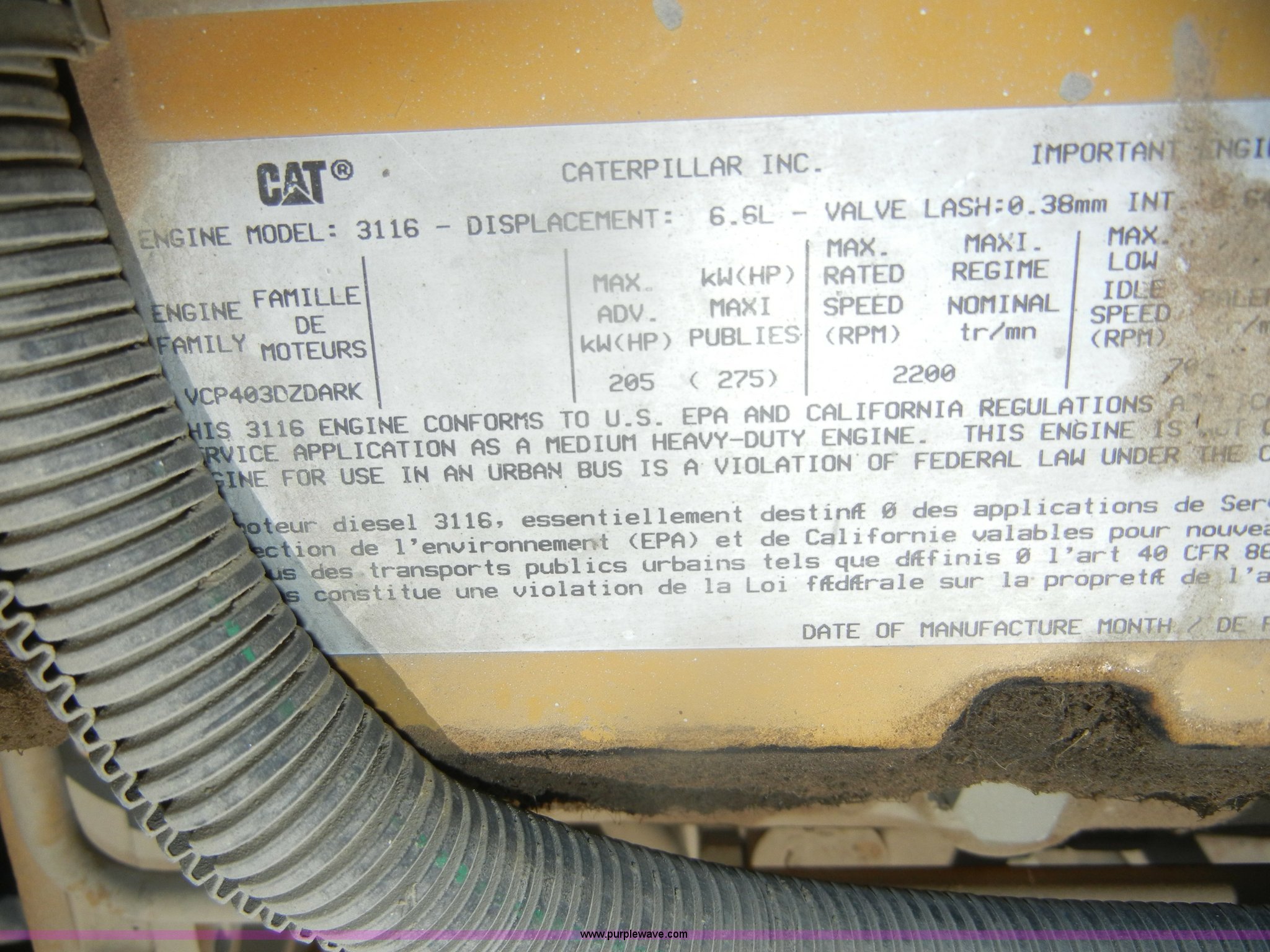 - Caterpillar 3116 6.6L six cylinder diesel engine