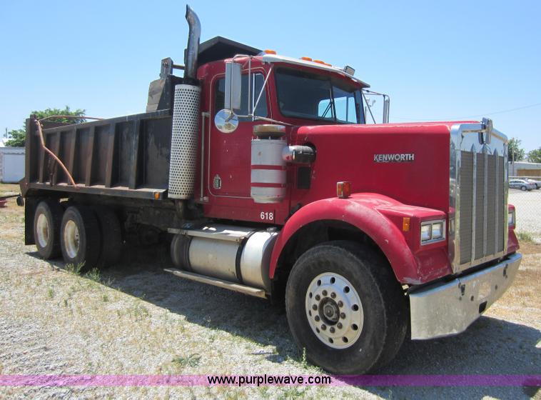 Purple Wave is selling a used Construction Dump Truck in Oklahoma. This item is a 1984 Kenworth W900 dump truck with the following: 329,030 miles on odometer, Detroit 12.1L V8 diesel engine, Model 8V92TA, 13 speed manual transmission, Twin screw, Heat, Air suspension seat, 16' dump bed, Air end gate, Three stage single ram, Exterior visor, Chrome bumper, Trailer wiring, Dual 120 gallon fuel tanks, Spring suspension, PTO, Air brakes, 4.44 gear ratio, 11R22.5 tires, GVWR 50,000 lbs, FAWR 12,000 lbs, IAWR 19,000 lbs, RAWR 19,000 lbs, Traces of coolant in engine oil