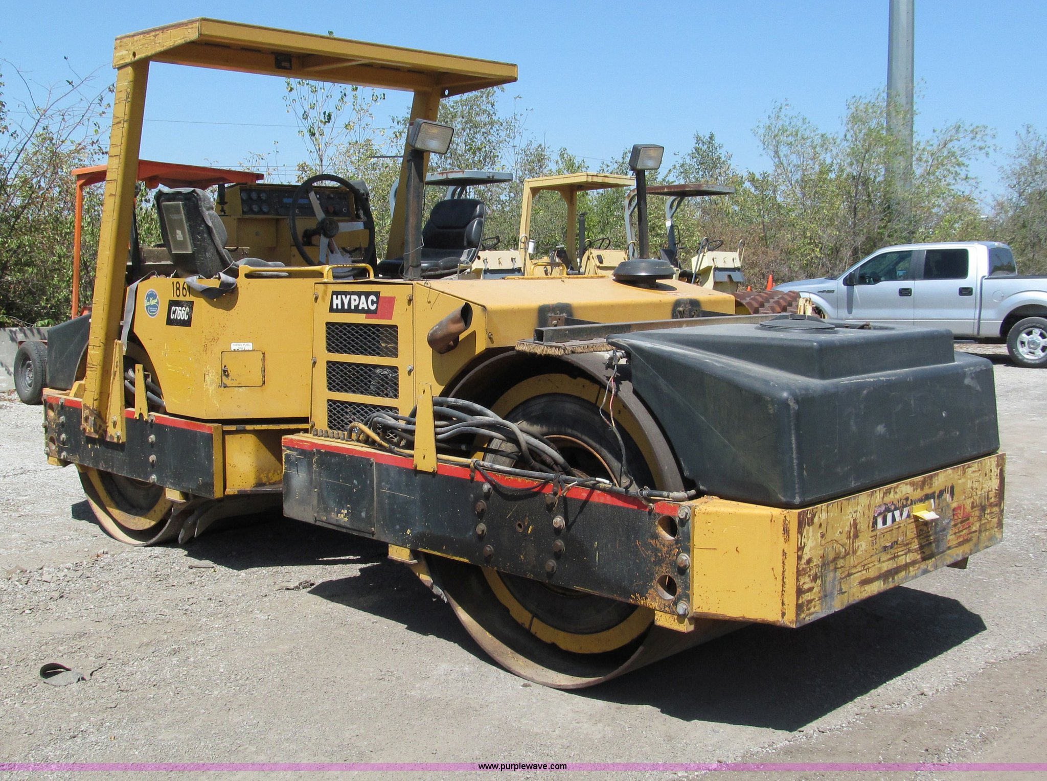 Purple Wave is selling a used Double Drum Roller Compactor in Missouri. This item is a Hypac C766C articulating vibratory roller with the following: 8,508 hours on meter, Cummins four cylinder turbo diesel engine, Hydrostatic transmission, ROPS with canopy, Dual side seats and drive controls, 64"W x 48" diameter rollers, Front and rear vibrate, Light kit, Front and rear water system and sprayers, 19,200 lbs. base operating weight, Serial 109C20902338, Unit# 1861