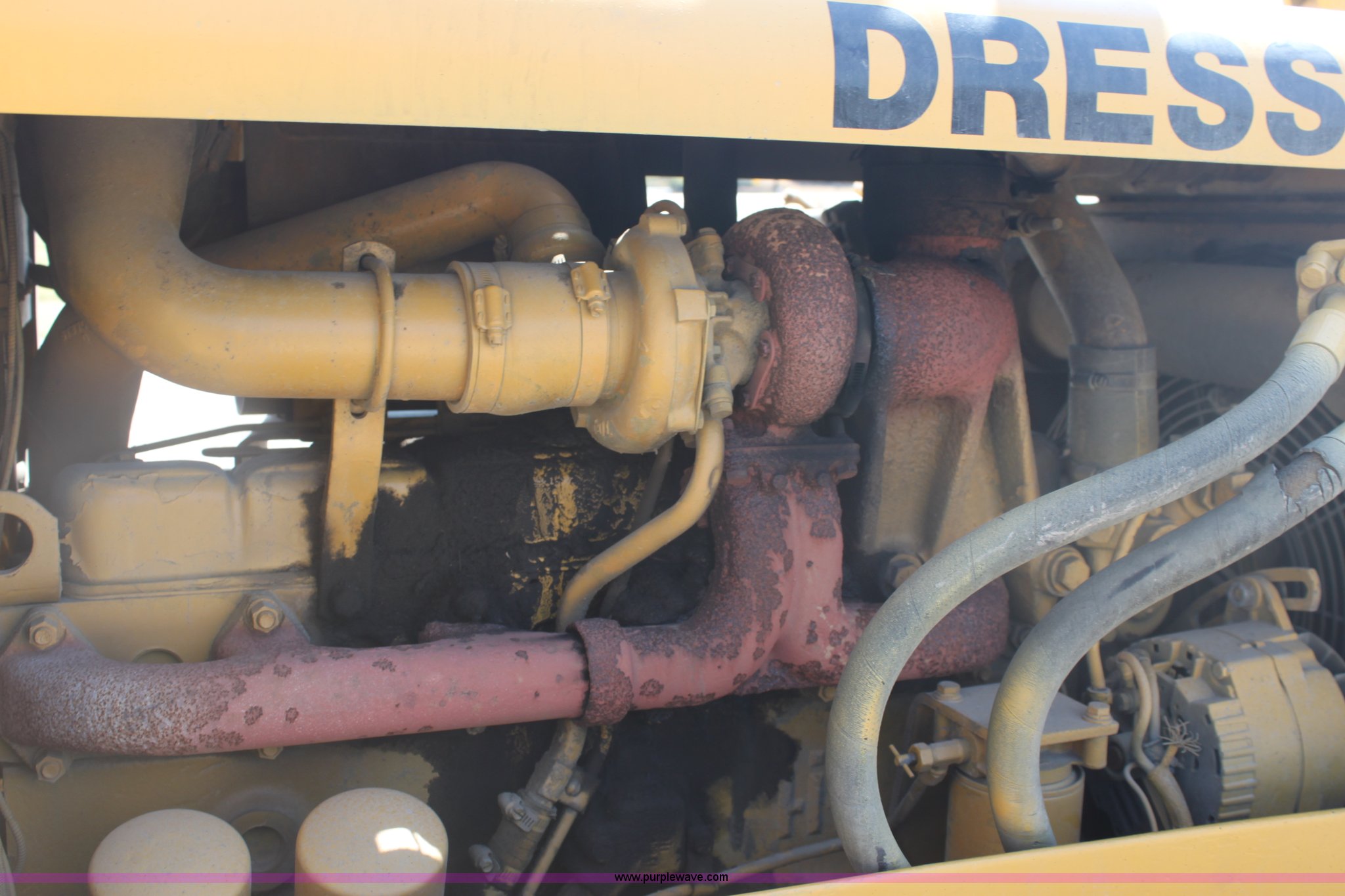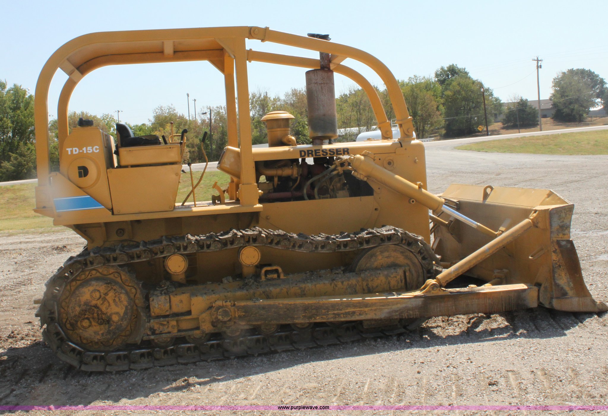 Purple Wave is selling a used Crawler Dozer in Kansas. This item is a Dresser TD-15C dozer with the following: 1,948 hours on meter, International six cylinder turbo diesel engine, Serial 468TM2U484538, Powershift transmission, 4F-4R gears, Canopy, Clutch brake, 6-way dozer blade, 123"W, Angle, Tilt, Rear pin hitch, (6) bottom rollers, 20"W single grouser pads, 32,975 lbs. base operating weight, Exhaust manifold elbow leaks, New elbow included