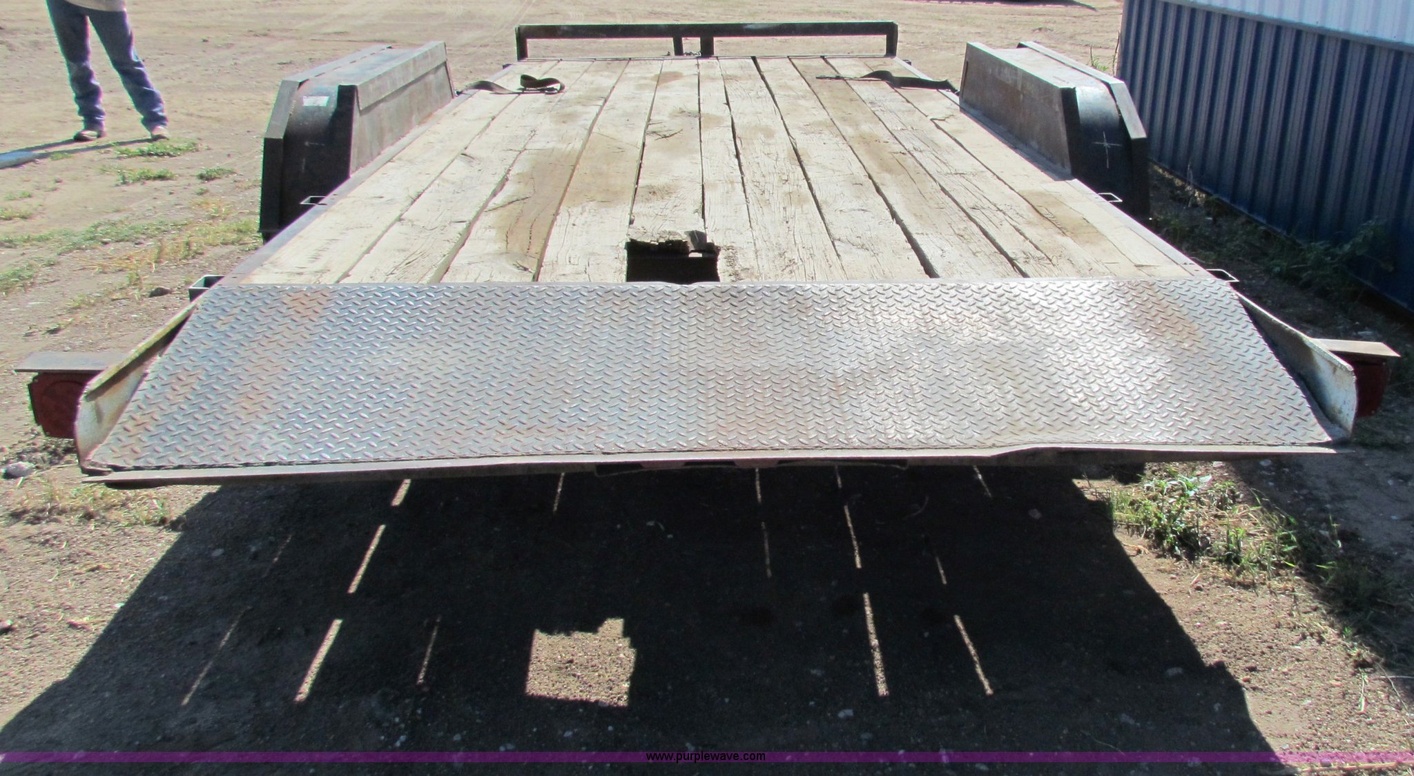 Purple Wave is selling a used Car or Utility Trailer in Kansas. This item is a 2002 Star 18' equipment trailer with the following: 82.5"W, 16' deck, 2' dove tail, Tilt deck, Electric brakes, Dual 3,500 lb axles, 2" ball, 7.00-15ST tires, 10 ply, Deck lift jack needs replaced