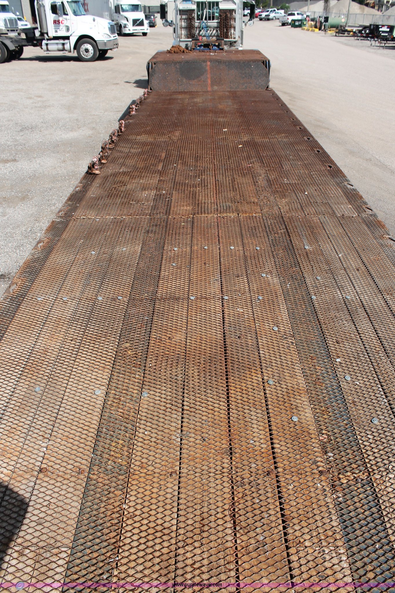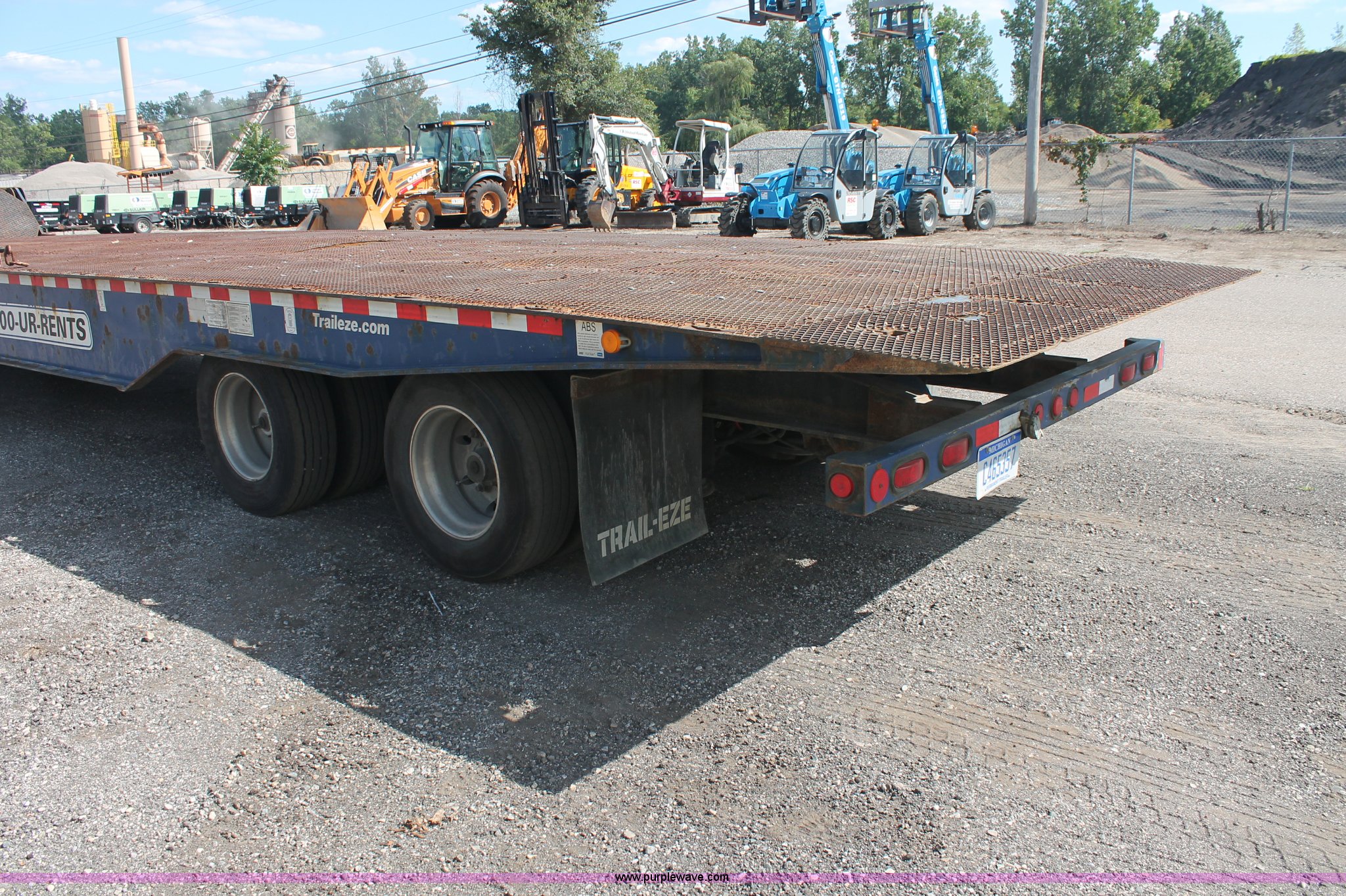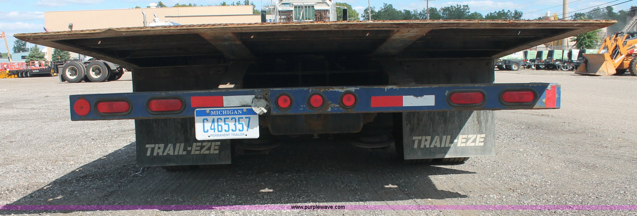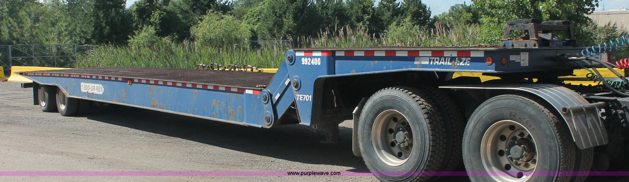 Purple Wave is selling a used Equip. Trailer in Michigan. This item is a 2007 Trail-Eze TE701 48' heavy duty slide axle trailer with the following: 37'L main deck, 9'4"L upper deck, 2.5'L deck drop, 8' knife edge, 8.5'W, 3'H loaded main deck, 15' axle slide, (4) Hi-Tensile steel I-beam design, 1.5" oak decking with cross-members on 12" centers, All weather steel mesh, Keyhole and d-ring tie down mounts, (8) ratchet binders, 12,000 lb hydraulic winch, Two speed landing gear, Air weigh trailer scale, Emergency brake, Air suspension, Air brakes, 40,000 lbs in 10' concentrated capacity, 245/70R17.5 tires, GVWR 87,300 lbs, GAWR 22,060 lbs, EIN 992400