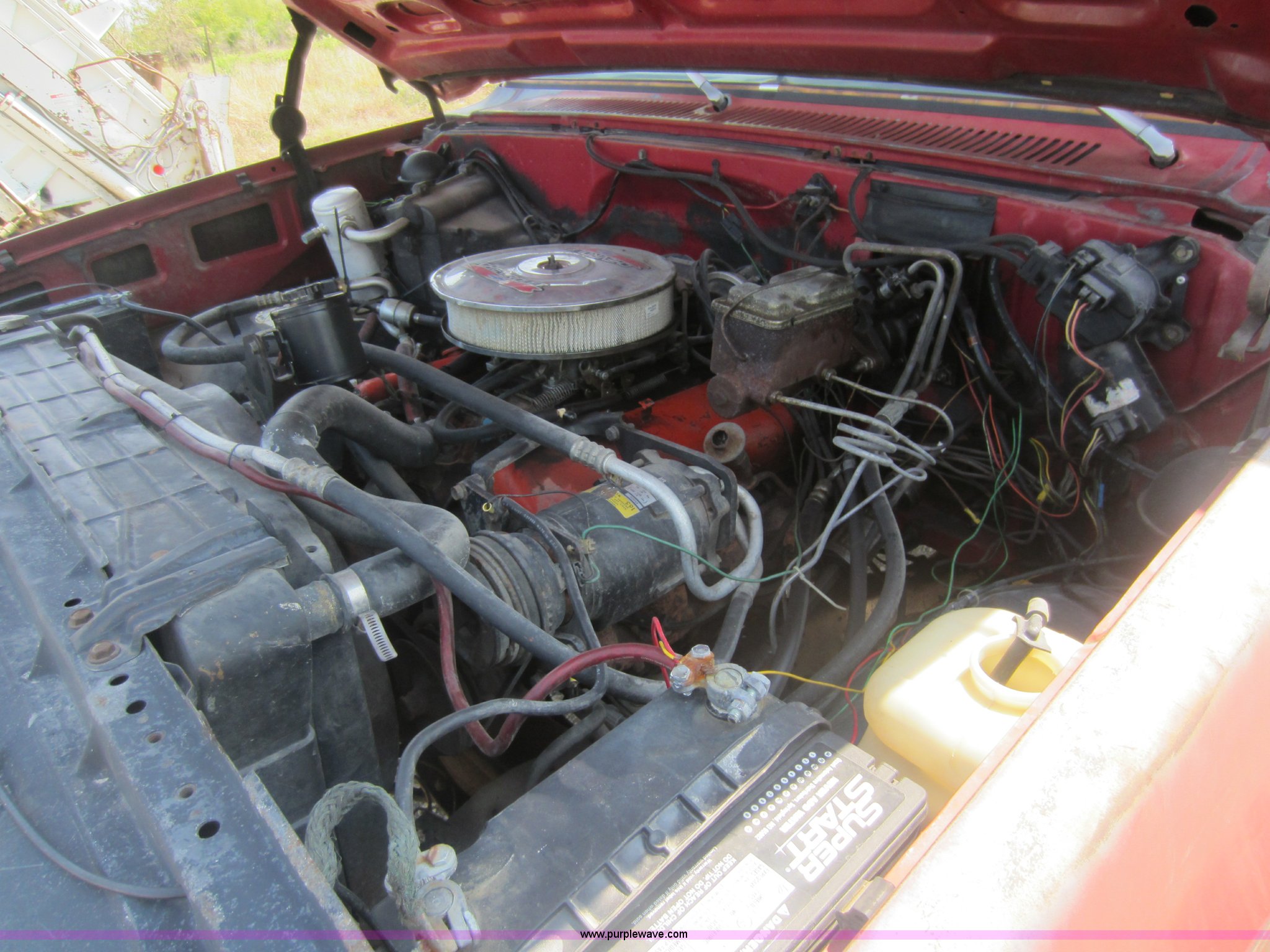 Purple Wave is selling a used Rollback or Tow Truck in Kansas. This item is a 1983 GMC C3500 pickup truck with the following: 9,848 miles on odometer, Not Actual Mileage, 454 V8 7.4L gas engine, Turbo 400 automatic transmission, AC and heat, Tilt, AM/FM/cassette, Power windows and locks, Cloth interior, Herrin car hauler body with tow bar, Receiver hitch, Trailer wiring, LT235/85R16 tires, Cracked windshield, Front winch motor inoperable, Rear winch solenoid inoperable, Spotlights inoperable, Excessive engine oil consumption