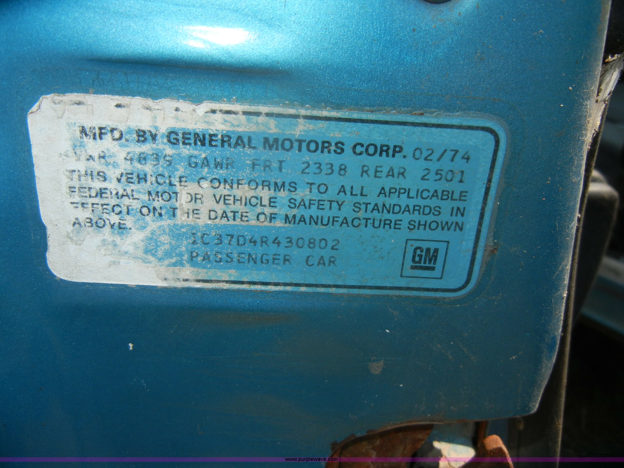 Purple Wave is selling a used Passenger Vehicle in Kansas. This item is a 1974 Chevrolet Chevelle Malibu with the following: 77,360 miles on odometer, 235 six cylinder gas engine, Does not run, Three speed automatic transmission, Heat, AM/FM, Manual windows and locks, Vinyl interior, 195/75R14 tires, Does not run, No radiator, power brakes, power steering, Interior/exterior cosmetic damage, Body rust, Paint fading, Cracked windshield, Dents and scratches, Cracked dash