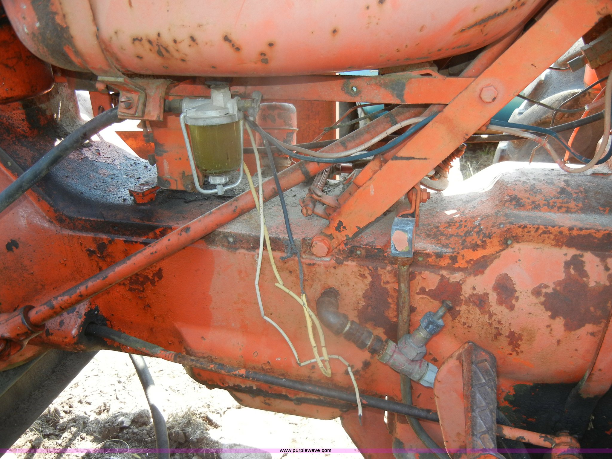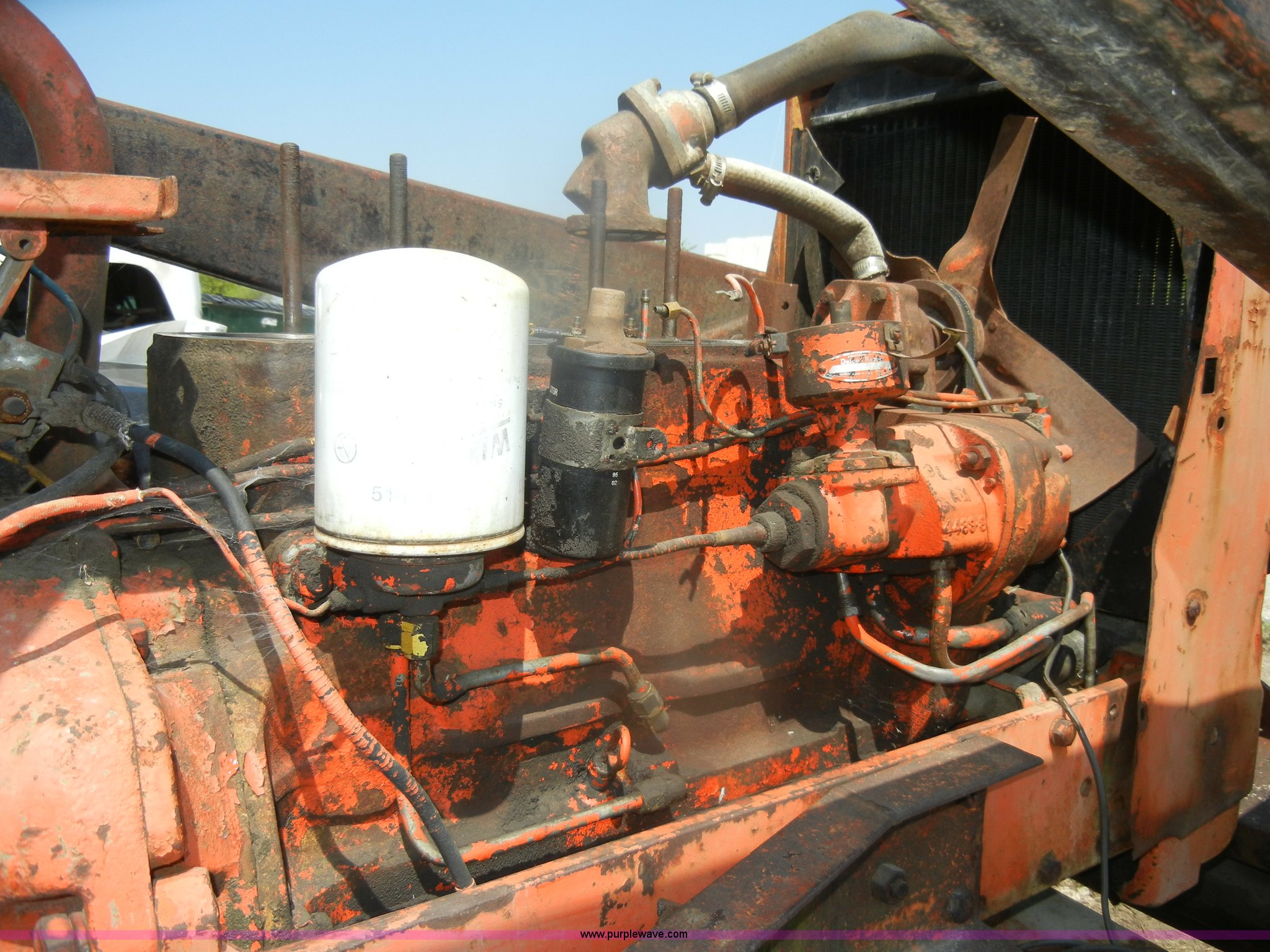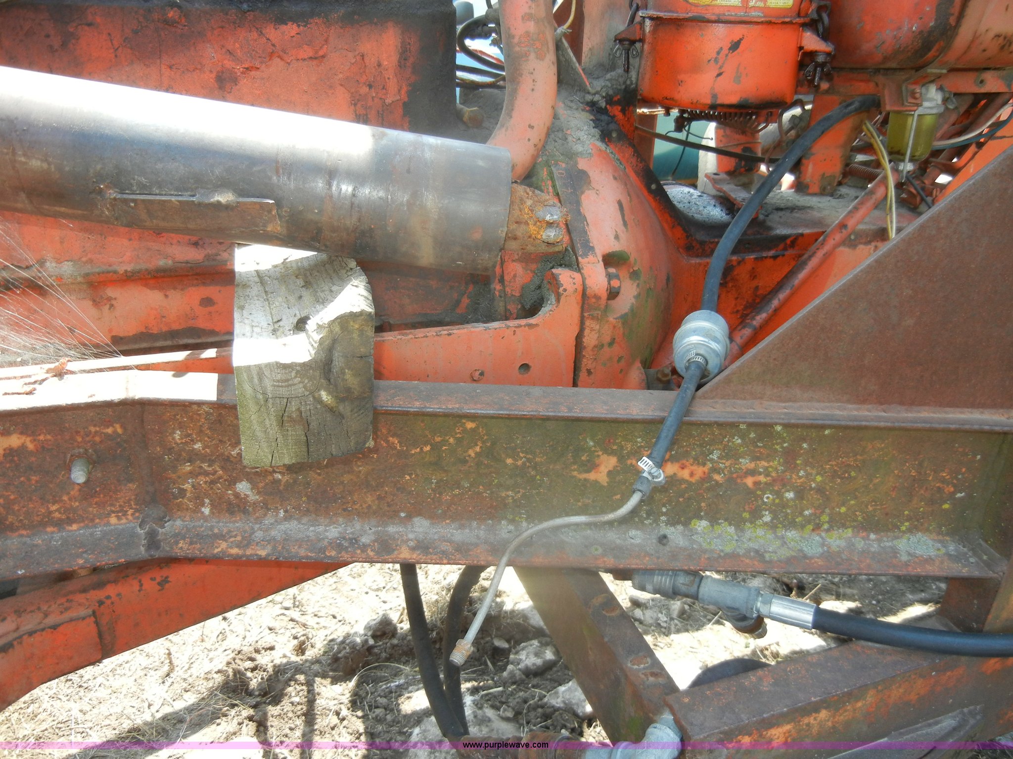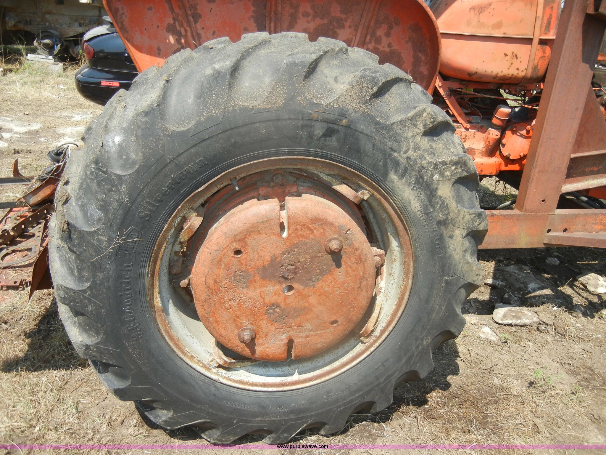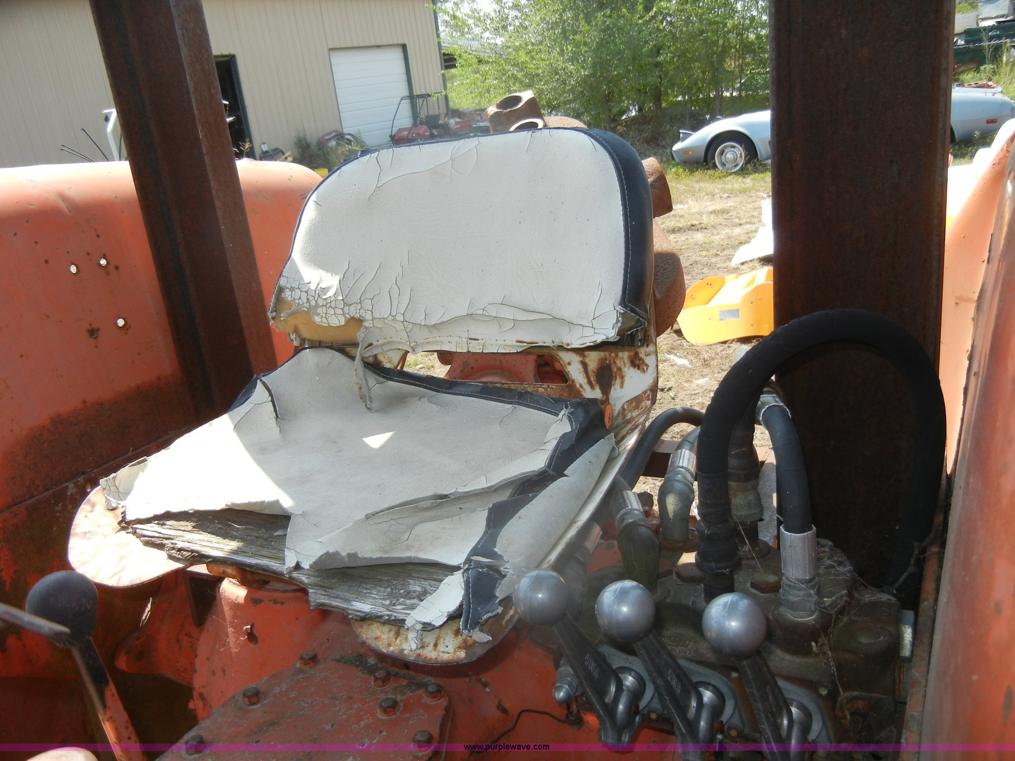 Purple Wave is selling a used Tractor in Kansas. This item is a Allis-Chalmers D17 tractor with the following: 1,005 hours on meter, Custom canopy, Manual transmission, 4F-1R gears, 540 PTO, Three point hitch, Rear hydraulics, Front loader, 14.9-28 rear tires, 5.50-16 front tires, No steering wheel, No front bucket or cylinders, Does not run, missing parts, Cylinder head needs put back on, Head gasket set, new in box, Valves, springs, and guides