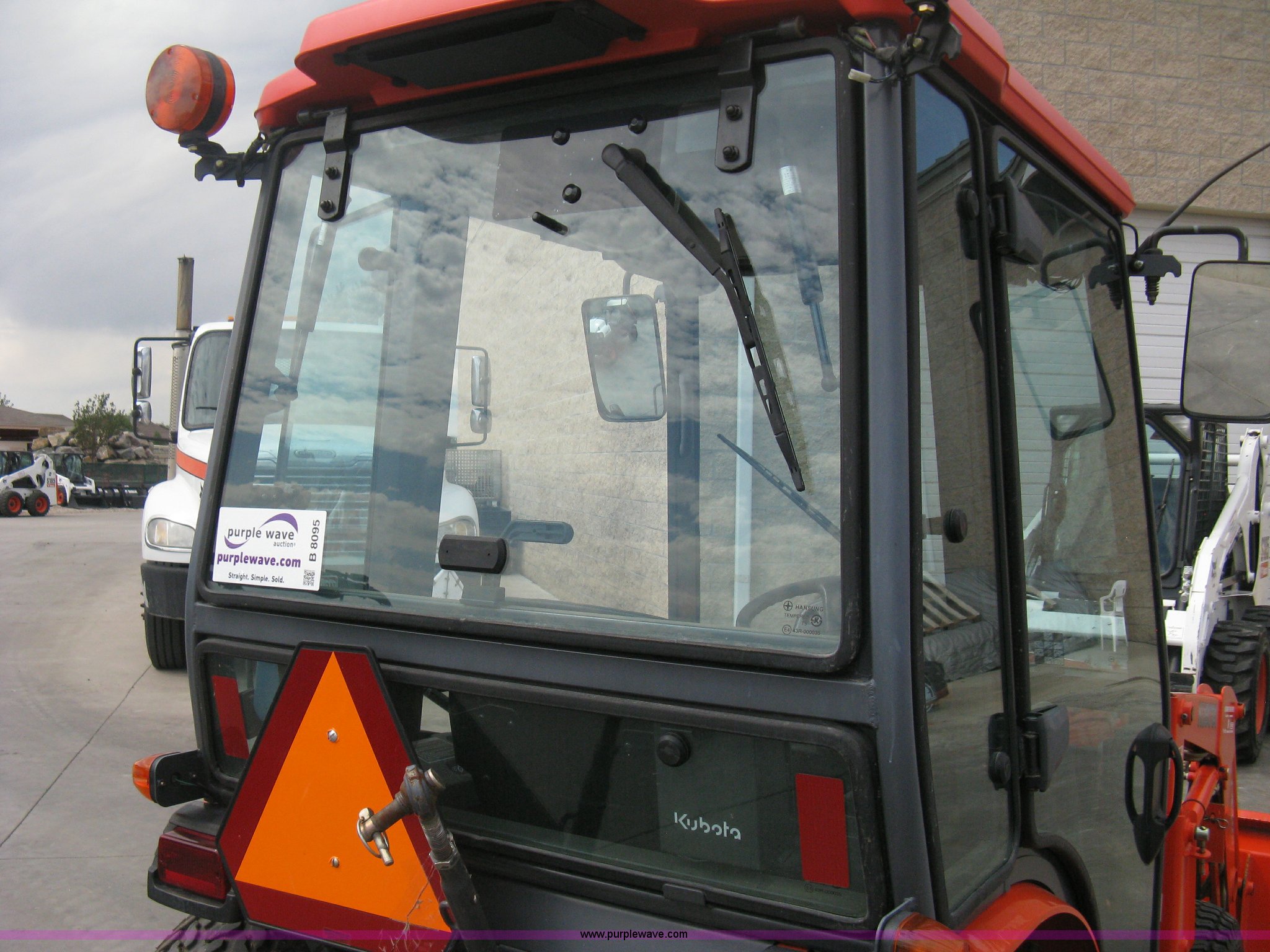 Purple Wave is selling a used Tractor in Colorado. This item is a 2008 Kubota B3030 MFWD tractor with the following: 212 hours on meter, Four cylinder diesel engine, Hydrostatic transmission, Front wheel assist, Enclosed cab, AC and heat, AM/FM, Windshield wipers, Tip-out windows, Joystick loader control, Tilt steering, Foot and hand throttle, Work lights, Forward throttle control, Three point, Draw bar, 540 PTO, Brush guard, LA403 loader, 60" bucket, Serial 11443, Kubota RCK60 belly mower, 60" cut, (3) blades, Serial 11304, 24x8.50-14 front tires, 13.6-16 rear tires, Serial B3030HSD52760, Unit# 1050465