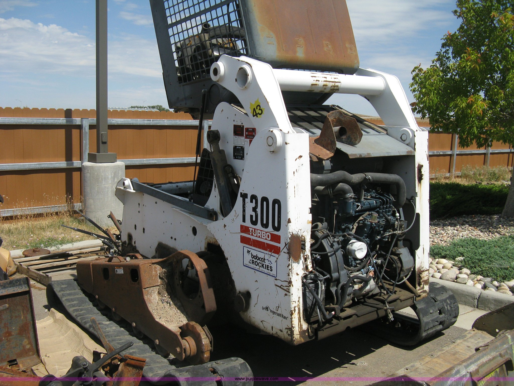 Purple Wave is selling a used Skid Steer Attach. in Colorado. This item is a 2005 Bobcat T300 track skid steer with the following: Kubota four cylinder diesel engine, Unknown operating condition, 17.5" rubber tracks, Not complete, parts only, Serial 525412526, Unit# 455994