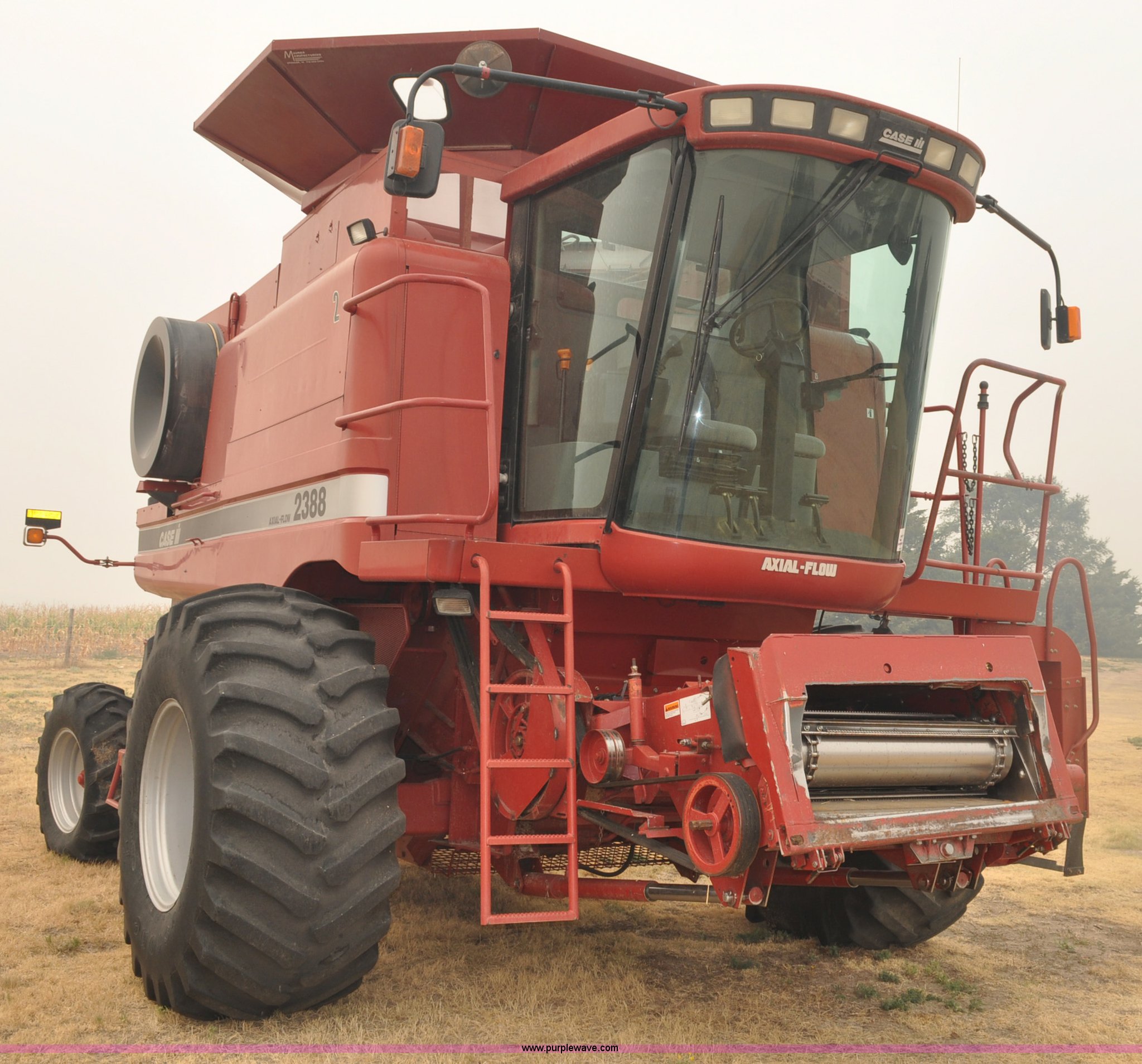 Purple Wave is selling a used Combine in Nebraska. This item is a 2004 Case IH 2388 combine with the following: 3,210 engine hours on meter, 2,313 separator hours on meter, Cummins 8.3L six cylinder diesel engine, 280 HP, Serial 46364017, Hydrostatic transmission, AC and heat, AM/FM/weatherband, Air seat, Instructor's seat, Tilt steering wheel, Shades and visors, Automatic header control, Float and tilt, Bin extension, Work lights, Straw chopper, Straw spreader, Two speed rotor, Yield monitor, Feeder house reverser, AFS Universal Display Plus, Specialty rotor, Corn concaves and grates included, Small wire concave slotted grates currently installed, 30.5L-32 drive tires, 14.9-24 rear tires, Operators manual, Serial JJC0275256