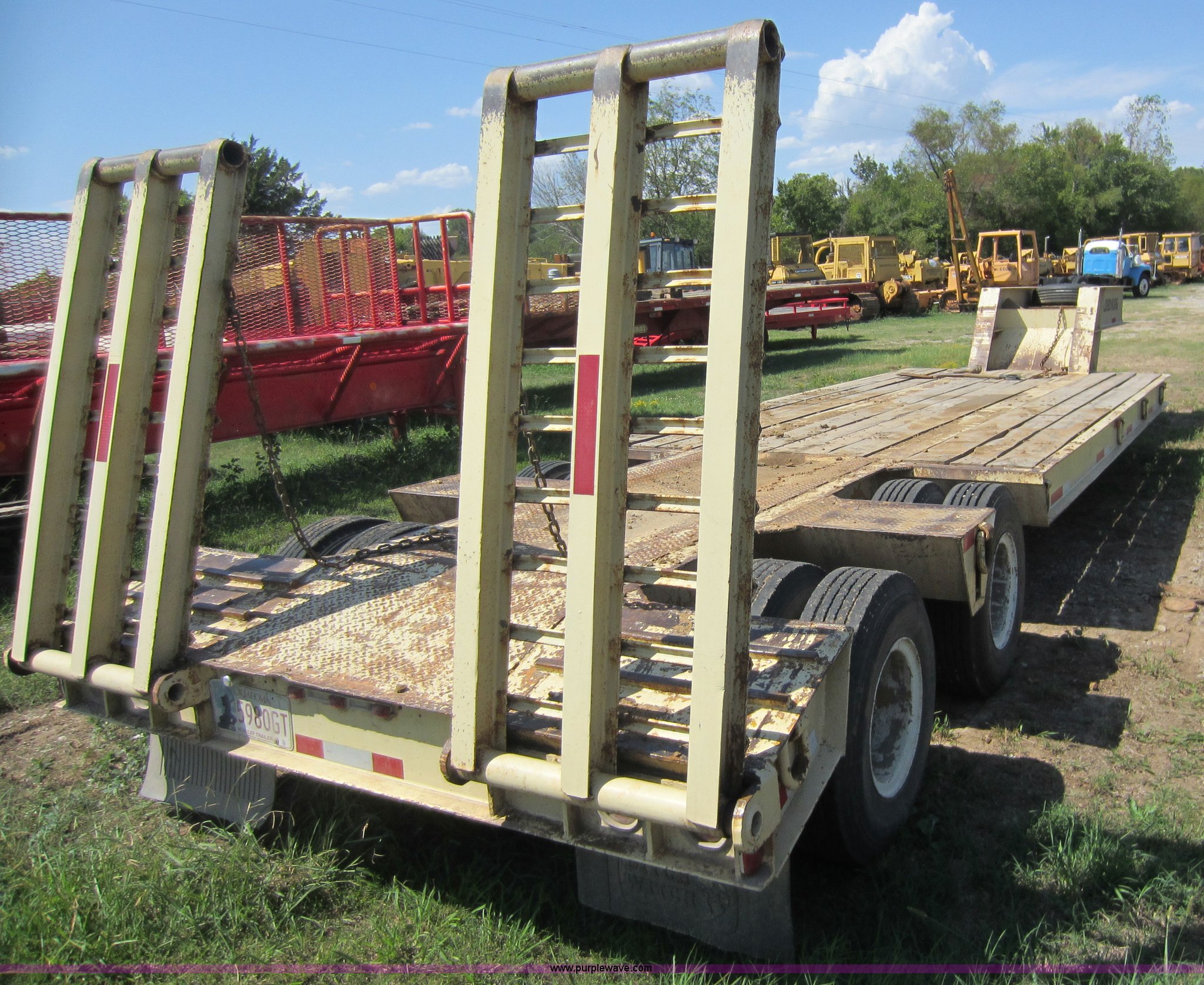 Purple Wave is selling a used Equip. Trailer in Oklahoma. This item is a 1976 Load King 25 ton equipment trailer with the following: 25'L x 96"W, Wood floor, (2) loading ramps, Air brakes, 8.25R15TR tires, Spare tire