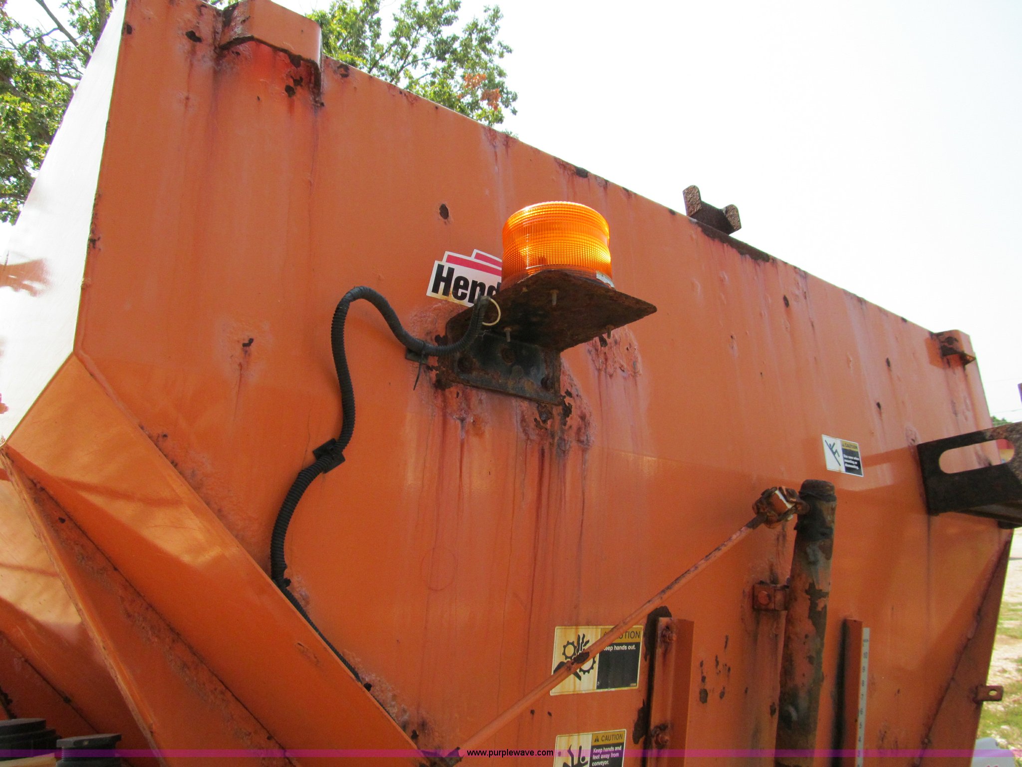 Purple Wave is selling a used Truck Part and Attach. in Missouri. This item is a Henderson 10' salt/lime spreader with the following: Model WSHX10X60, Hydraulic drive, Pioneer fittings, Dual liquid chemical tanks, Approx. 200 gallon total, 10' x 60"W, 12v chemical pump, Last used in 2011, Serial WSH22368