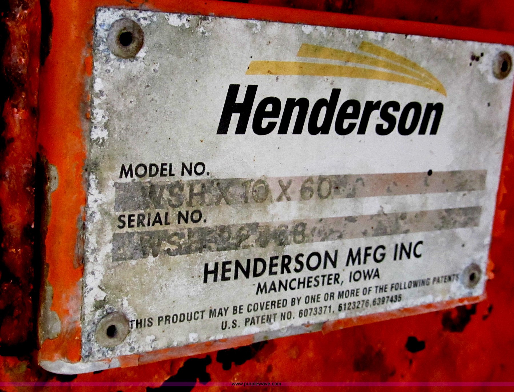 Henderson 10' salt/lime spreader. Model WSHX10X60, Hydraulic drive, Pioneer fittings, Dual liquid chemical tanks Approx. 200 gallon total, 10' x 60"W, 12v chemical pump, Last used in 2011, Serial WSH22368. Shipping quotes available. TNT Truck and Equipment. 406 N Main St. Laurie, MO 65038