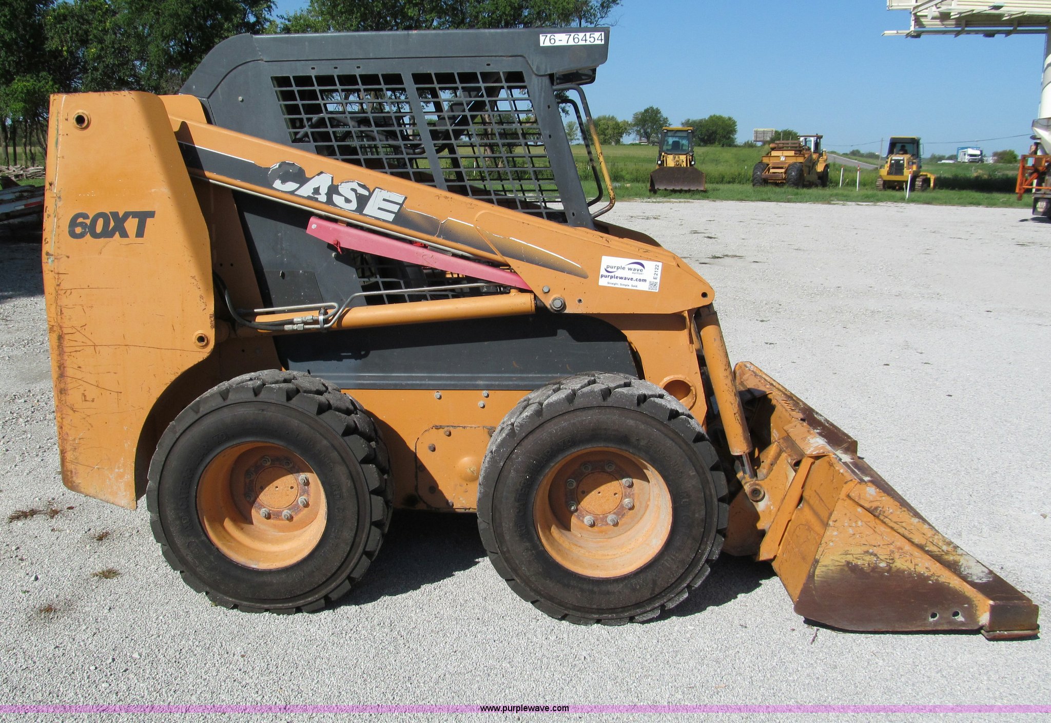 Purple Wave is selling a used Skid Steer Loader in Missouri. This item is a 2003 Case 60XT skid steer with the following: 5,337 hours on meter, Four cylinder diesel engine, 75 HP, Hand controls, Auxiliary hydraulics, 72"W smooth bucket, Bolt-on cutting edge, 1,800 lbs operating load, Block heater, 12-16.5 tires, Less than five hours use on tires, 10,000 lbs. base operating weight, Serial JAF036T592