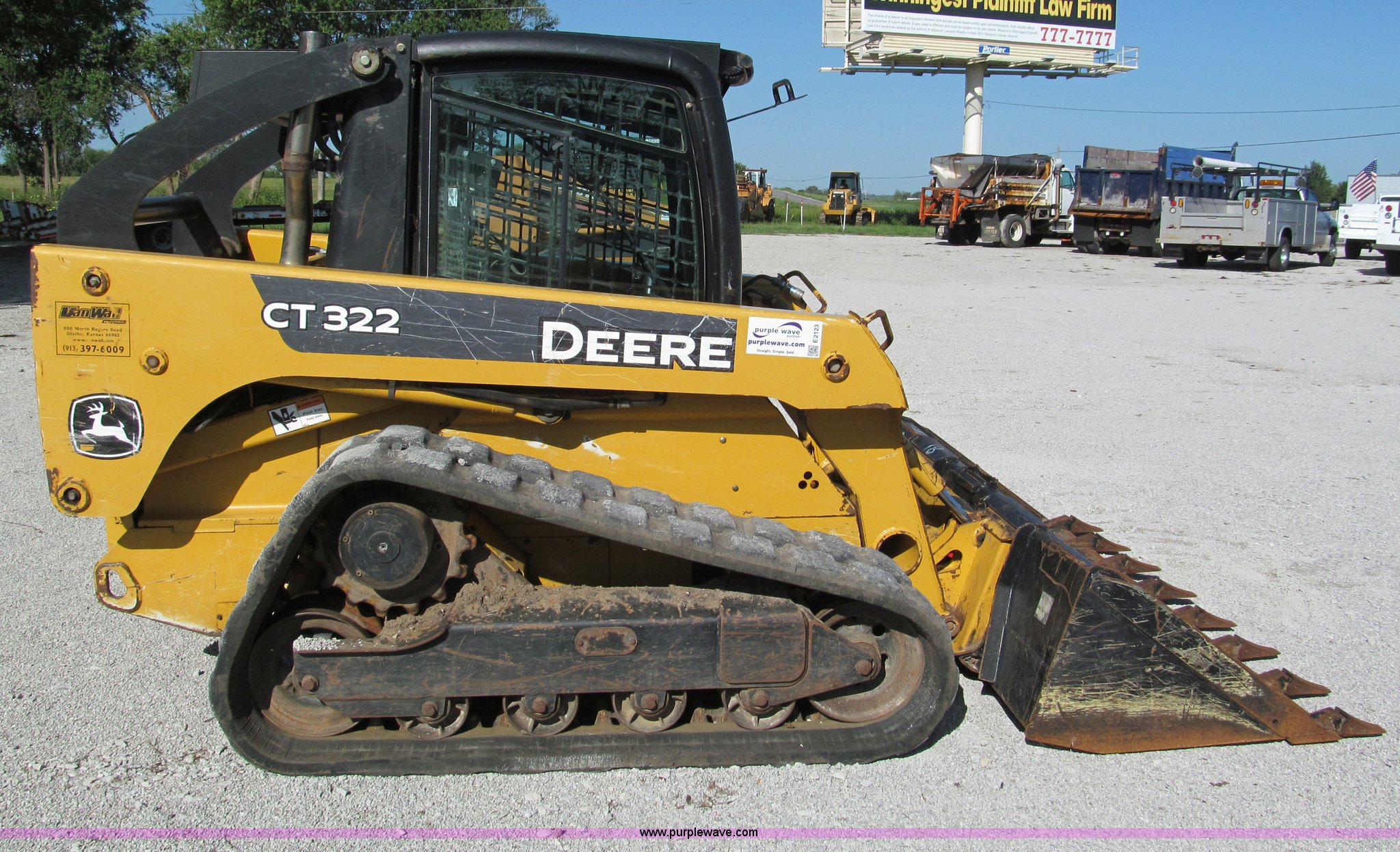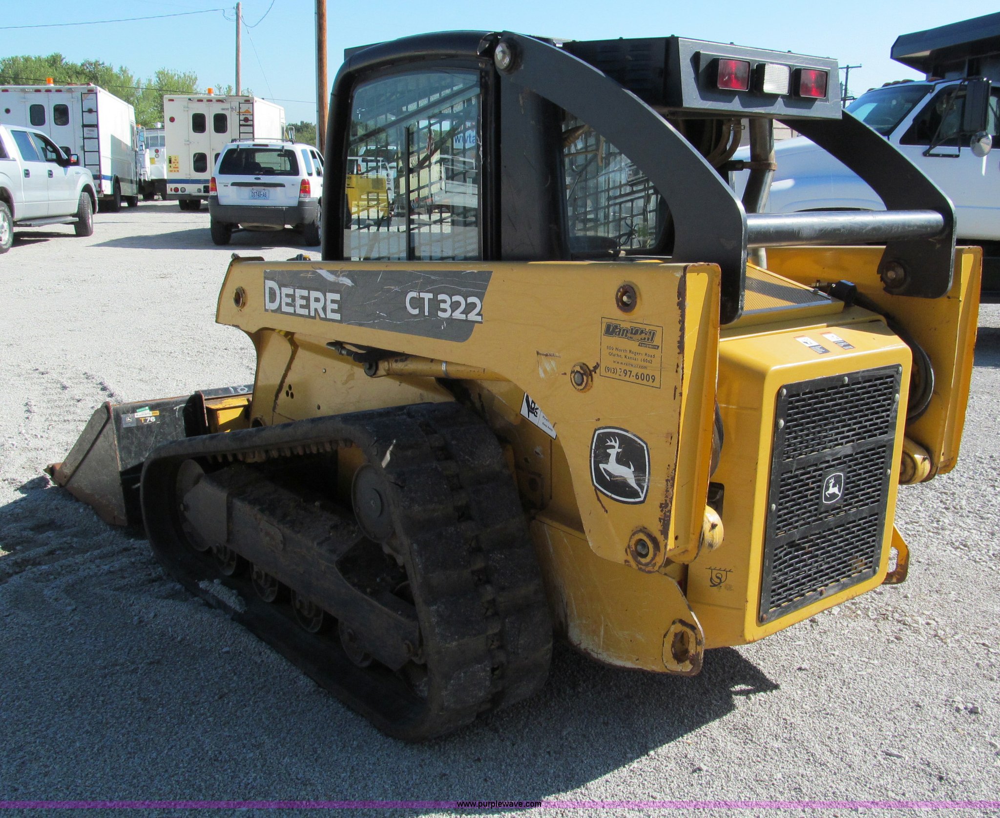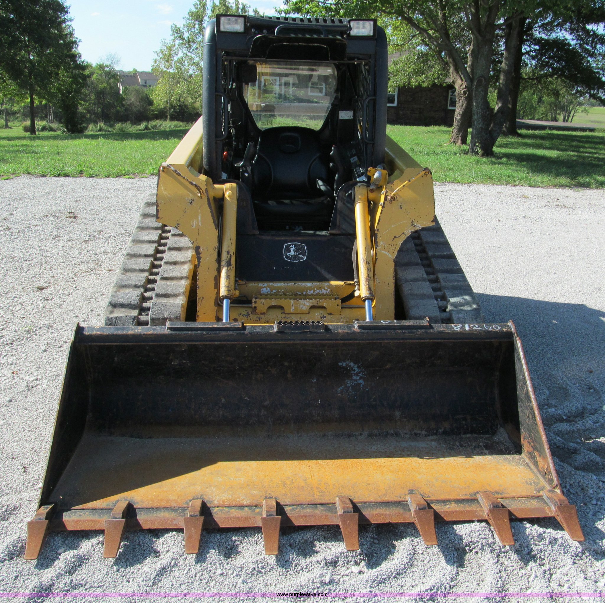 Purple Wave is selling a used Tracked Skid Steer Loader in Missouri. This item is a 2006 John Deere CT322 track skid steer with the following: 1,818 hours on meter, John Deere four cylinder turbo diesel engine, 66 HP, Enclosed cab, AC and heat, Foot controls, Hydraulic quick attach, Auxiliary hydraulics, 76" toothed bucket, 2,178 lbs operating load, 16"W tracks, 8,305 lbs. base operating weight, Serial T0322TB129114
