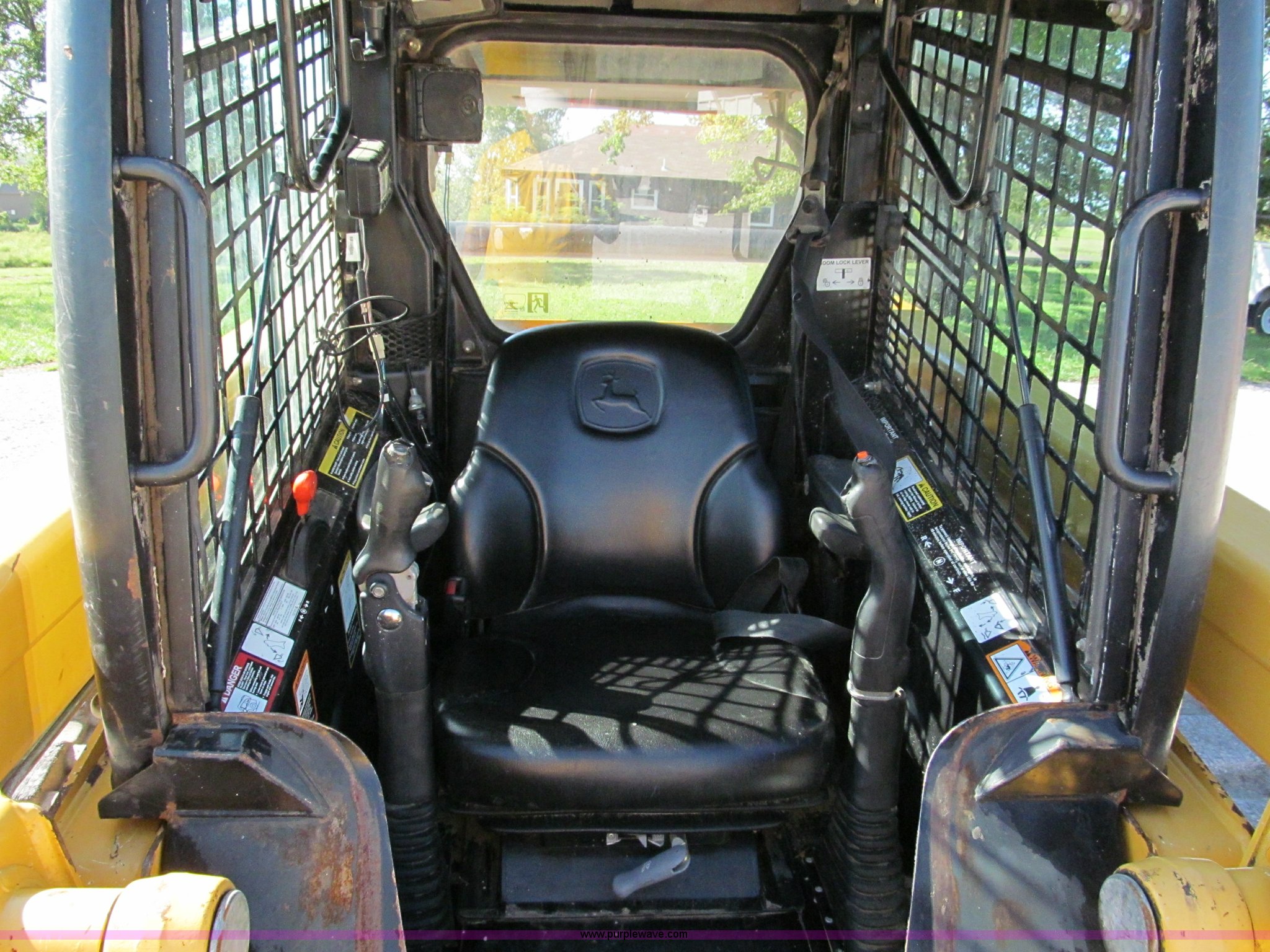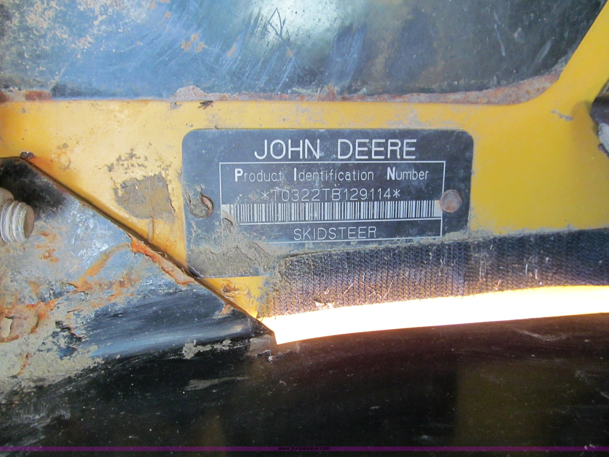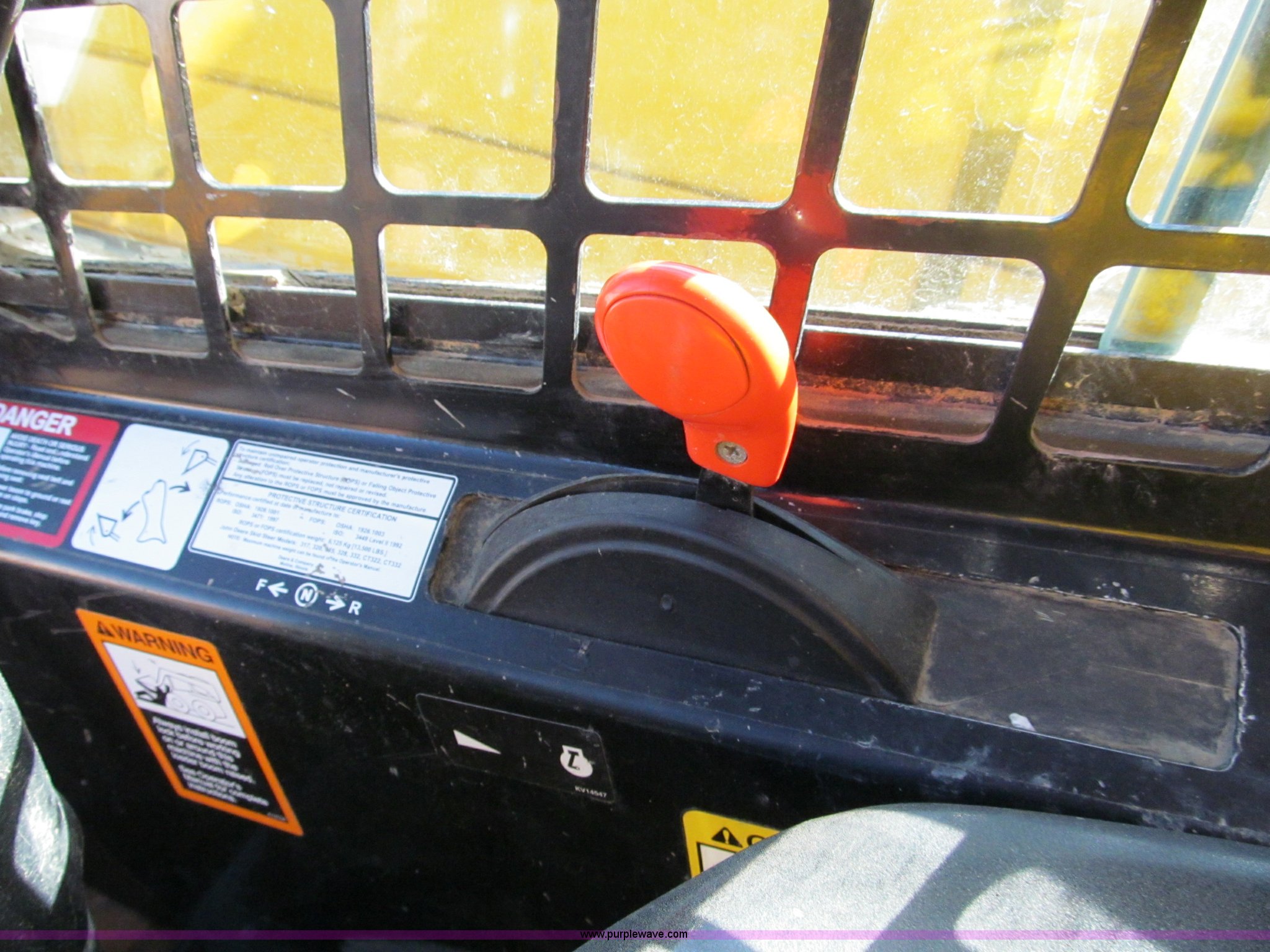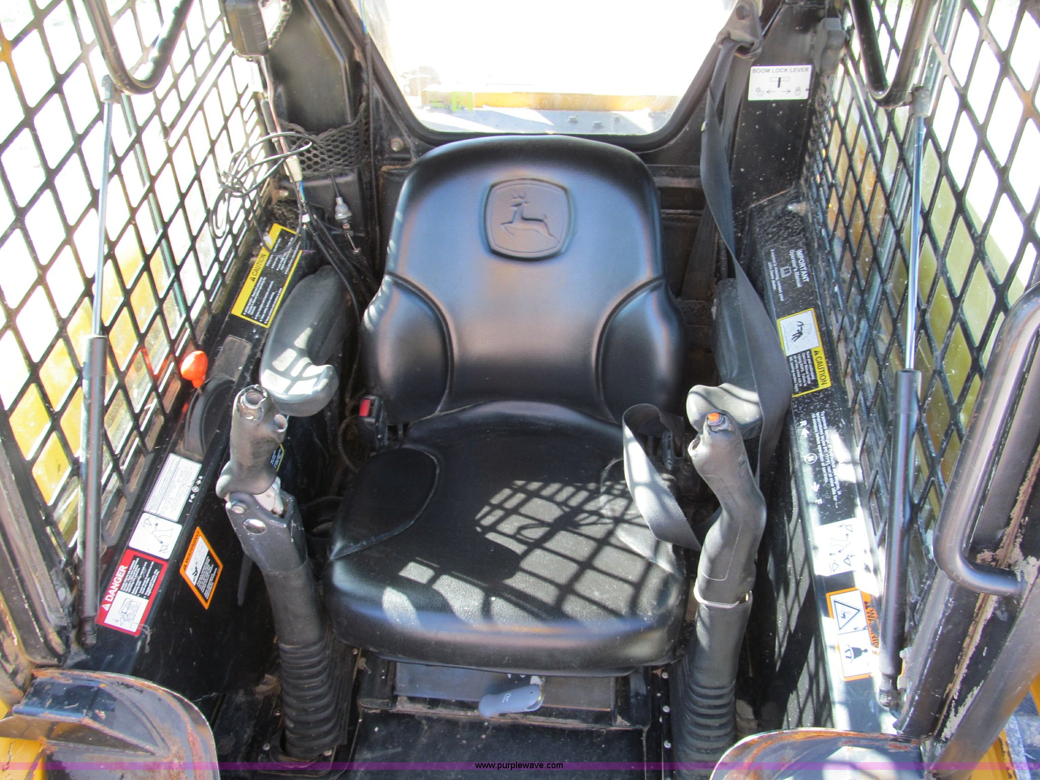 Purple Wave is selling a used Tracked Skid Steer Loader in Missouri. This item is a 2006 John Deere CT322 track skid steer with the following: 1,818 hours on meter, John Deere four cylinder turbo diesel engine, 66 HP, Enclosed cab, AC and heat, Foot controls, Hydraulic quick attach, Auxiliary hydraulics, 76" toothed bucket, 2,178 lbs operating load, 16"W tracks, 8,305 lbs. base operating weight, Serial T0322TB129114