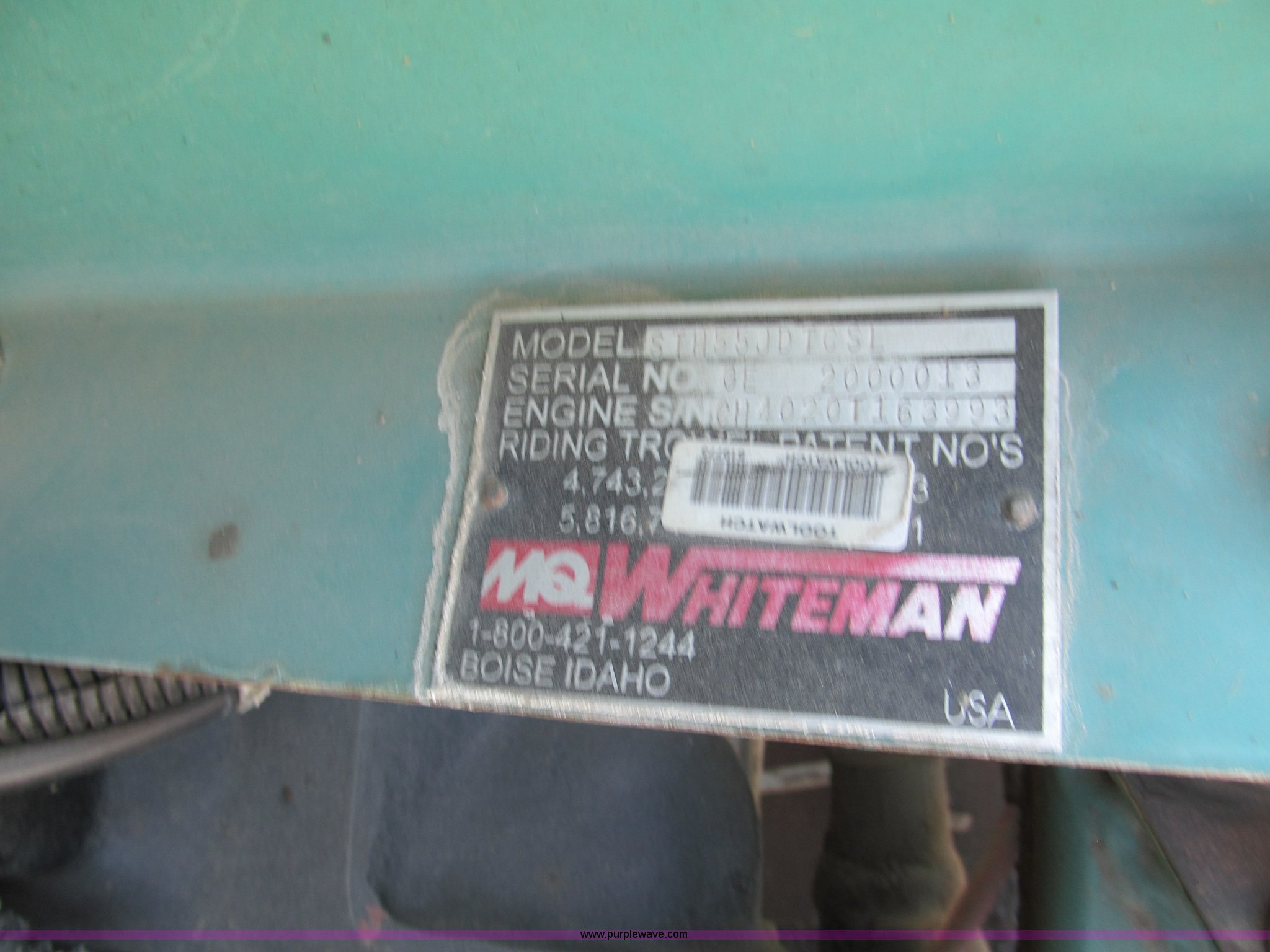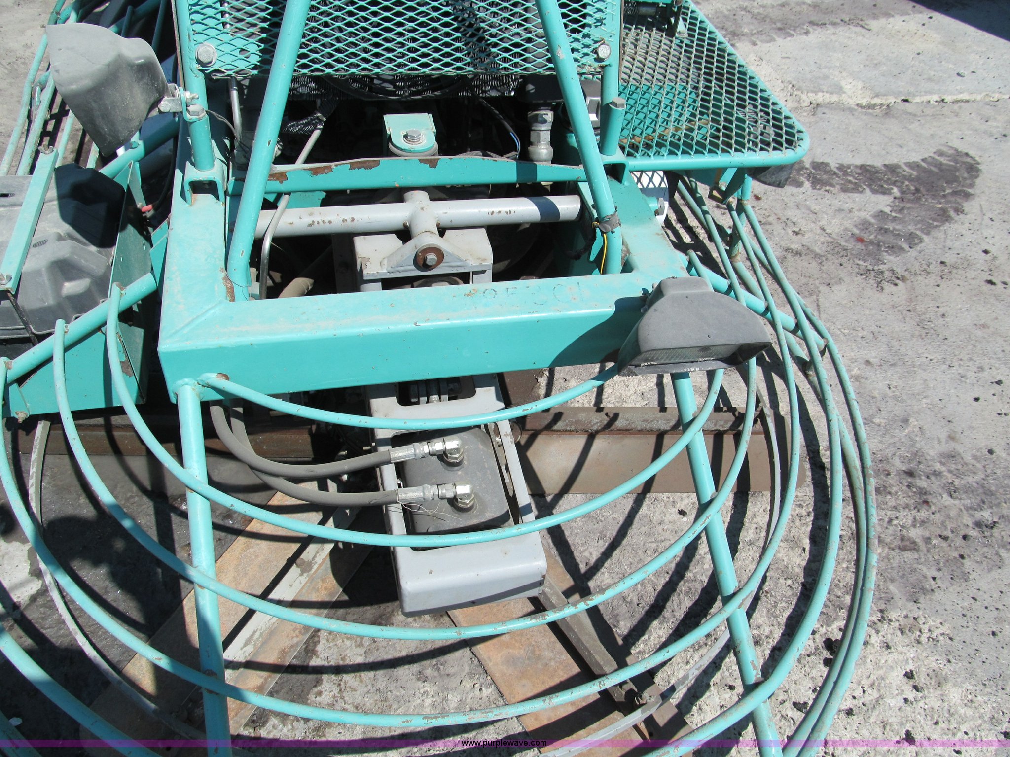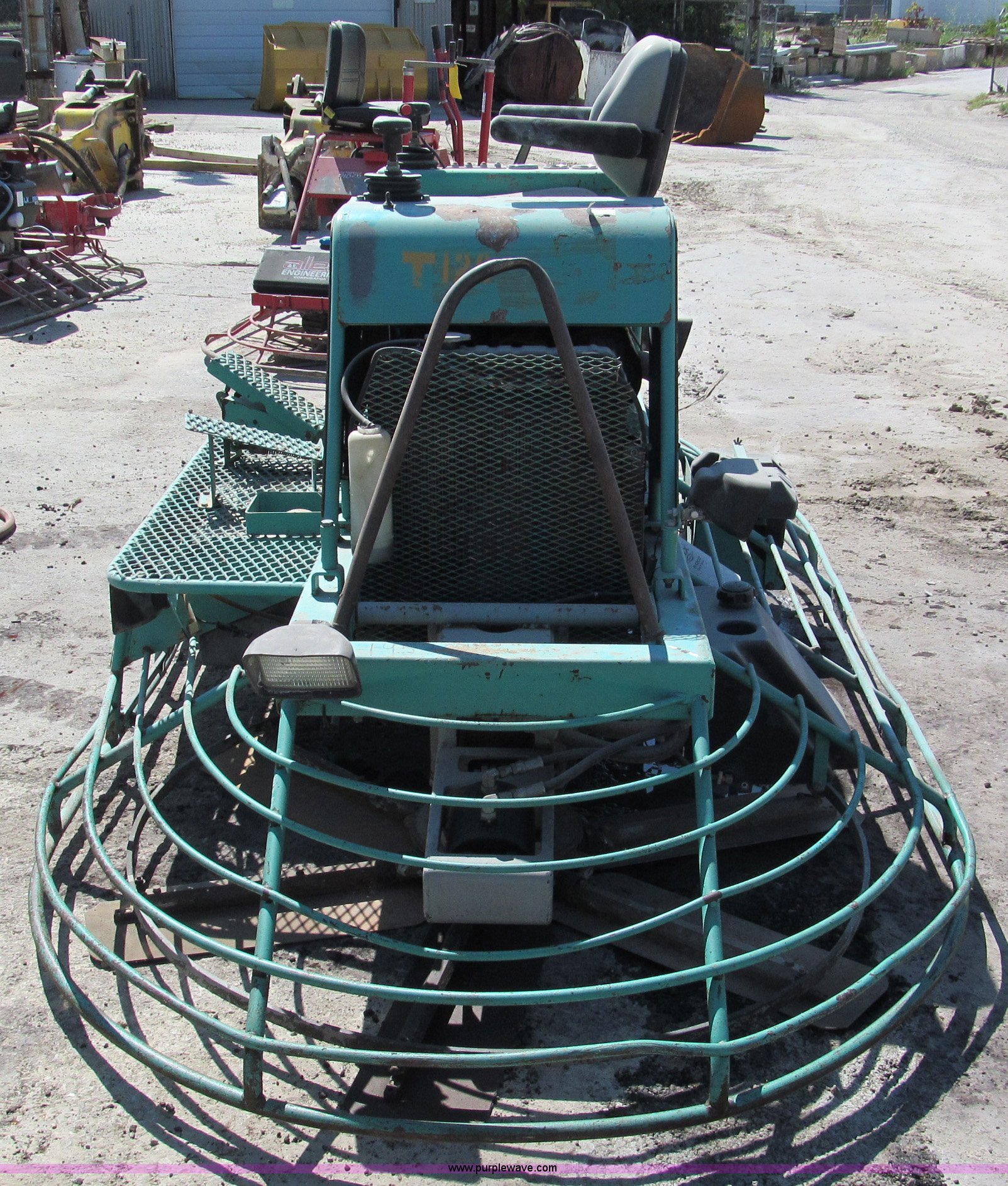 Purple Wave is selling a used Concrete Equip. or Acces. in Missouri. This item is a Multiquip Whiteman 10' ride-on power trowel with the following: 408 hours on meter, Model STH55JDTCSL, John Deere four cylinder turbo diesel engine, Hydrostatic drive, Light kit, Lifting eyes on each side, Serial GE2000013