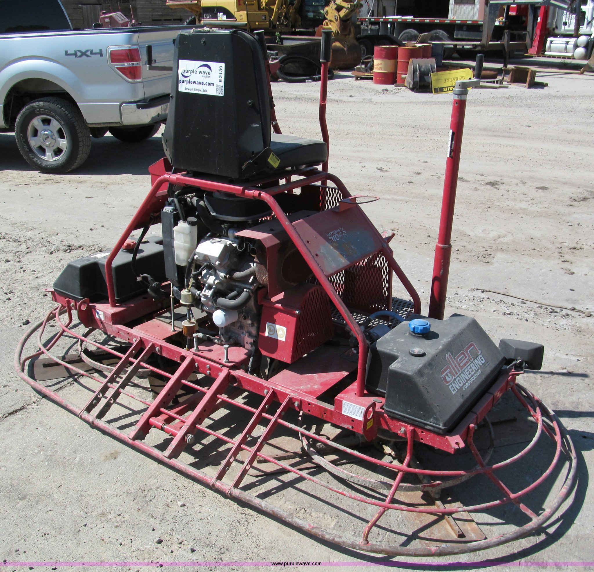 Allen 8' ride-on power trowel has sold in Kansas City, Missouri for $5390. Item E2139 sold on September 27th, 2012.