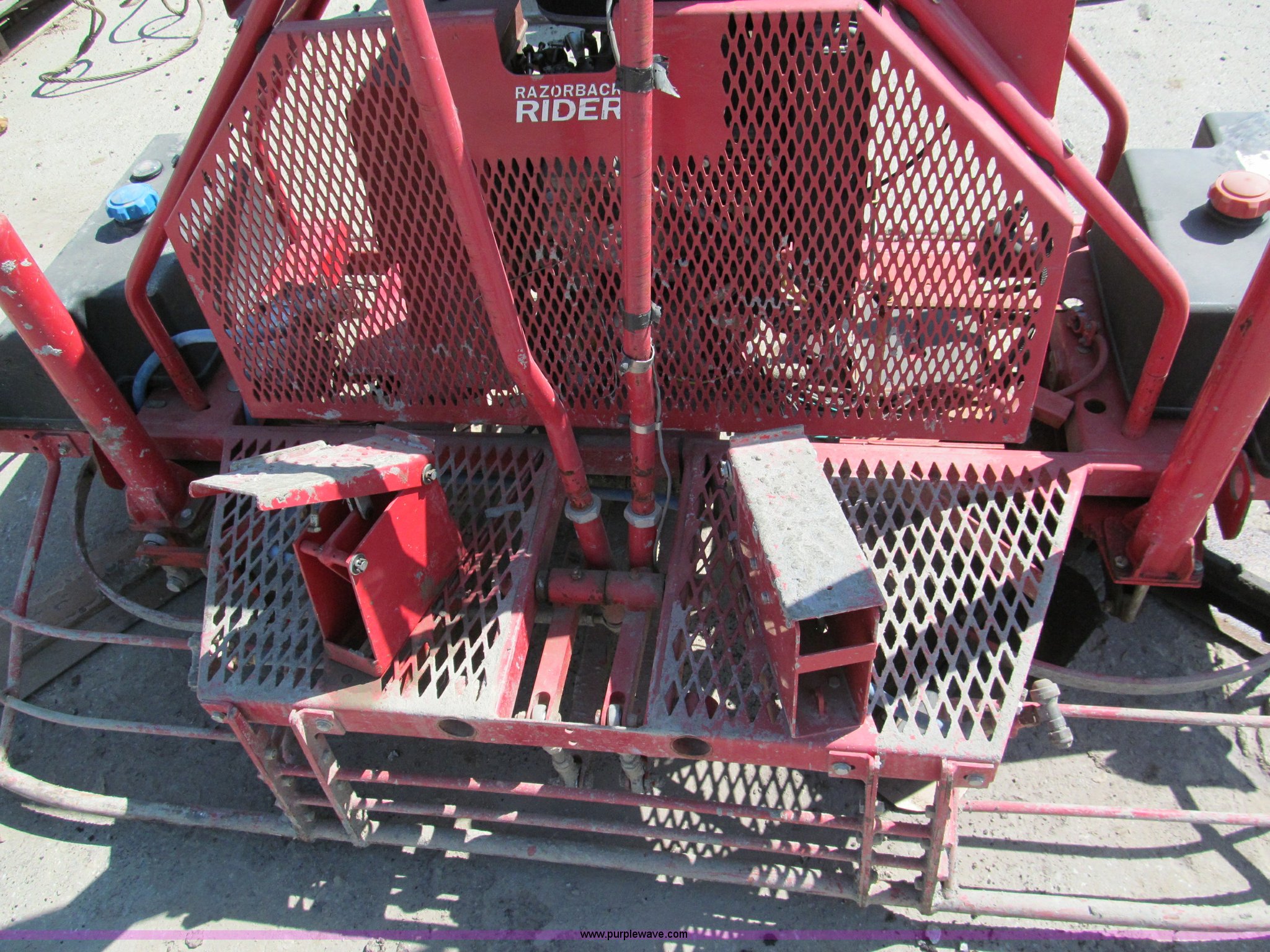 Purple Wave is selling a used Concrete Equip. or Acces. in Missouri. This item is a Allen 8' ride-on power trowel with the following: Unknown hours, Model 1200-NL-SFC, Razor Back Rider series, Gearbox drive, 382 lbs. base operating weight, Kawasaki 745 cc two cylinder gas engine, 27 HP, Liquid cooled, 12v electric start, 12v battery not included, Serial 12F-0405011