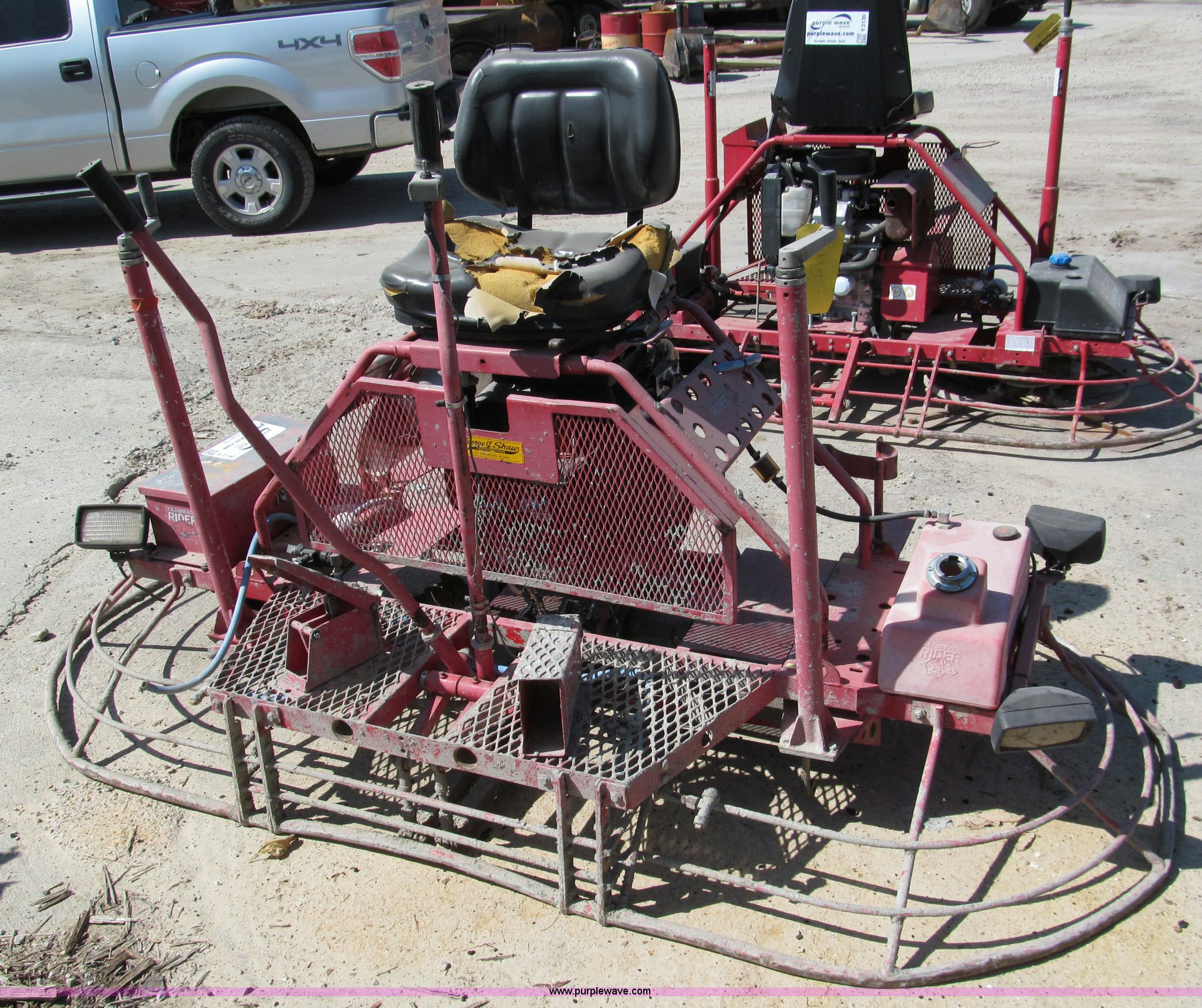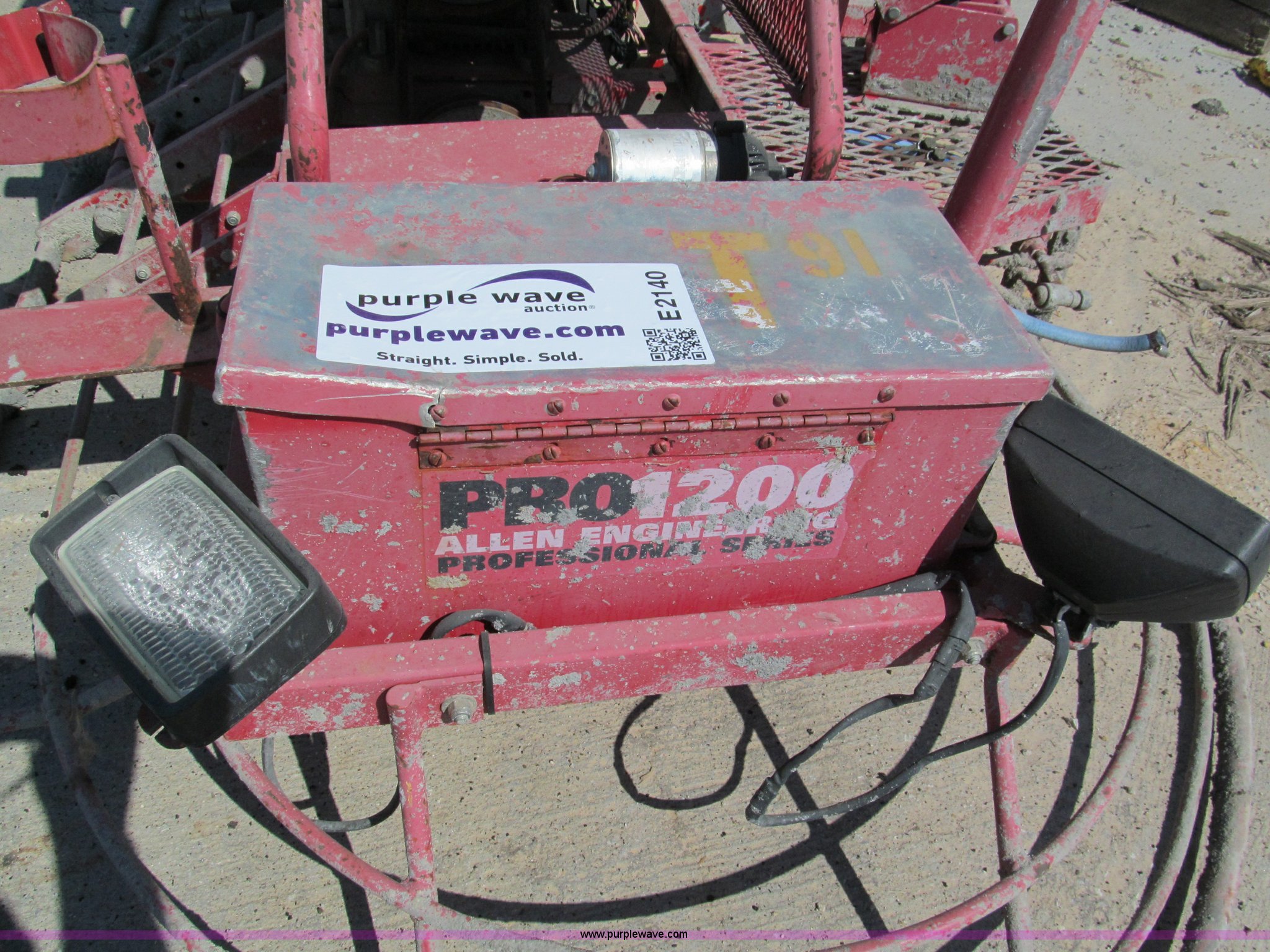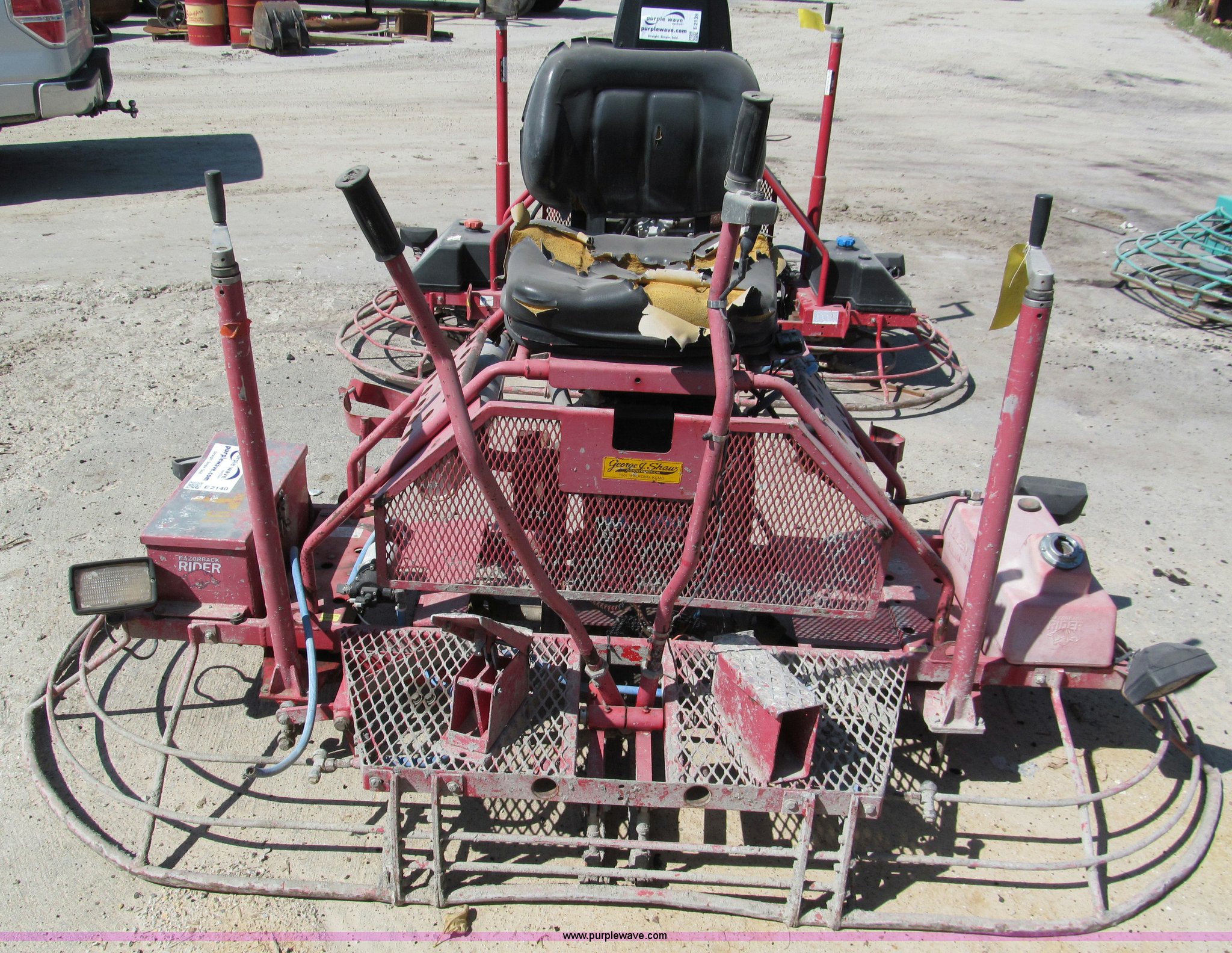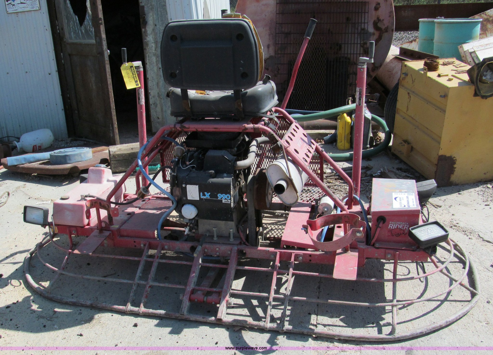 Purple Wave is selling a used Concrete Equip. or Acces. in Missouri. This item is a Allen 8' ride-on power trowel with the following: Hours unknown, Model Pro 1200, Razor Back Rider series, Linamar LX990 two cylinder gas engine, Missing parts, Does not run, parts only