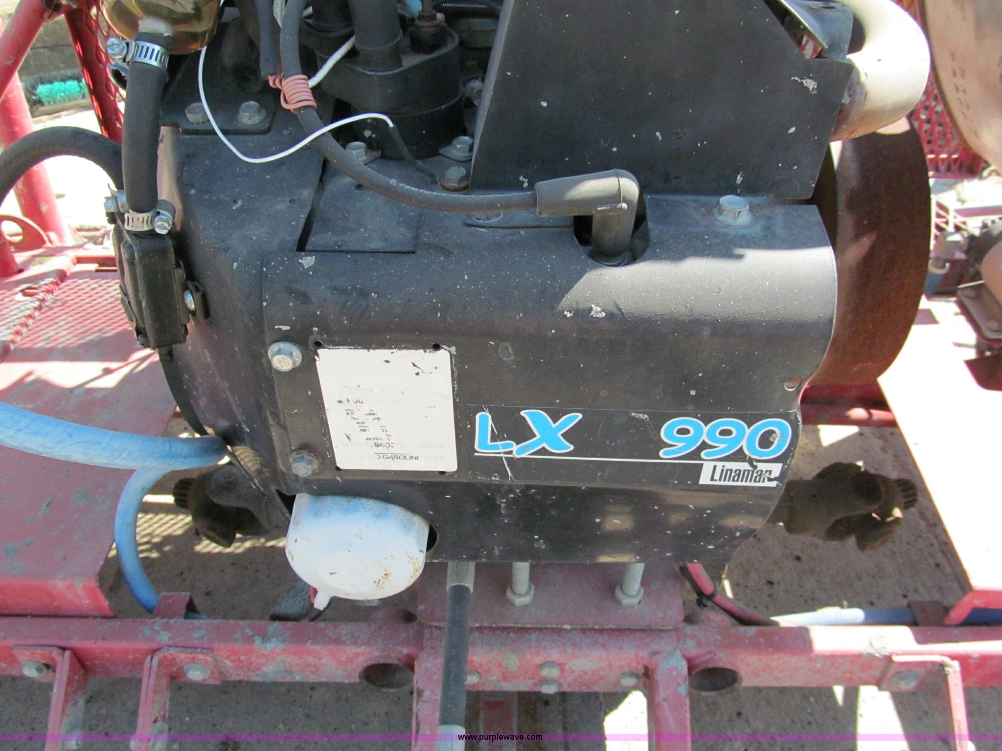 Allen 8' ride-on power trowel. Hours unknown, Model Pro 1200, Razor Back Rider series, Linamar LX990 two cylinder gas engine, Missing parts, Does not run, parts only. Shipping quotes available. George J. Shaw Construction Co.. 1601 Bellefontaine. Kansas City, MO 64127