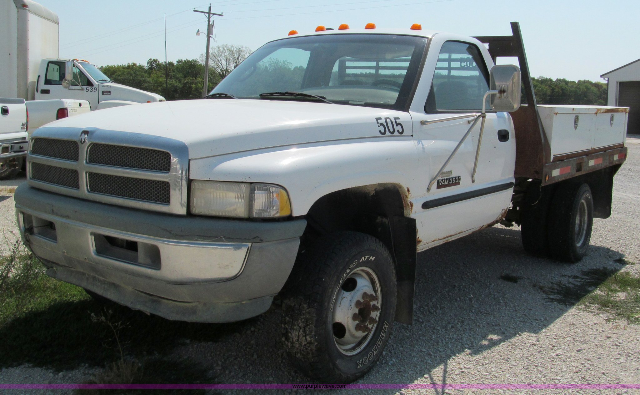 Purple Wave is selling a used 3/4 or 1 Ton Pickup or Van in Missouri. This item is a 1998 Dodge Ram 3500 Laramie SLT flatbed pickup truck with the following: 293,364 actual miles, Cummins 5.9L six cylinder turbo diesel engine, Five speed manual transmission, Four wheel drive, AC and heat, Tilt, Cruise, AM/FM/cassette, Power windows and locks, Cloth interior, Electric brakes controller, Block heater, 9'L x 7.5'W flatbed, Toolbox, Gooseneck ball, Receiver hitch, Trailer wiring, 245/75R16 tires, Unit# 505