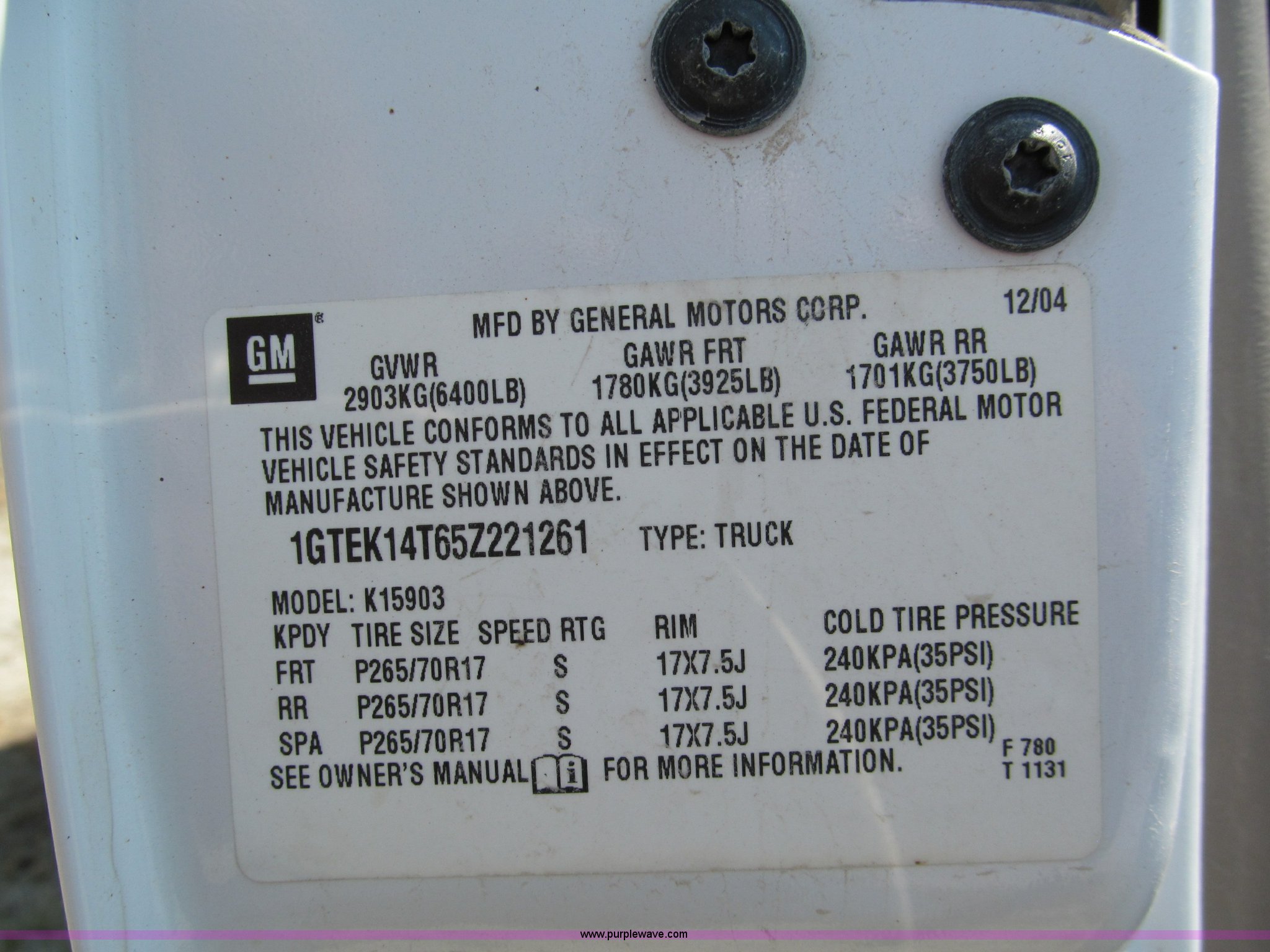 Purple Wave is selling a used Passenger Vehicle in Missouri. This item is a 2005 GMC Sierra K1500 pickup truck with the following: Approx. 230,000 miles, 5.3L V8 MPI gas engine, Engine does not run, Automatic transmission, Four wheel drive, AC and heat, Tilt, Cruise, AM/FM, Manual windows and locks, Cloth interior, Long bed, Delta toolbox, Receiver hitch, Trailer wiring, 265-70-17 tires, Dent in driver side bed, Engine does not run, Unit# 381