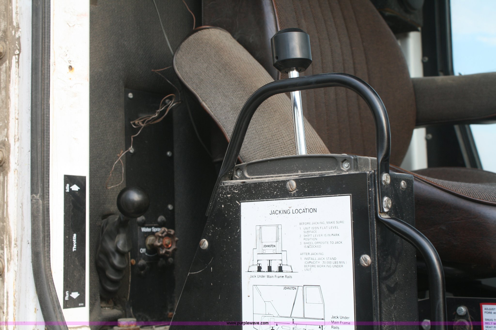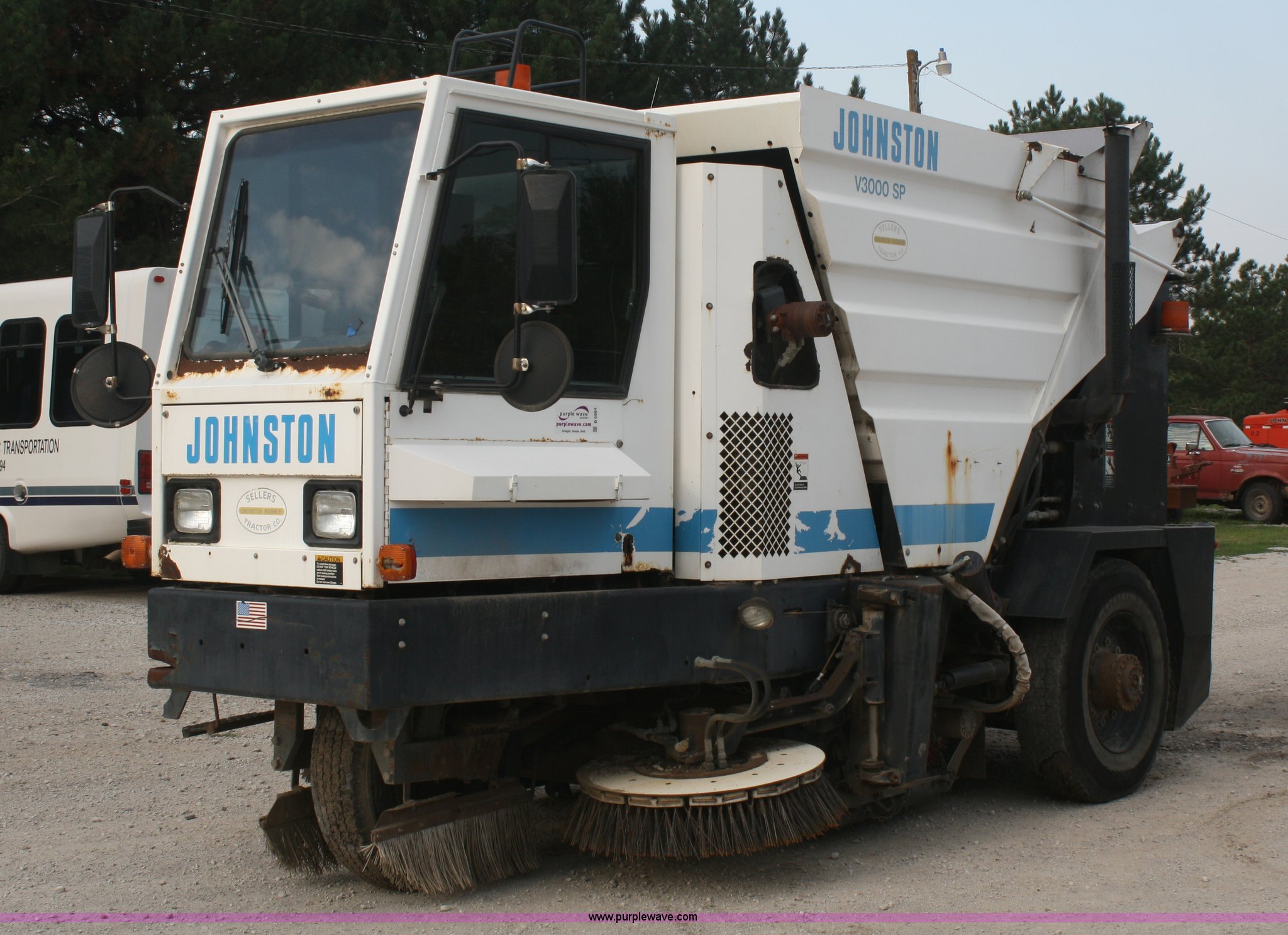 Purple Wave is selling a used Sweeper in Kansas. This item is a 1996 Johnston V3000SP street sweeper with the following: 33,908 miles on odometer, 5,922 hours on meter, John Deere four cylinder turbo diesel engine, Two speed hydrostatic transmission, AC and heat, AM/FM, 4 cu. yd. bin, 60" center broom, 11R22.5 tires, Bin is rusted through