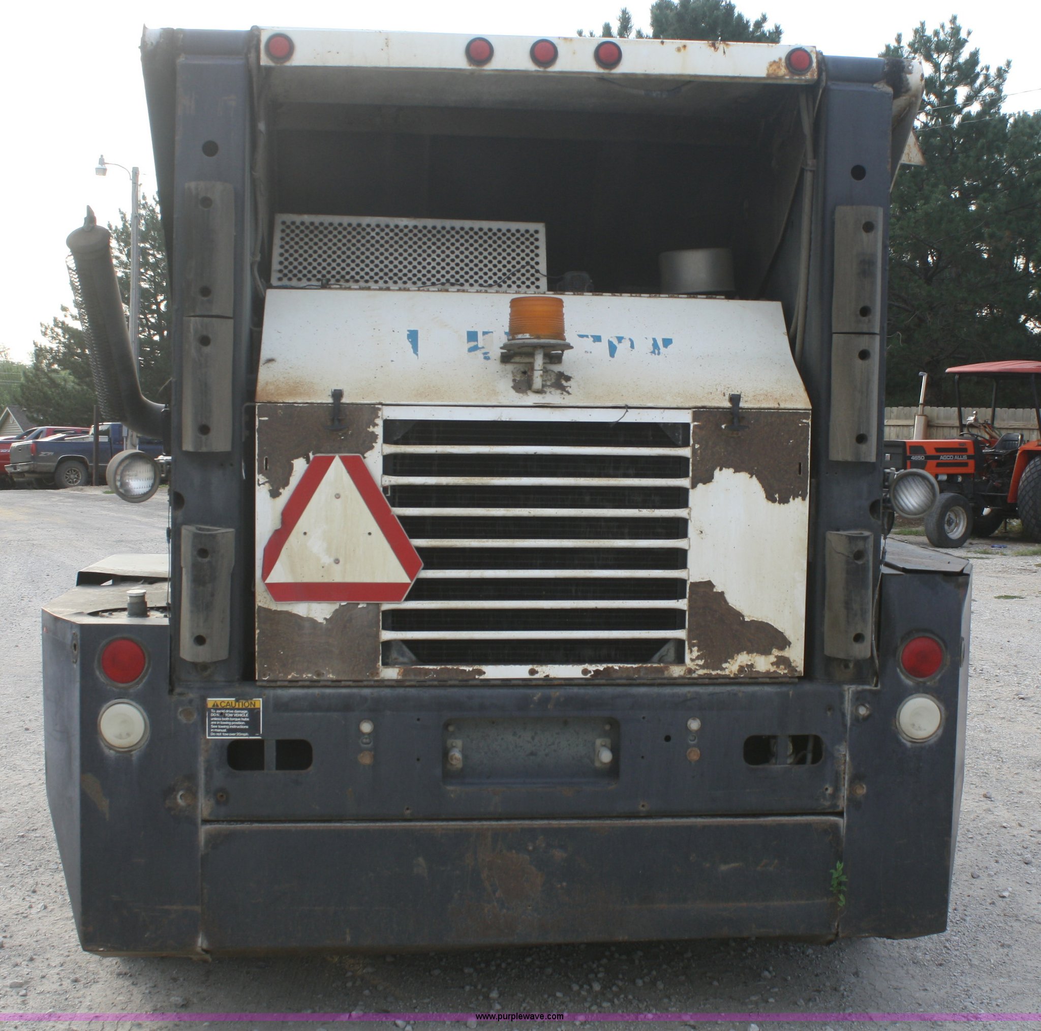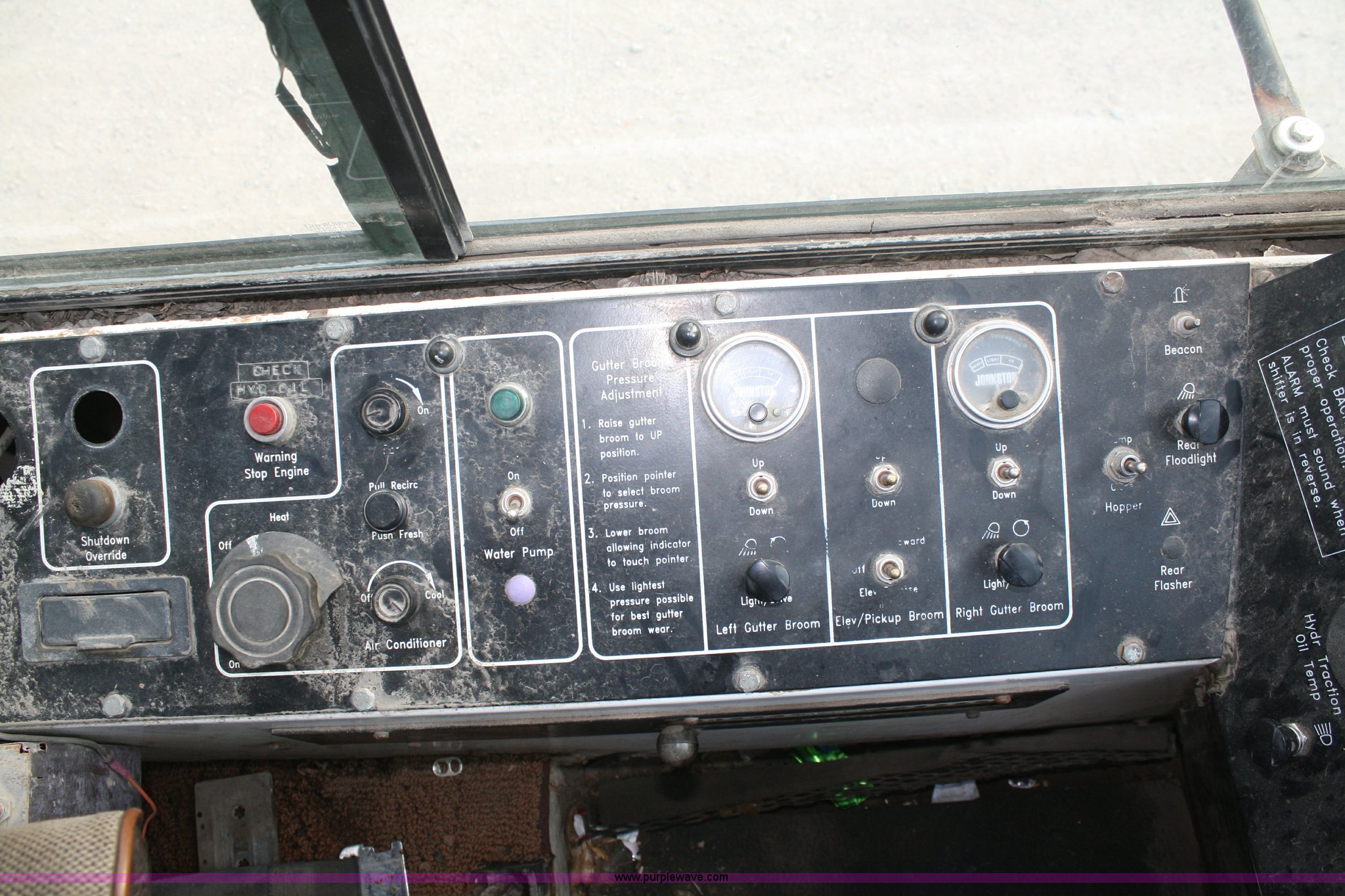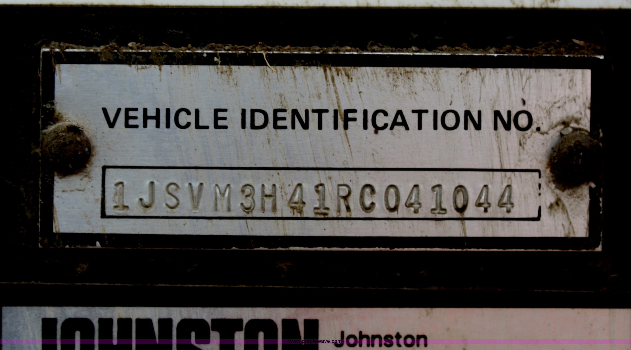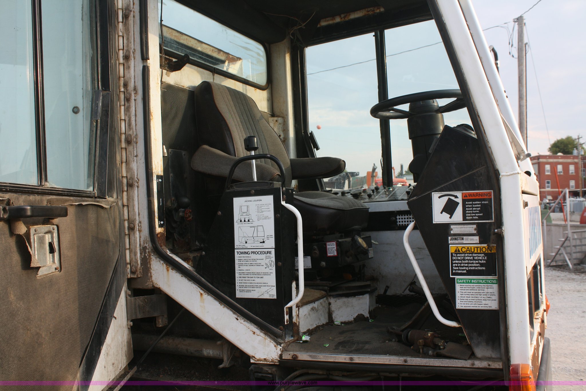 Purple Wave is selling a used Street Sweeper Truck in Kansas. This item is a 1994 Johnston V3000SP street sweeper with the following: 30,643 miles on odometer, 7,146 hours on meter, John Deere four cylinder turbo diesel engine, Two speed hydrostatic transmission, AC and heat, AM/FM, 4 cu. yd. bin, 60" center broom, 11R22.5 tires, Bin is rusted through