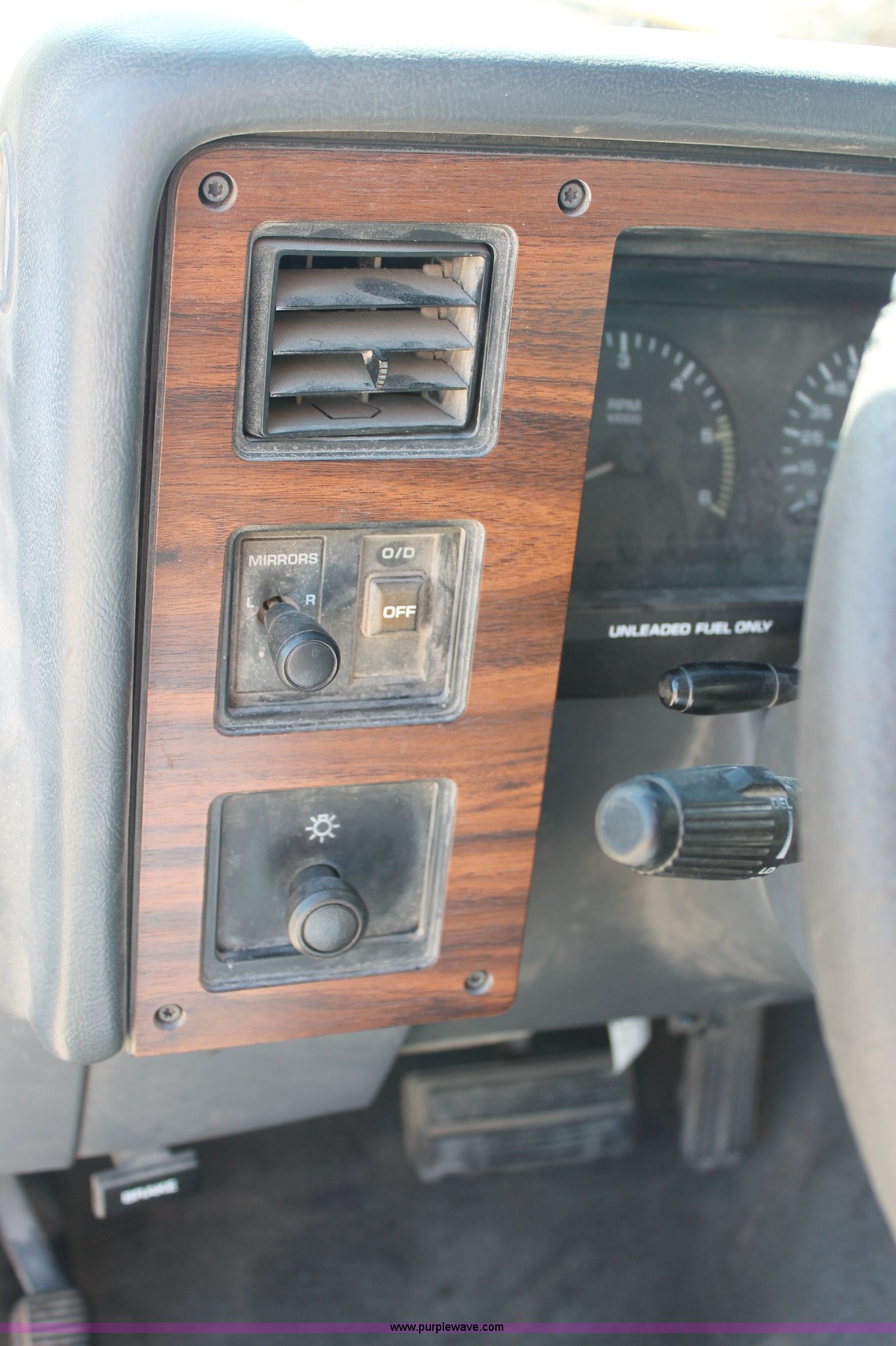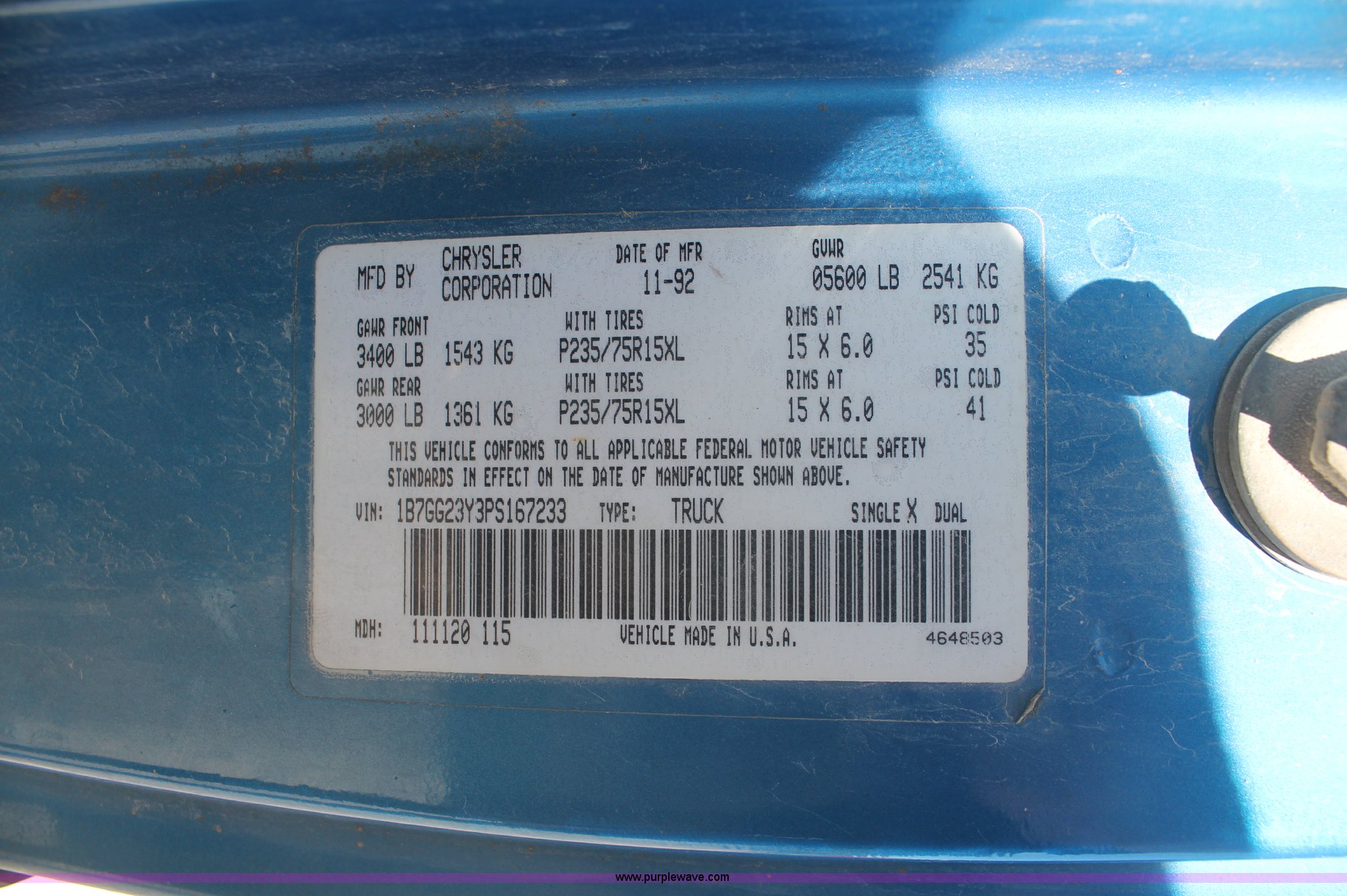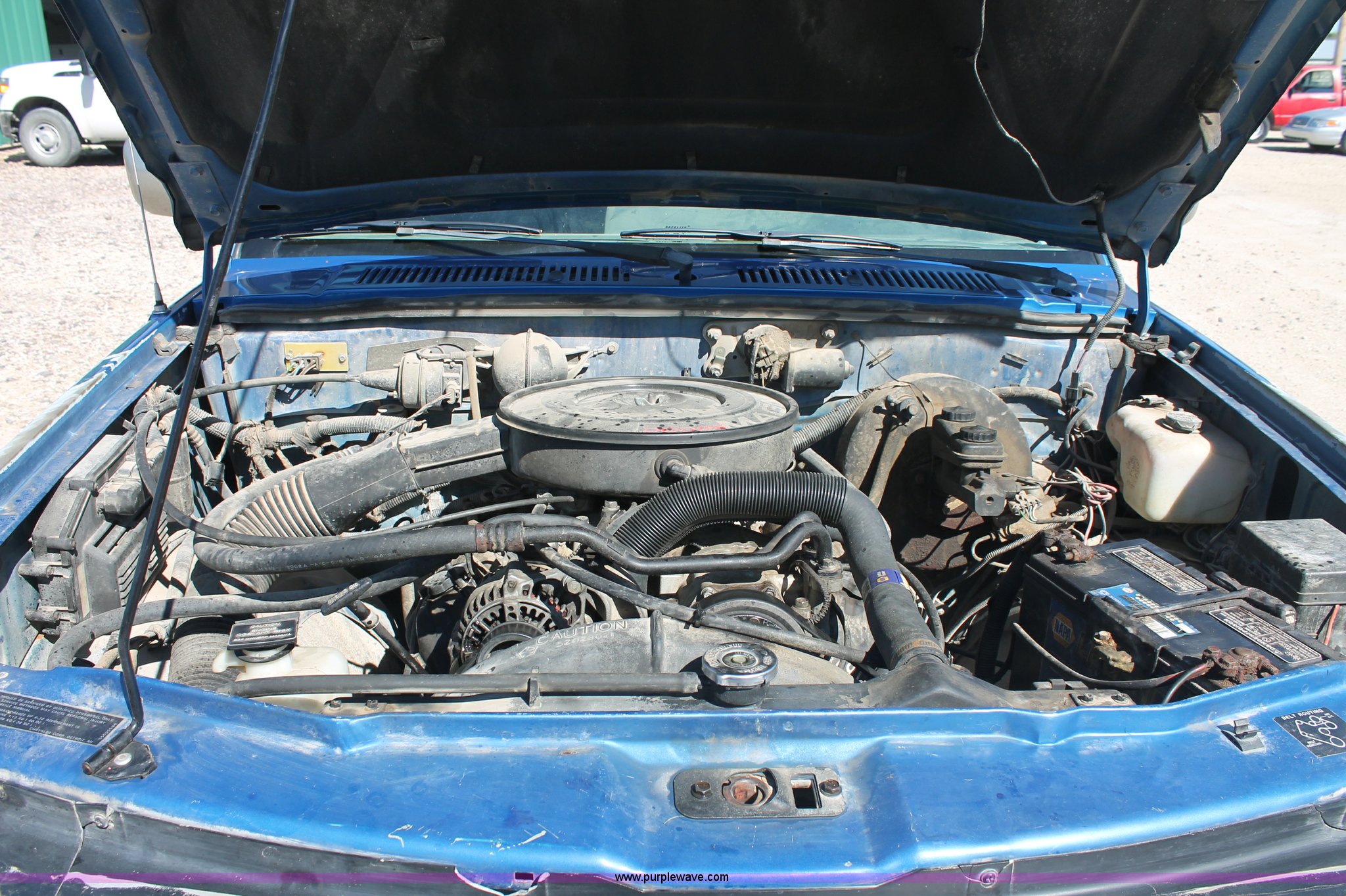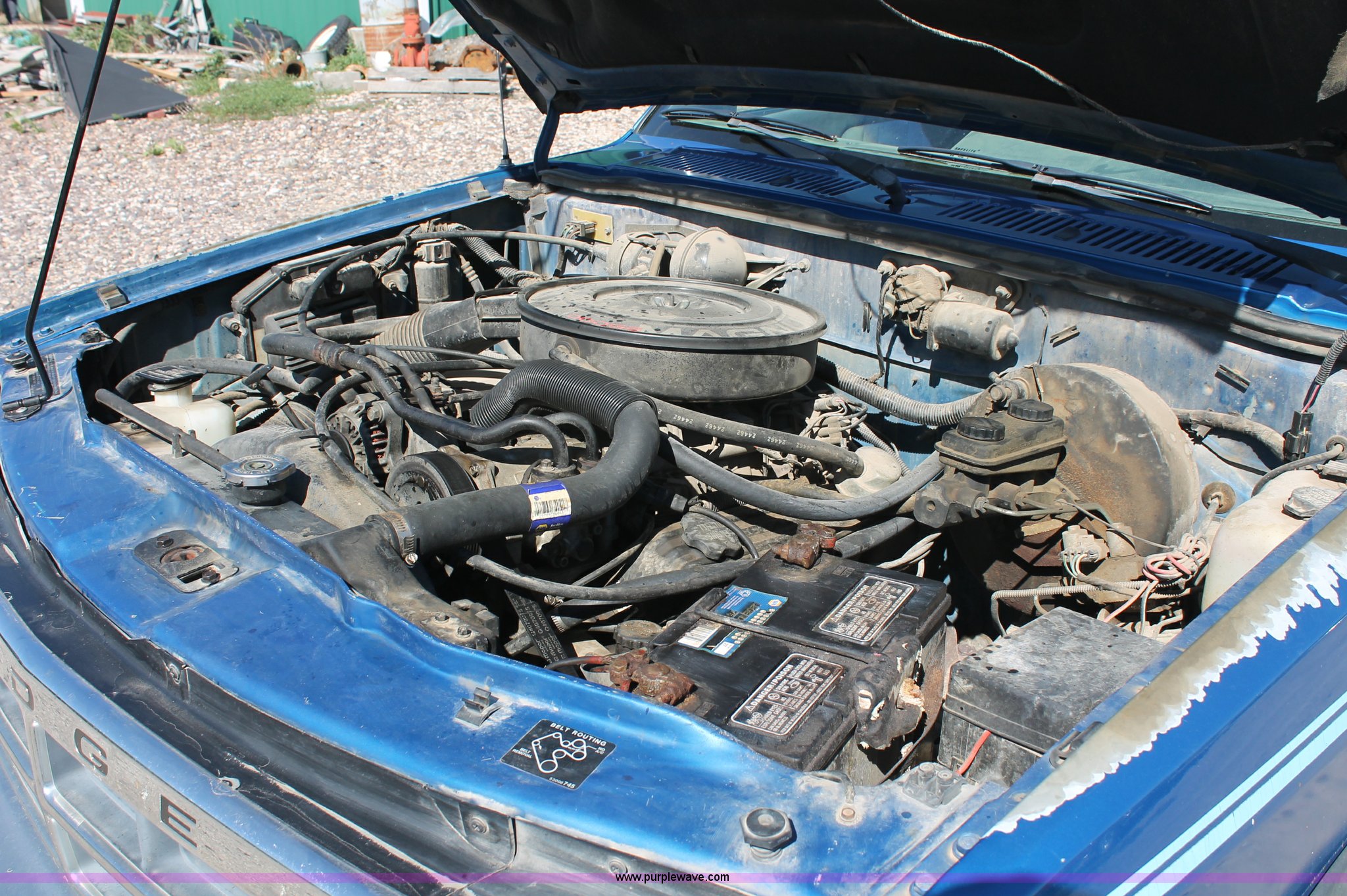 Purple Wave is selling a used Passenger Vehicle in Kansas. This item is a 1993 Dodge Dakota Club Cab pickup truck with the following: 189,559 actual miles, 5.2L V8 MPI gas engine, Automatic transmission, Four wheel drive, AC and heat, Tilt, Cruise, AM/FM/cassette, Power windows, locks, and mirrors, Cloth interior, Plastic bed liner, Running boards, Receiver hitch, 235/75R15 tires, Radiator cracked, Consumes oil, Four wheel drive makes noise