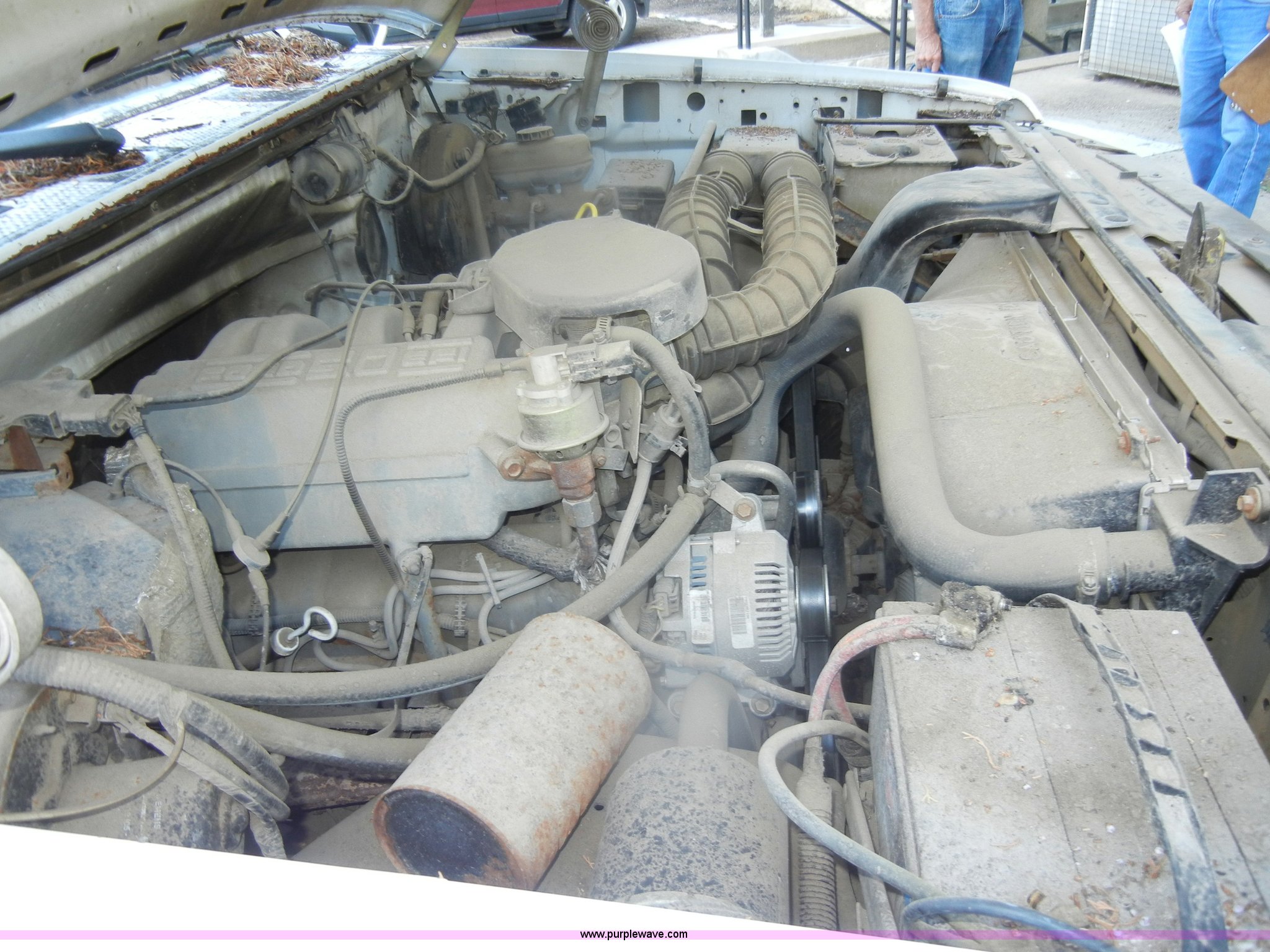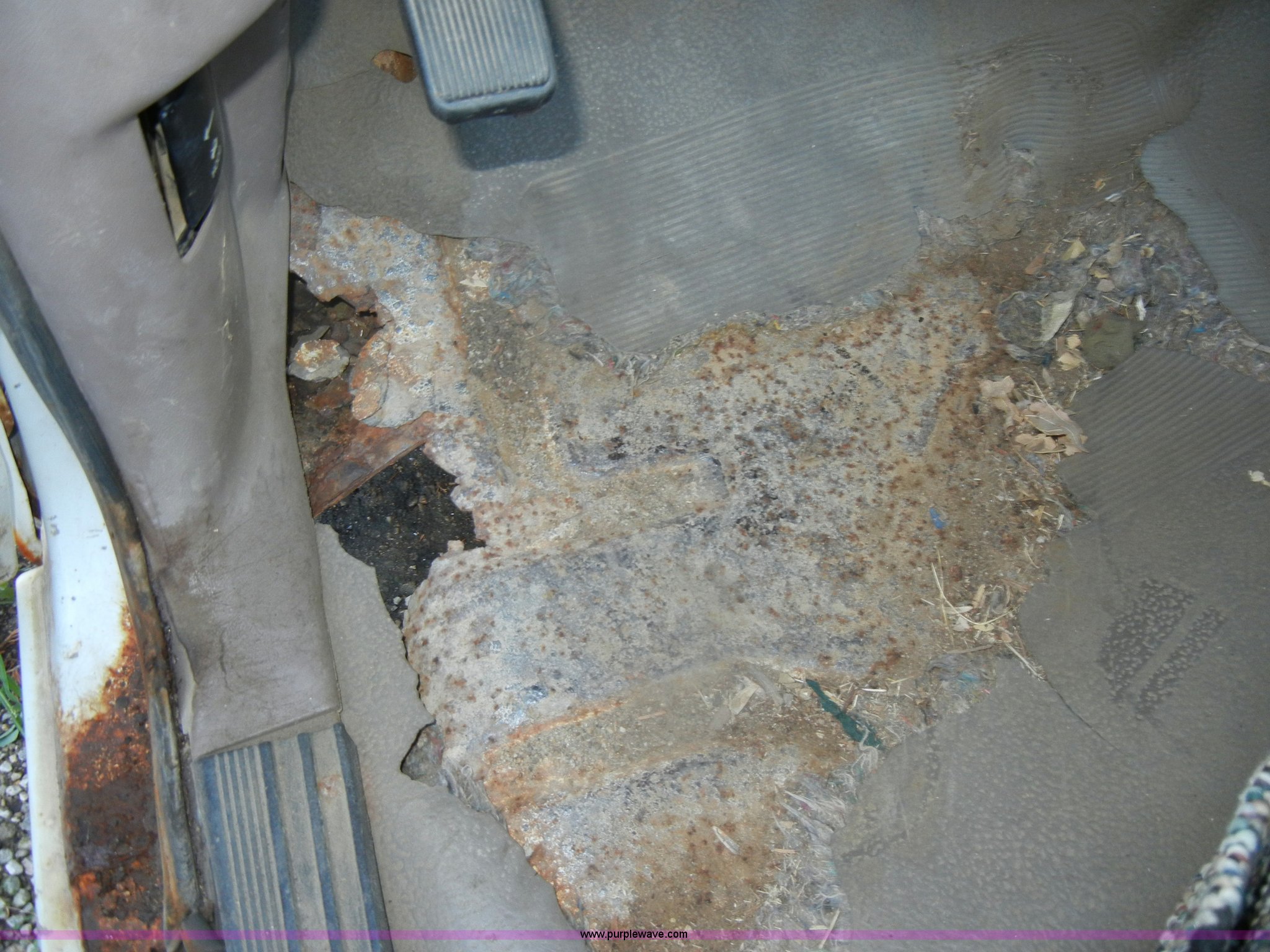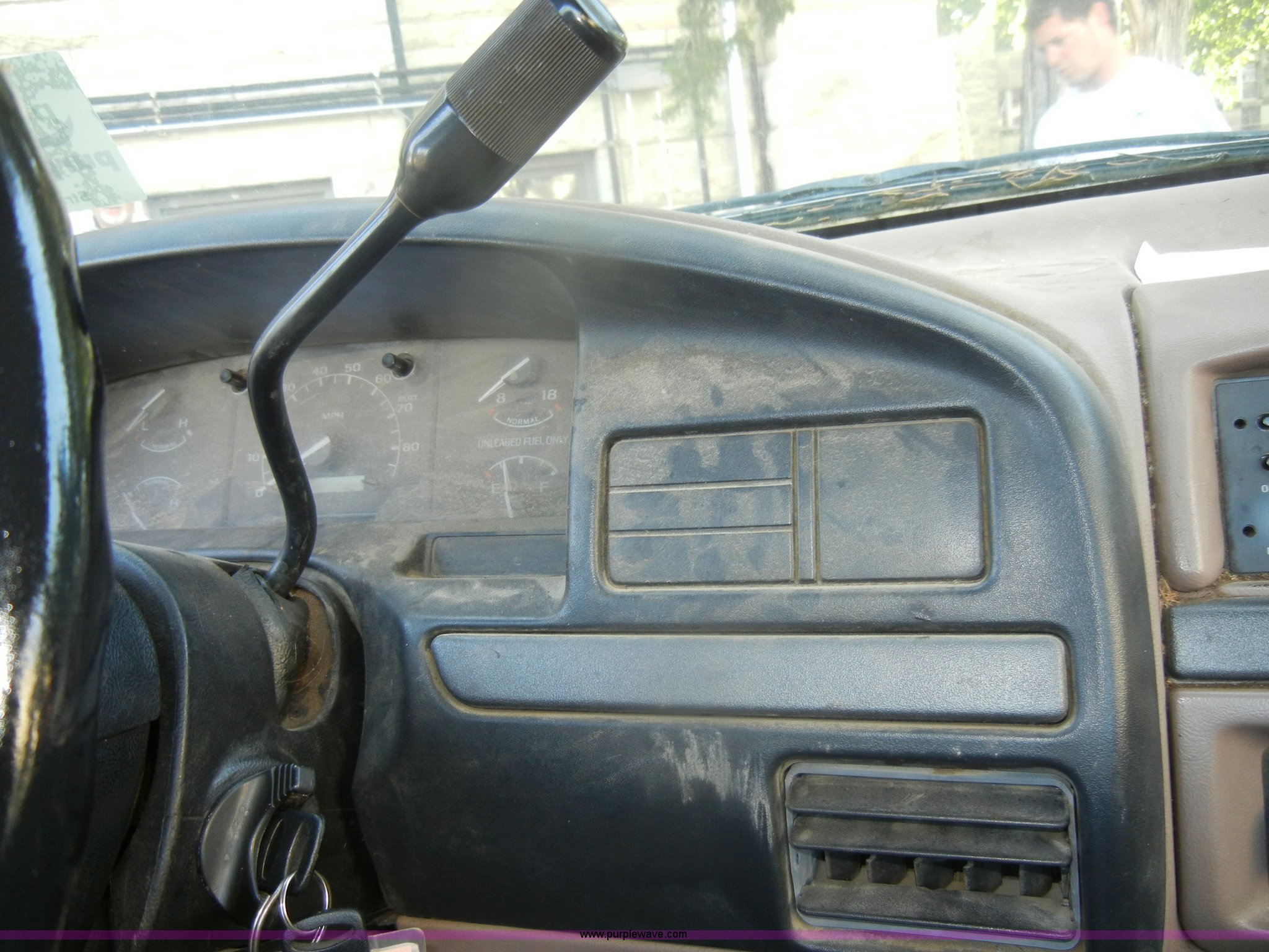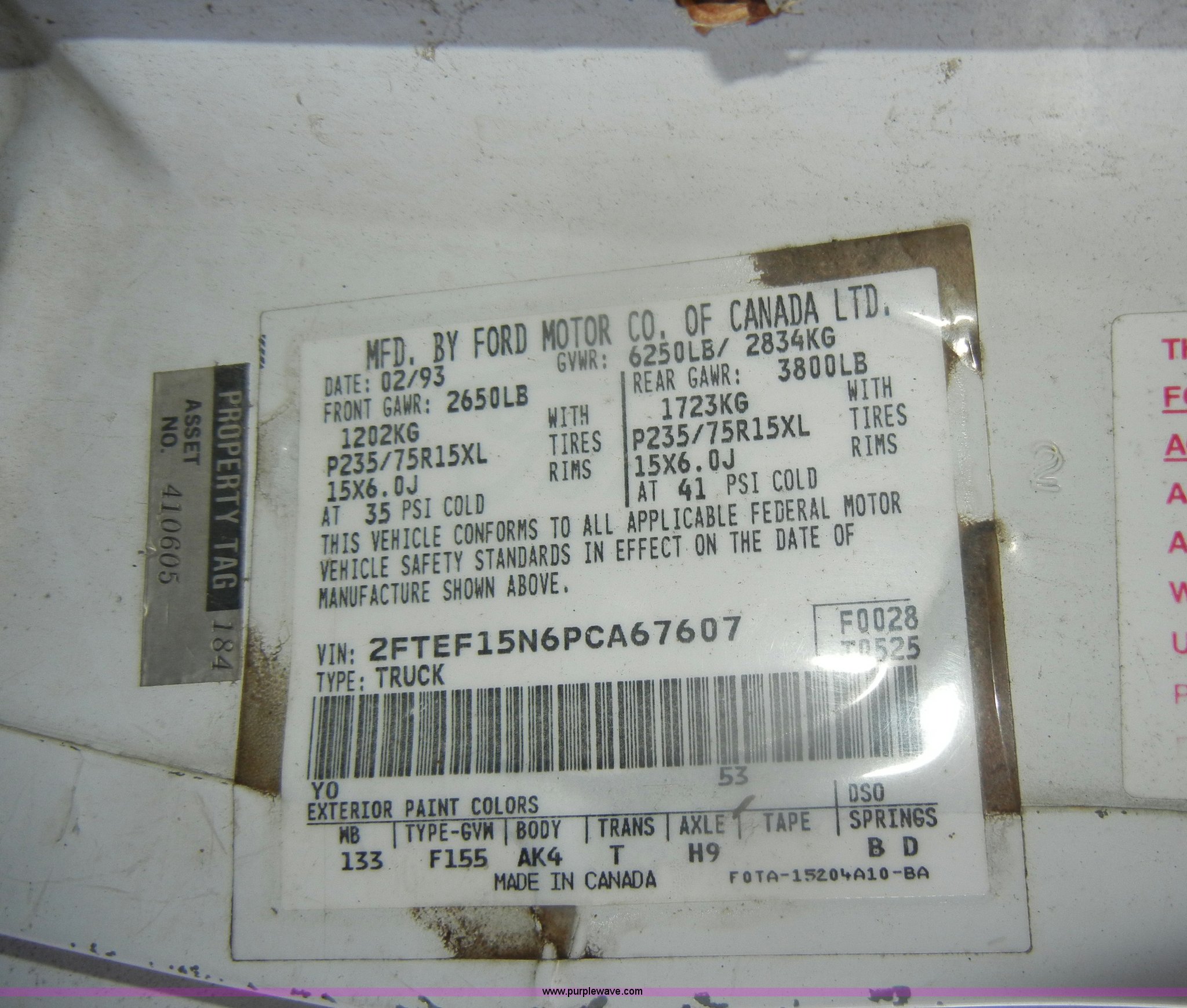 Purple Wave is selling a used Passenger Vehicle in Kansas. This item is a 1993 Ford F150 XL pickup truck with the following: 93,452 miles on odometer, 5.0L V8 EFI gas engine, Automatic transmission, Heat, AM/FM, Manual windows, Ball hitch, Trailer wiring, 235/75R15 tires, Maintenance records, Interior/exterior cosmetic damage, Engine leaks oil, Belts need replaced, Dead battery, No brakes lines, rusted through, Body rust, Dents and scratches, Rear taillight broken, Missing tailgate, Cracked dash, Holes in floorboard, Missing rear view mirror, Must be towed, no brakes