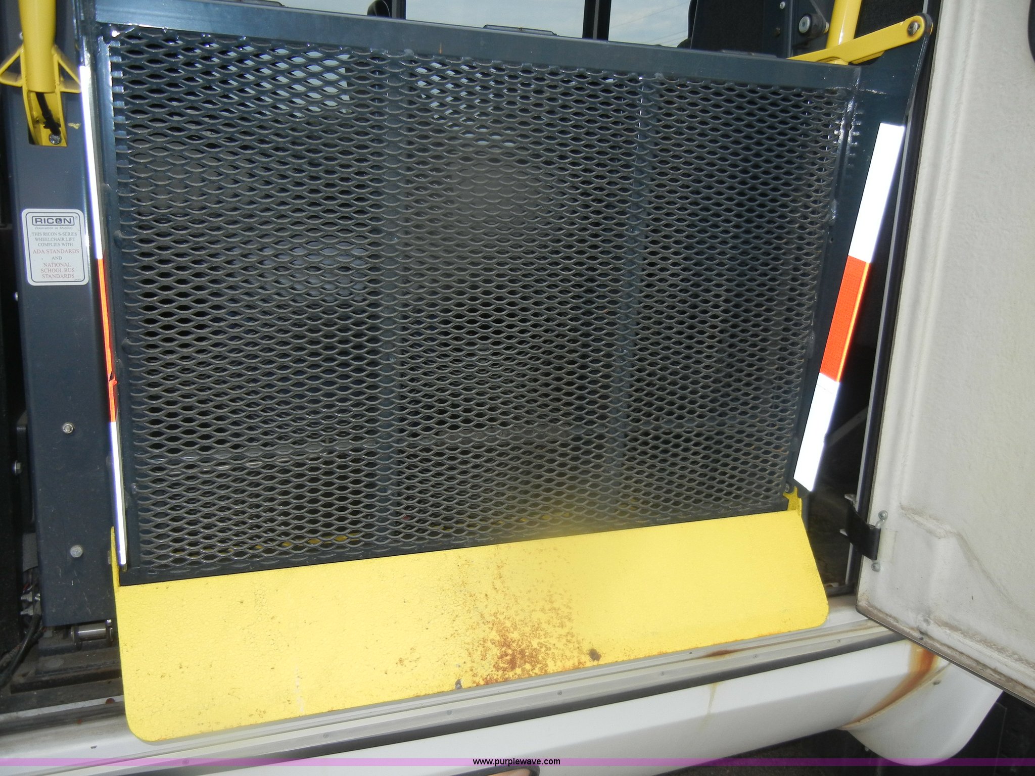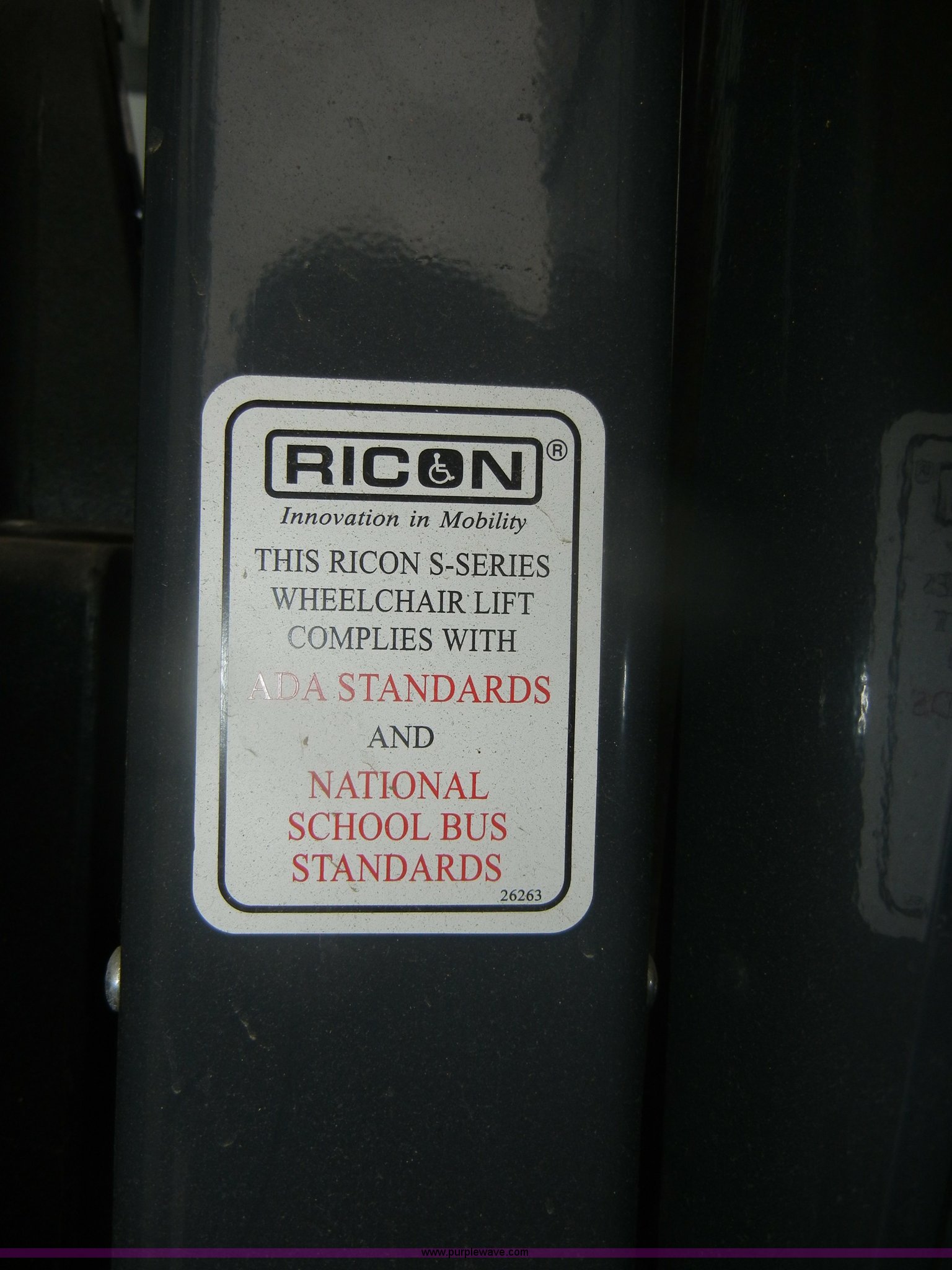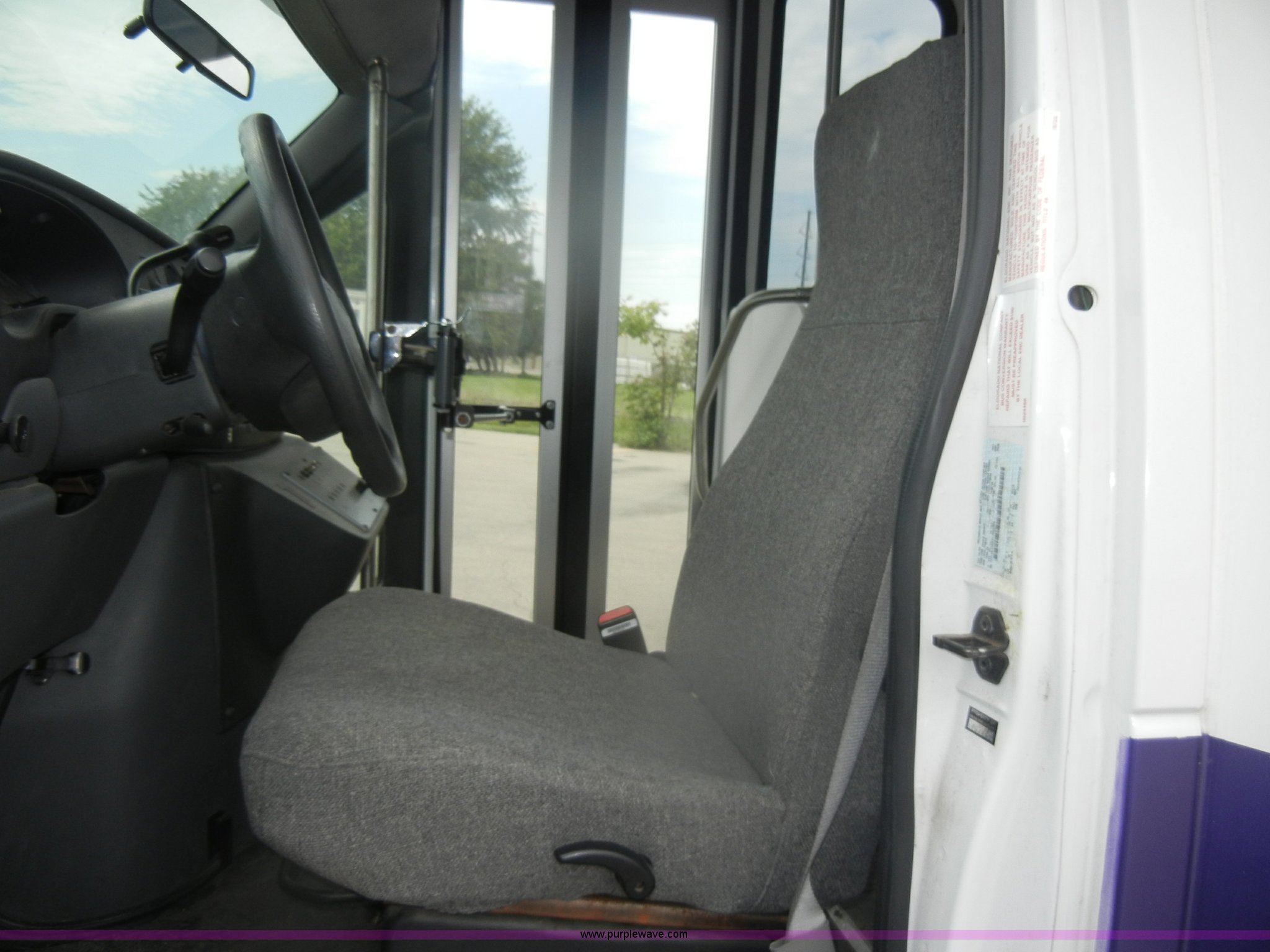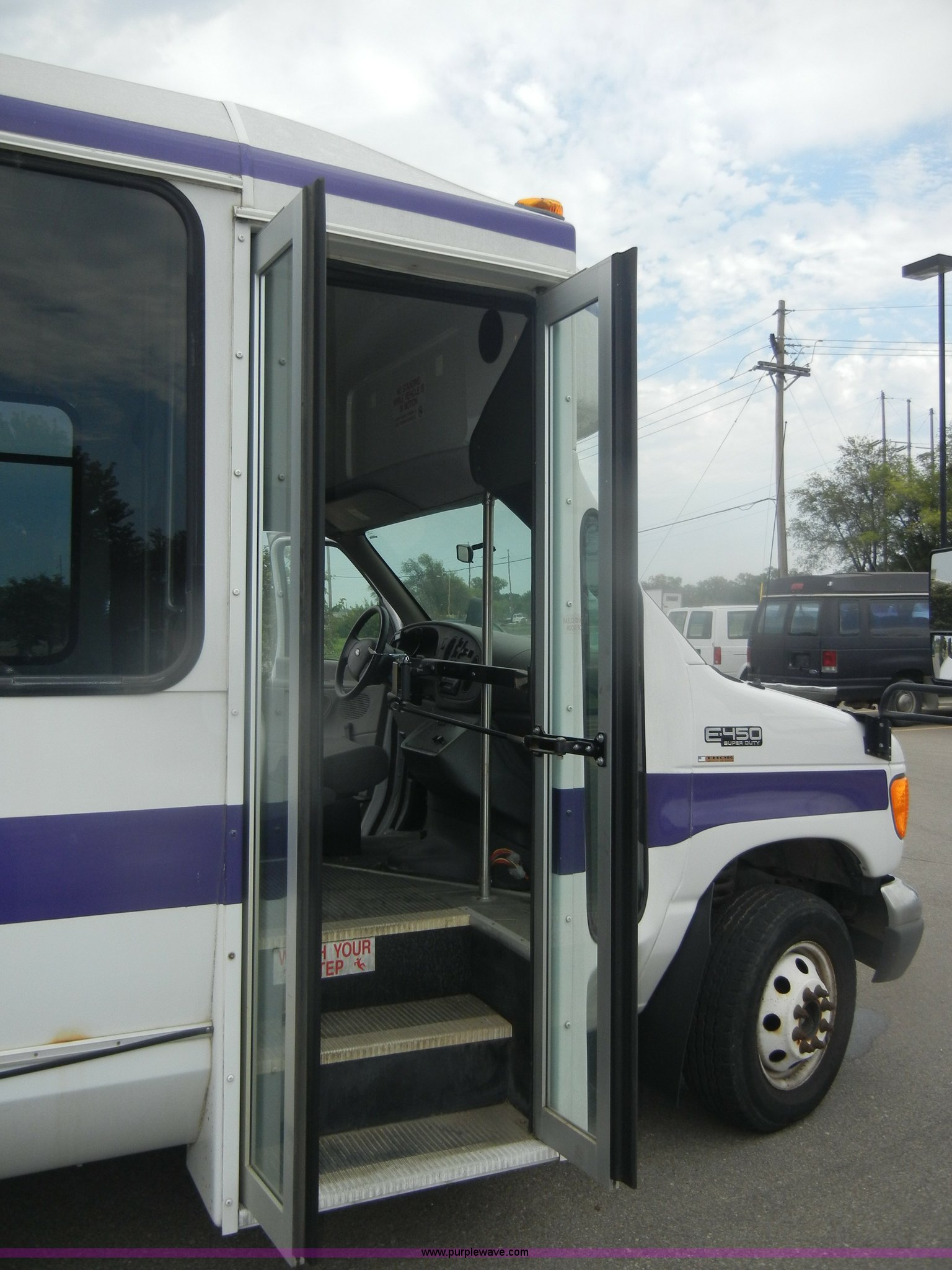 Purple Wave is selling a used Bus in Kansas. This item is a 2005 Ford E450 Super Duty shuttle bus with the following: 51,329 miles on odometer, 6.8L V10 EFI gas engine, Automatic transmission, AC and heat, Tilt, Cruise, AM/FM, Manual windows and locks, Cloth interior, Carrier rear AC and heat unit, Thor-Aerotech body, 2005 Ricon S Series wheelchair lift, Model K5005-F1020000A, Serial 00181031, 17 passenger, (16) seats, One wheelchair, Extra seat cushion, Parts for wheelchair lift and straps, Manual and video, 225/75R16 tires, GVWR 14,050 lbs, Body rust