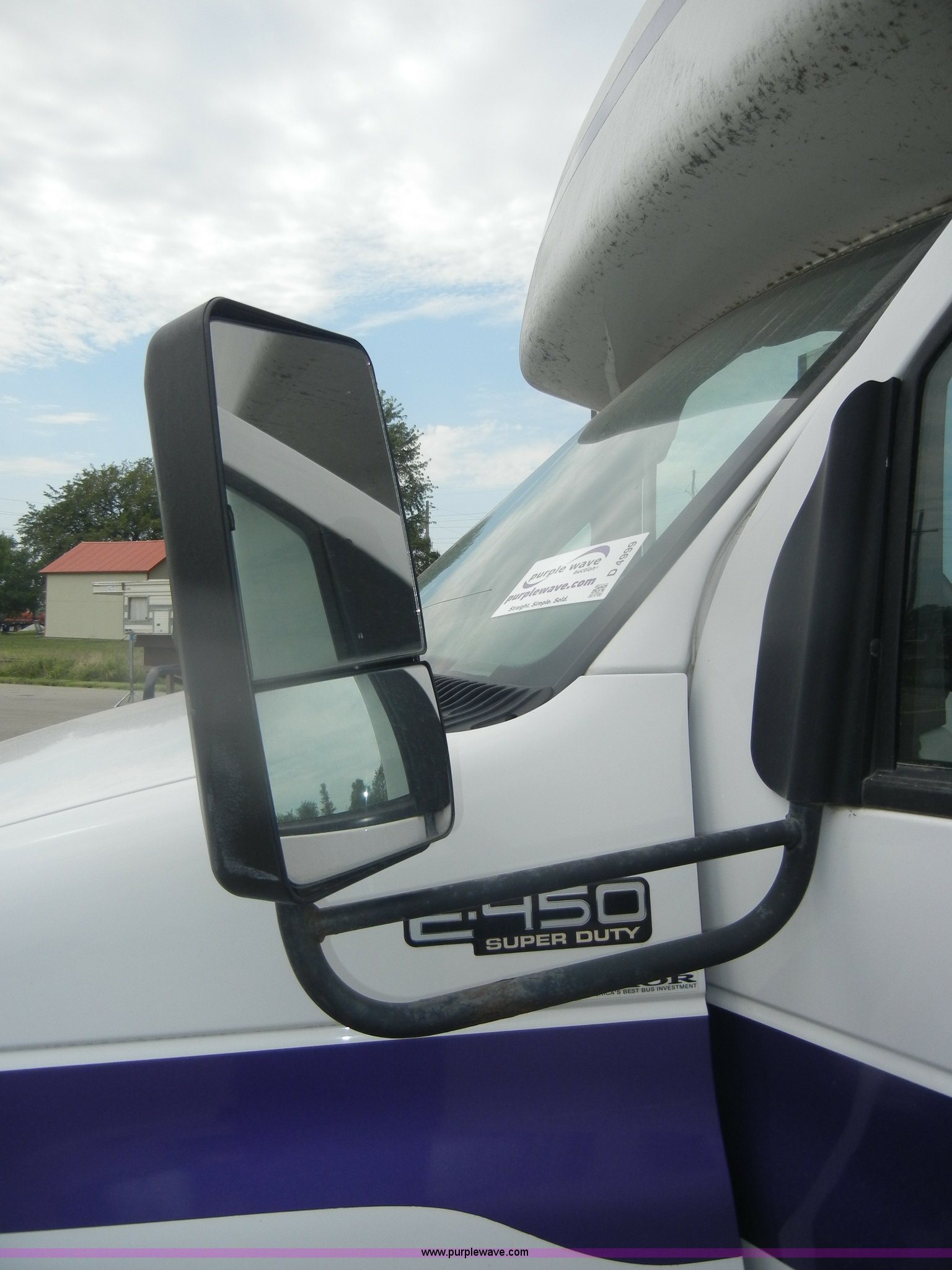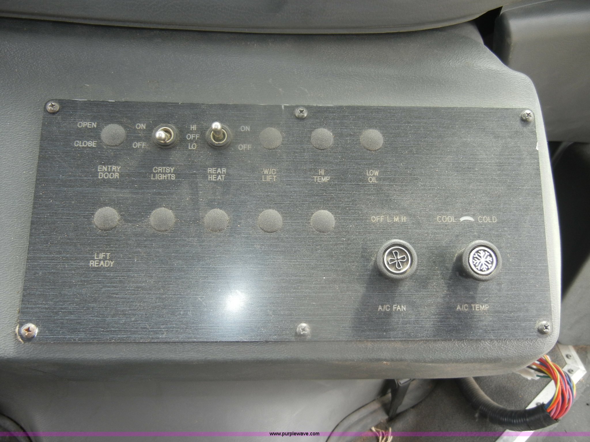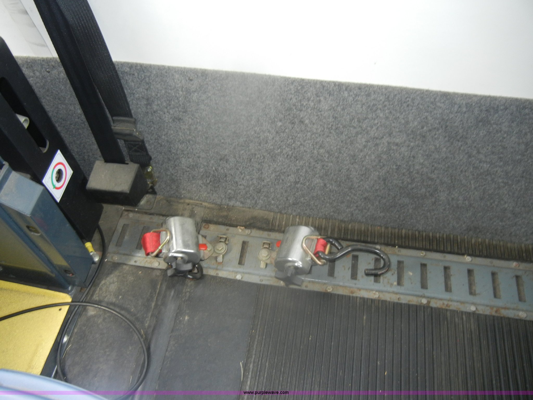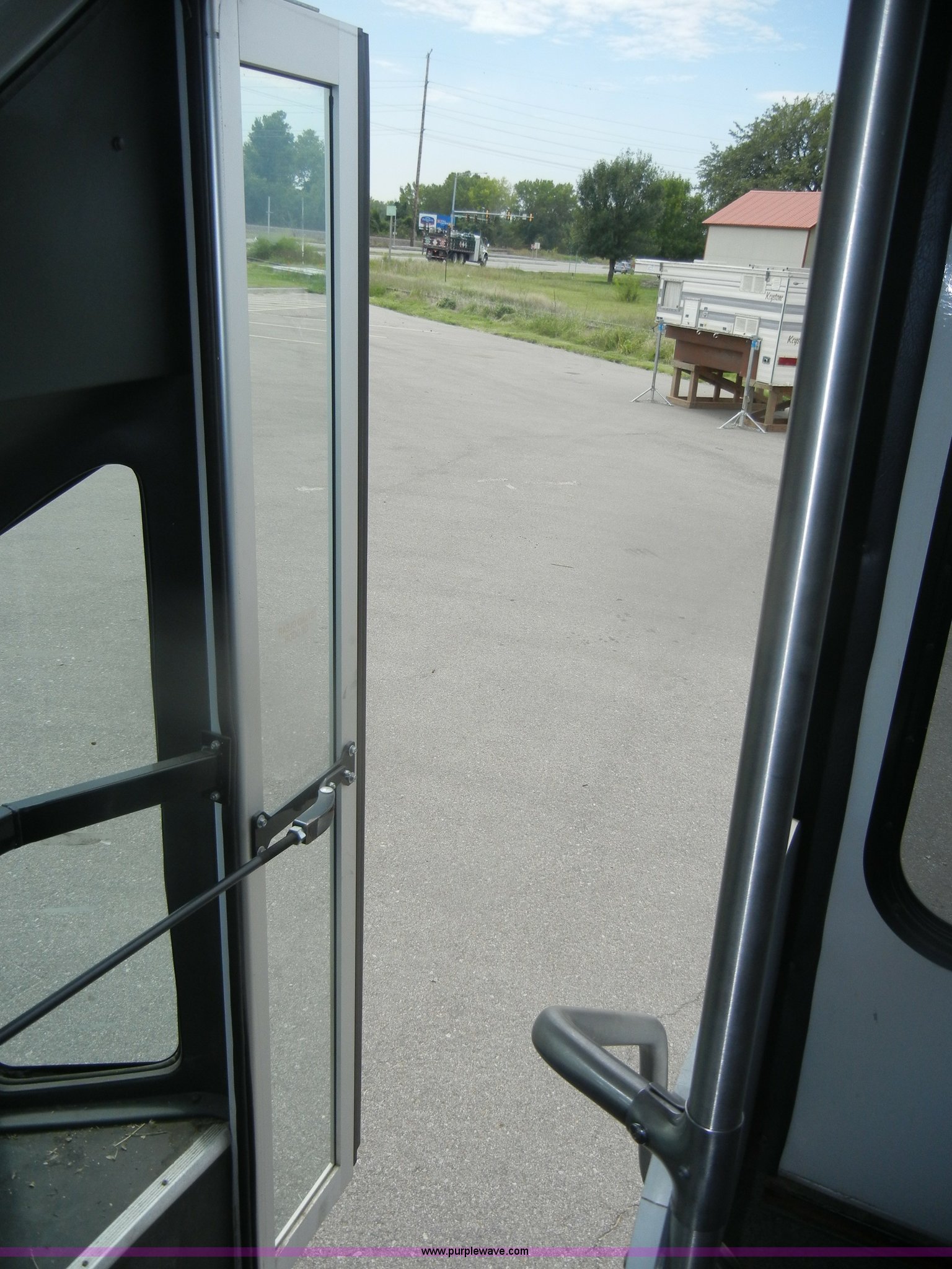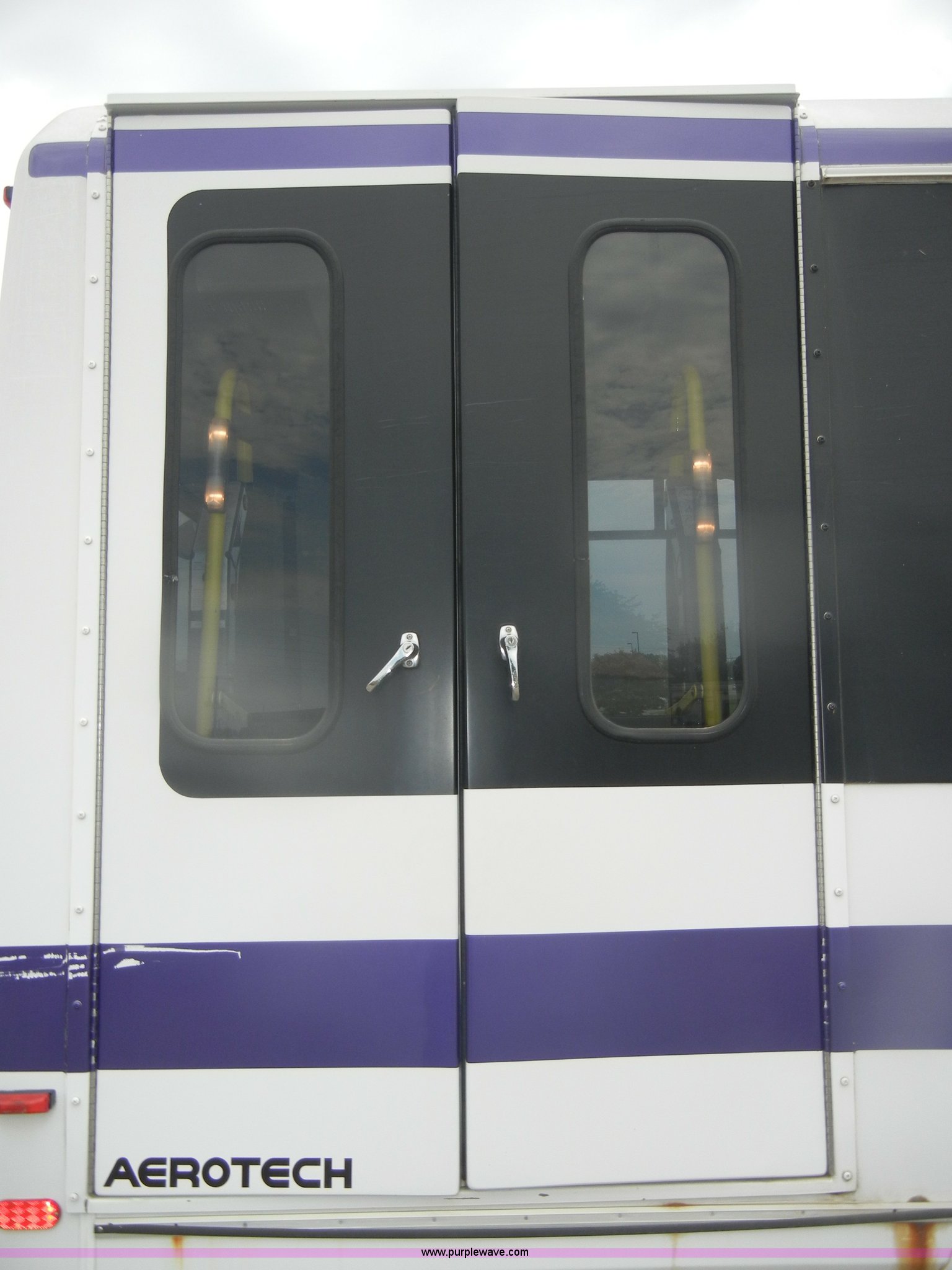 Purple Wave is selling a used Bus in Kansas. This item is a 2005 Ford E450 Super Duty shuttle bus with the following: 51,329 miles on odometer, 6.8L V10 EFI gas engine, Automatic transmission, AC and heat, Tilt, Cruise, AM/FM, Manual windows and locks, Cloth interior, Carrier rear AC and heat unit, Thor-Aerotech body, 2005 Ricon S Series wheelchair lift, Model K5005-F1020000A, Serial 00181031, 17 passenger, (16) seats, One wheelchair, Extra seat cushion, Parts for wheelchair lift and straps, Manual and video, 225/75R16 tires, GVWR 14,050 lbs, Body rust