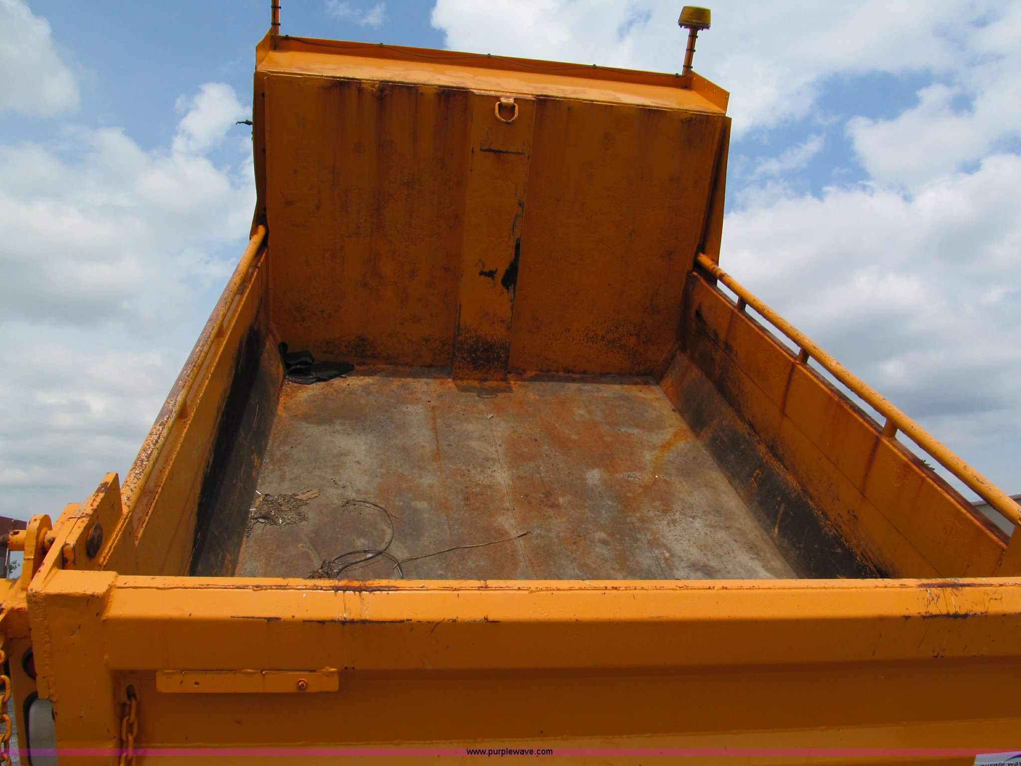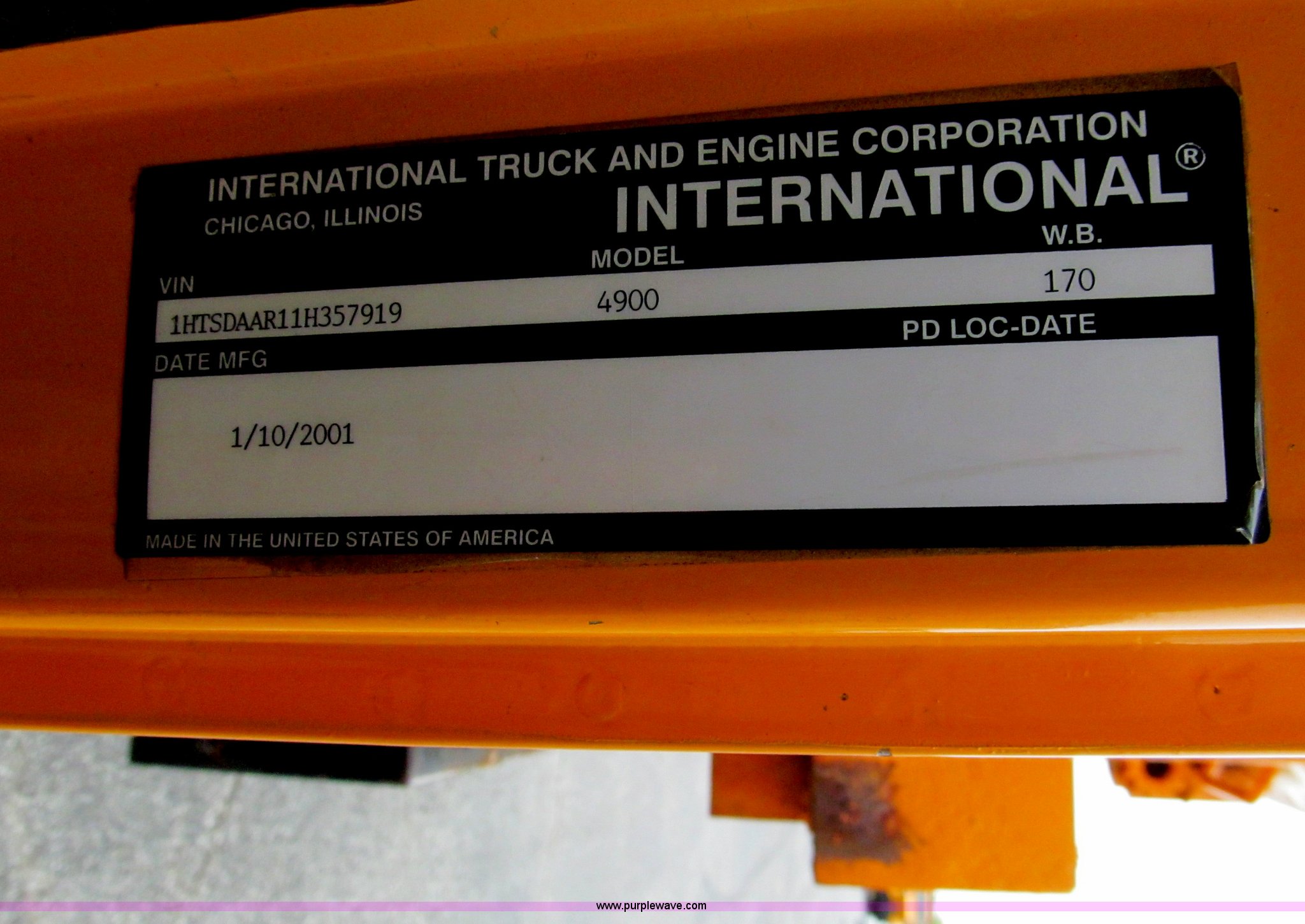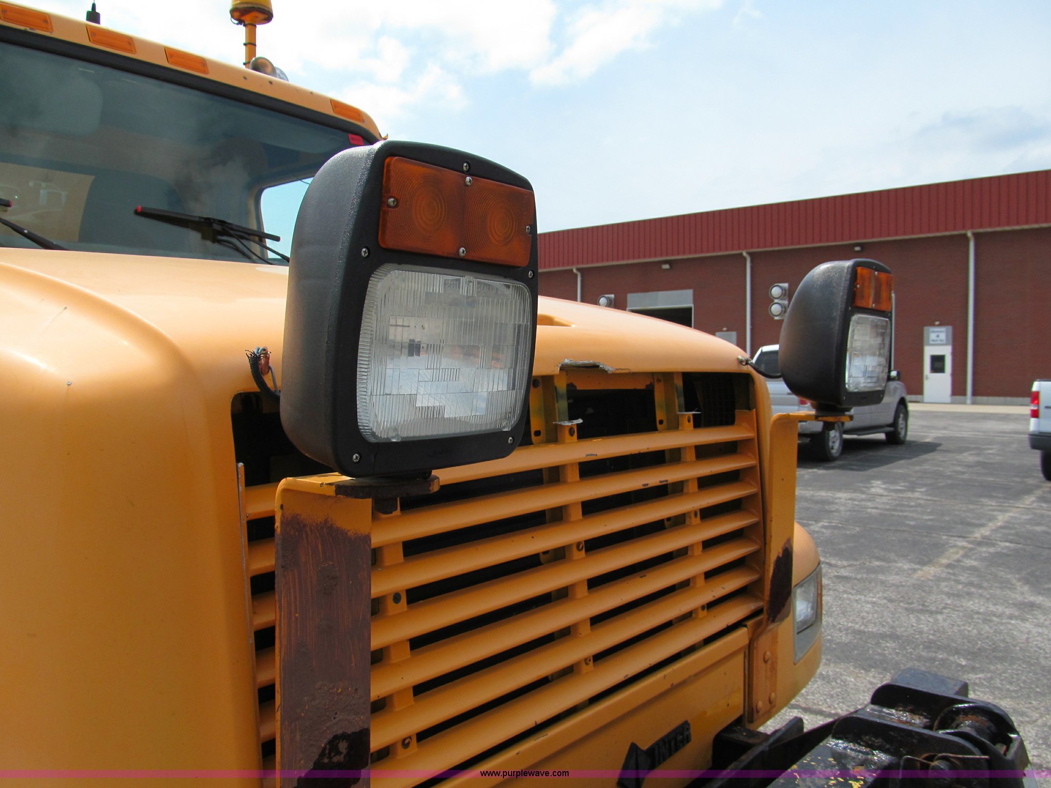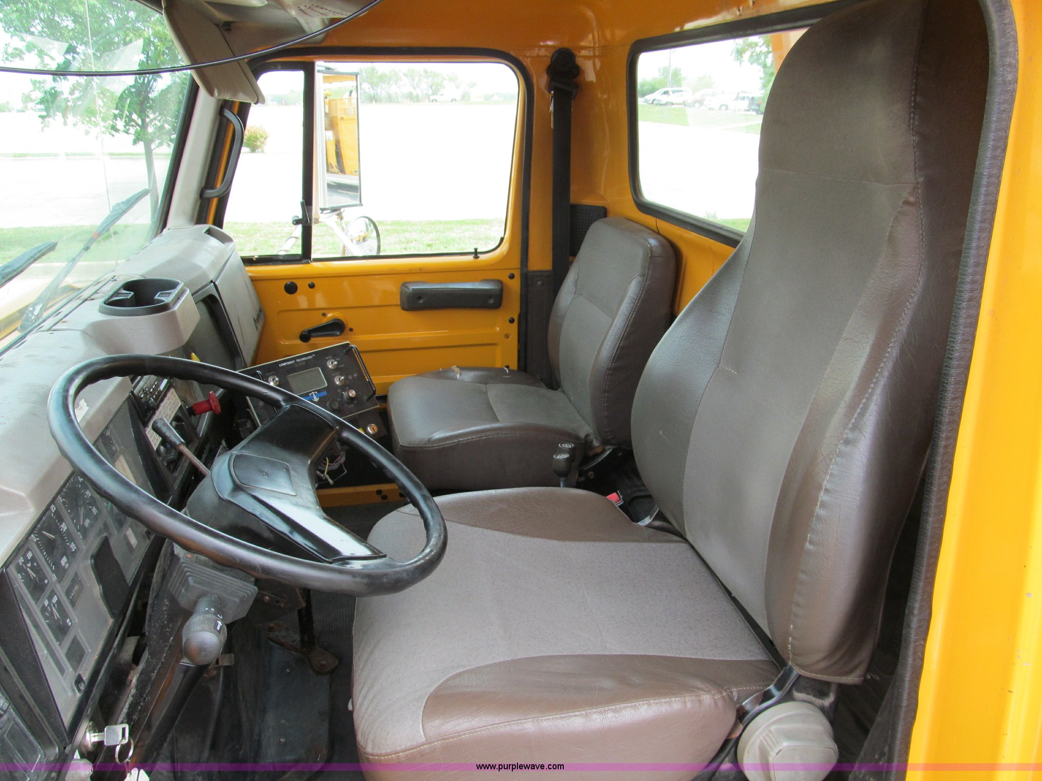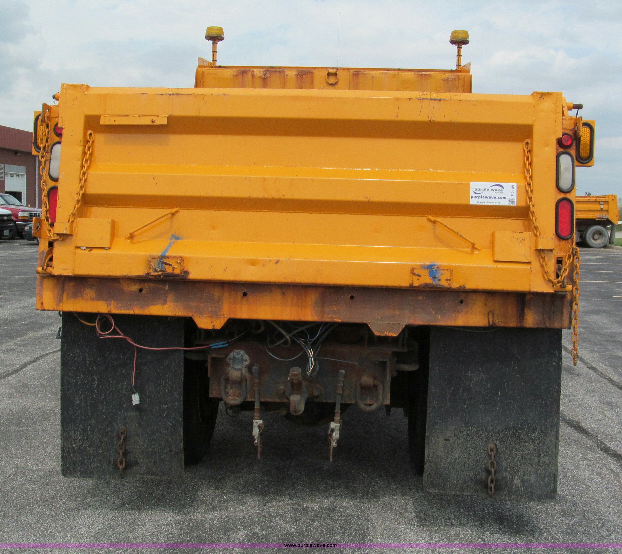 Purple Wave is selling a used Construction Dump Truck in Missouri. This item is a 2001 International 4900 dump truck with the following: 134,671 miles on odometer, 10,926 hours on meter, International DT466E 7.6L L6 diesel engine, Automatic transmission, Heat, Cruise, AM/FM, Air suspension seat, Heated mirrors, In-cab plow controls, 10'L dump bed, Bumper, Trailer wiring, Toolboxes, Pintle hitch, 50 gallon fuel tank, Trailer air brake hookups, (2) sets of auxiliary hydraulics for plows, PTO, Front mount PTO, Mudflaps, (2) bed mounted yellow warning lights, Rear tow hooks, (2) front mounted flood lights, Spring suspension, Air brakes, 170" wheelbase, 11R22.5 tires, MoDOT ID 6408