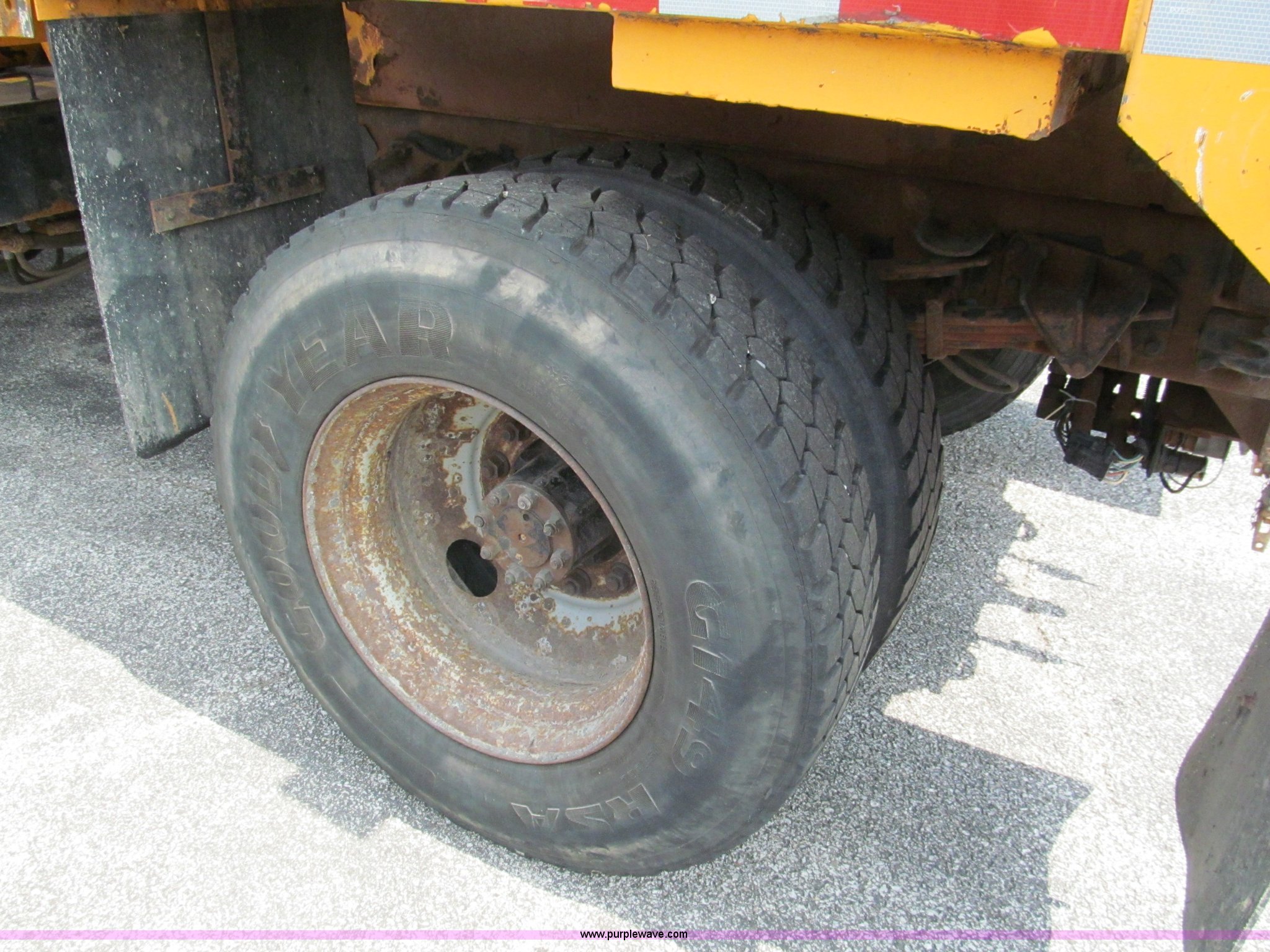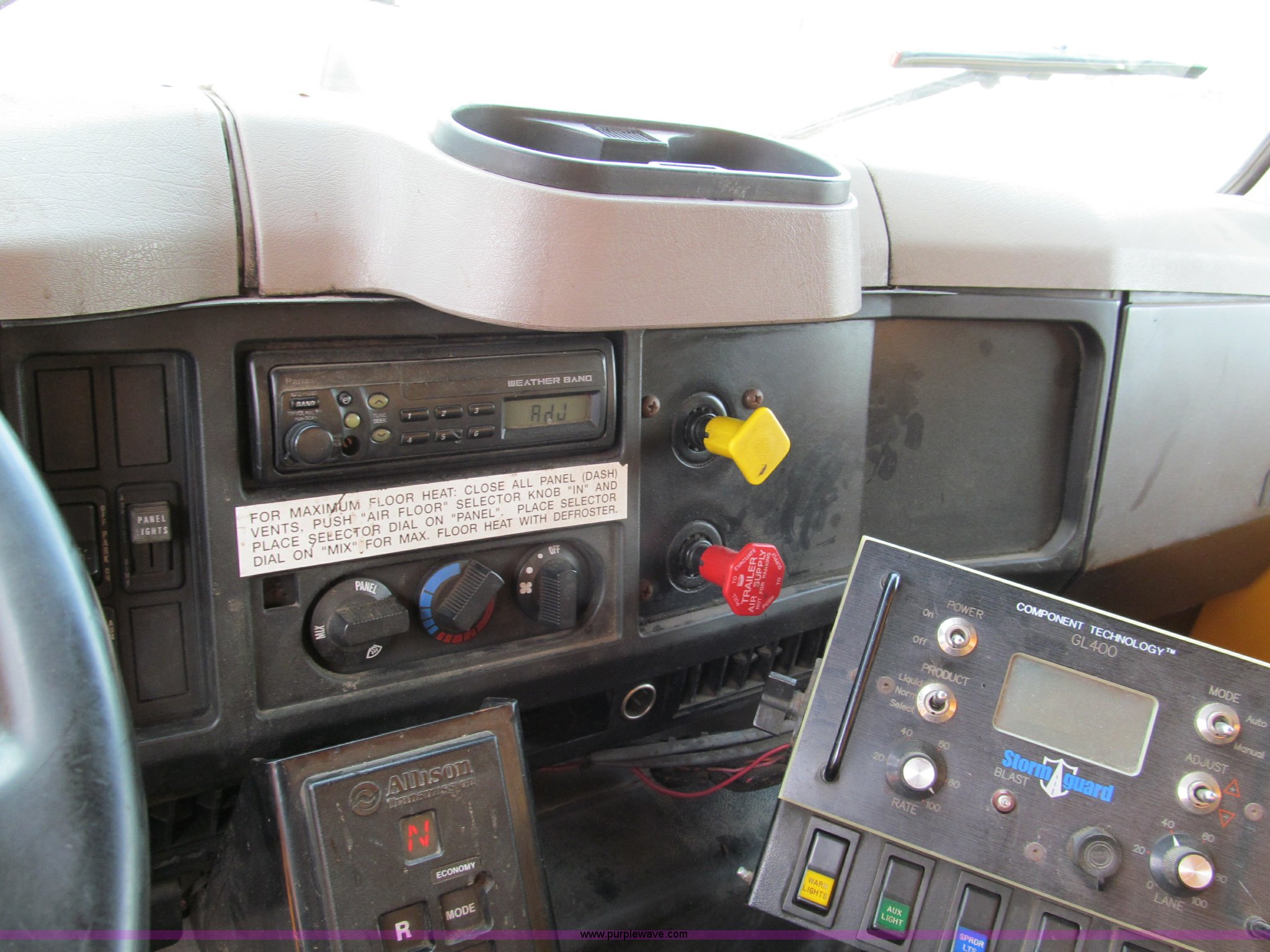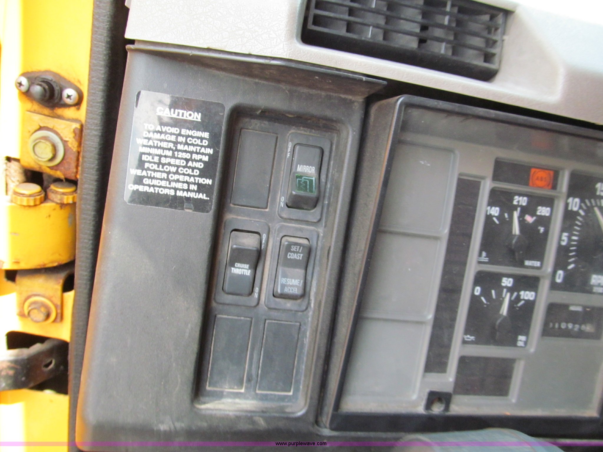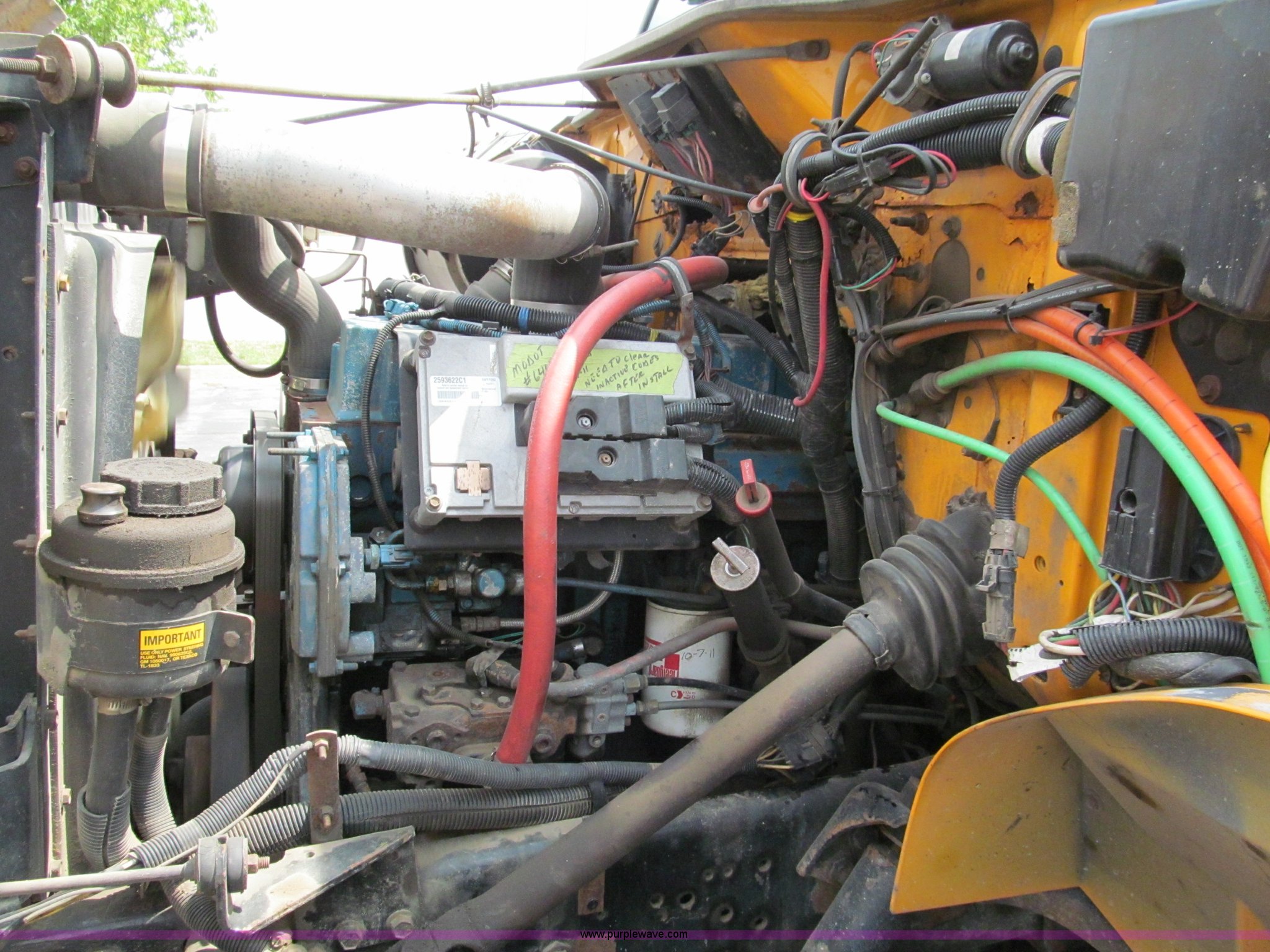 Purple Wave is selling a used Construction Dump Truck in Missouri. This item is a 2001 International 4900 dump truck with the following: 134,671 miles on odometer, 10,926 hours on meter, International DT466E 7.6L L6 diesel engine, Automatic transmission, Heat, Cruise, AM/FM, Air suspension seat, Heated mirrors, In-cab plow controls, 10'L dump bed, Bumper, Trailer wiring, Toolboxes, Pintle hitch, 50 gallon fuel tank, Trailer air brake hookups, (2) sets of auxiliary hydraulics for plows, PTO, Front mount PTO, Mudflaps, (2) bed mounted yellow warning lights, Rear tow hooks, (2) front mounted flood lights, Spring suspension, Air brakes, 170" wheelbase, 11R22.5 tires, MoDOT ID 6408