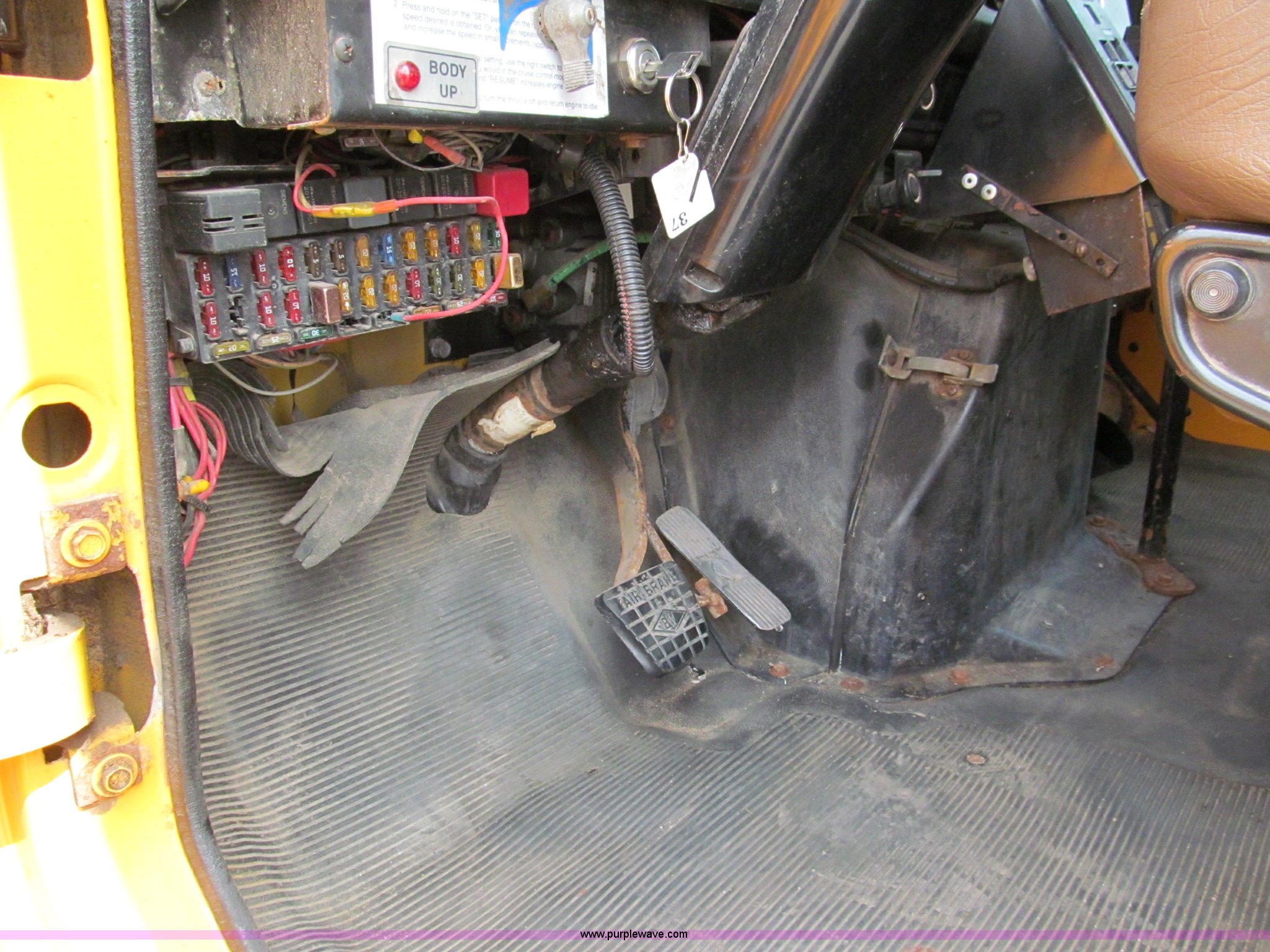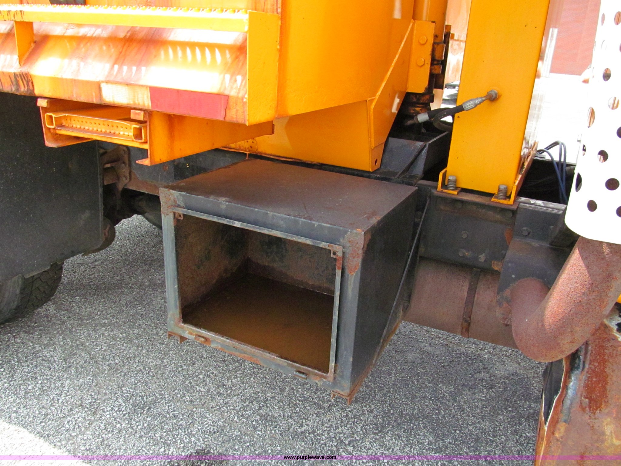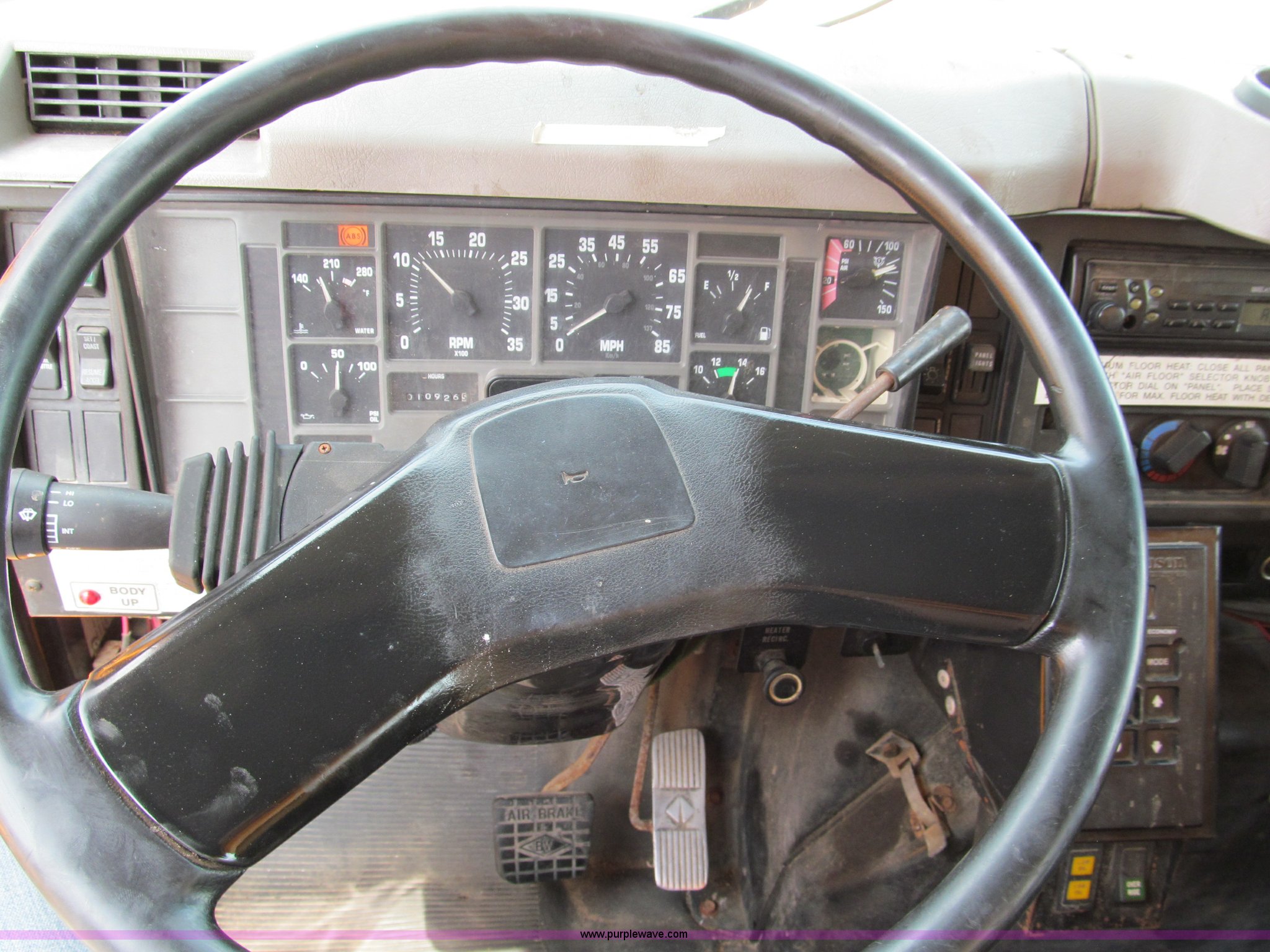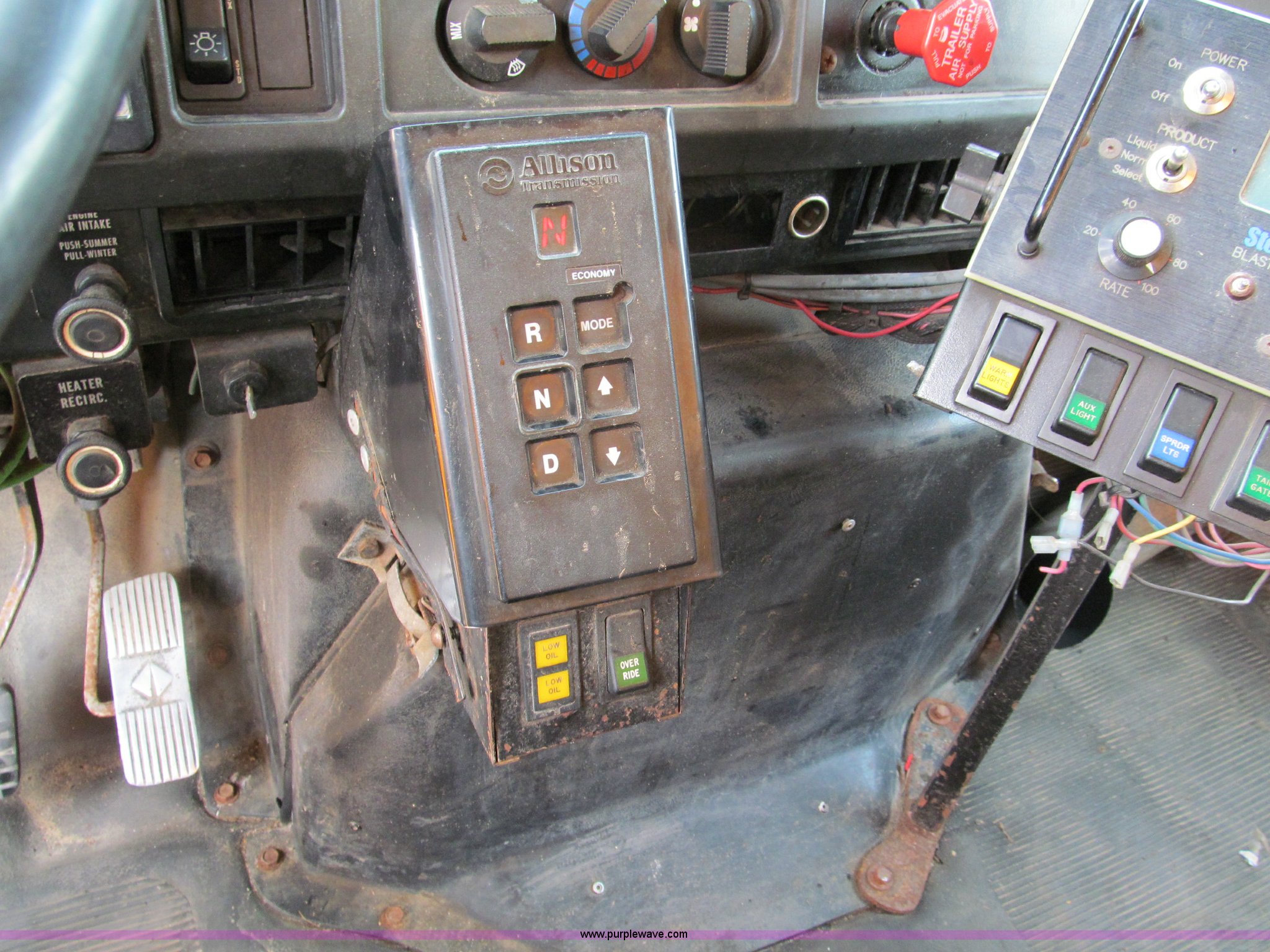Purple Wave is selling a used Construction Dump Truck in Missouri. This item is a 2001 International 4900 dump truck with the following: 134,671 miles on odometer, 10,926 hours on meter, International DT466E 7.6L L6 diesel engine, Automatic transmission, Heat, Cruise, AM/FM, Air suspension seat, Heated mirrors, In-cab plow controls, 10'L dump bed, Bumper, Trailer wiring, Toolboxes, Pintle hitch, 50 gallon fuel tank, Trailer air brake hookups, (2) sets of auxiliary hydraulics for plows, PTO, Front mount PTO, Mudflaps, (2) bed mounted yellow warning lights, Rear tow hooks, (2) front mounted flood lights, Spring suspension, Air brakes, 170" wheelbase, 11R22.5 tires, MoDOT ID 6408