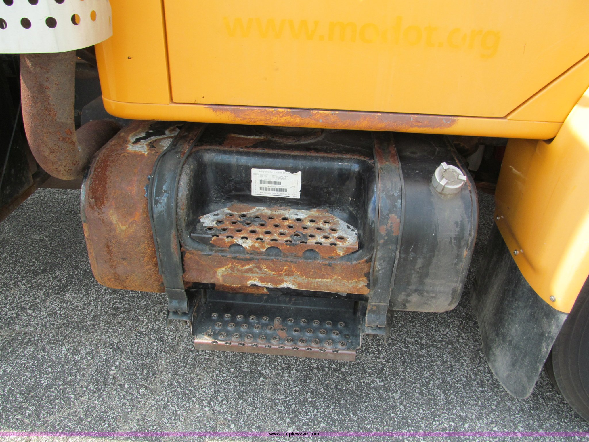 2001 International 4900 dump truck. 134,671 miles on odometer, 10,926 hours on meter, International DT466E 7.6L L6 diesel engine, Automatic transmission, Heat, Cruise, AM/FM, Air suspension seat, Heated mirrors, In-cab plow controls, 10'L dump bed, Bumper, Trailer wiring, Toolboxes, Pintle hitch, 50 gallon fuel tank, Trailer air brake hookups, (2) sets of auxiliary hydraulics for plows, PTO, Front mount PTO, Mudflaps, (2) bed mounted yellow warning lights, Rear tow hooks, (2) front mounted flood lights, Spring suspension, Air brakes, 170" wheelbase, 11R22.5 tires, MoDOT ID 6408. 1HTSDAAR11H357919. Shipping quotes available. MoDOT. 600 NE Colbern Rd. Lees Summit, MO 64086