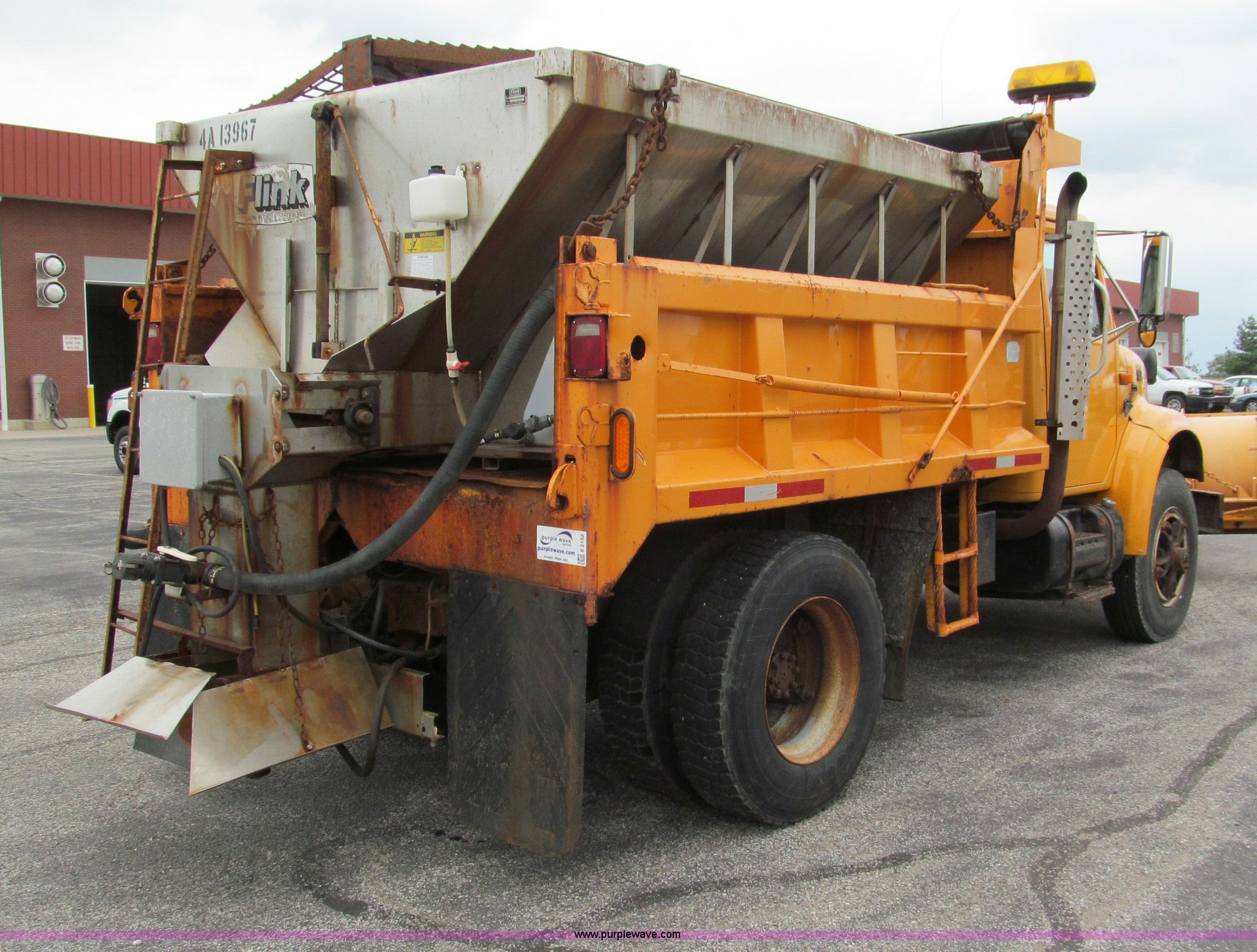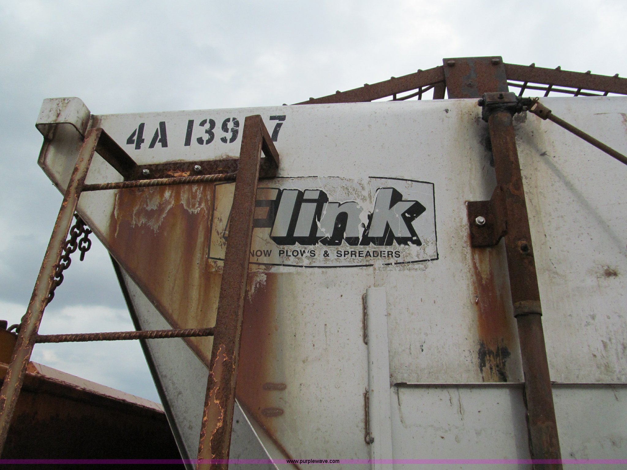 1996 International 4900 dump truck. 179,296 miles on odometer, International DT466 7.6L L6 diesel engine, Automatic transmission, Heat, Cruise, AM/FM, Air suspension seats, Heated mirrors, Galion 402E 10' dump bed 5.4 to 8.4 cu. yd. capacity, Air end gate, Rollover tarp, Serial 965426, Flink 9' spreader box Model 8609SS, Unit# 4A13967, Serial 5973, Stainless steel, Poly spreader fins, 11'W snow plow, Trailer wiring, Pintle hitch, 50 gallon fuel tank, Single rear exhaust stack, PTO, Front mount PTO, Spring suspension, Air brakes, (2) yellow flashing lights, (2) front mounted flood lights, Rear hydraulics, 152" wheelbase, 11R22.5 tires, Unattached tailgate pictured is included, MoDOT ID 5510. 1HTSDAAN3TH303022. Shipping quotes available. MoDOT. 600 NE Colbern Rd. Lees Summit, MO 64086