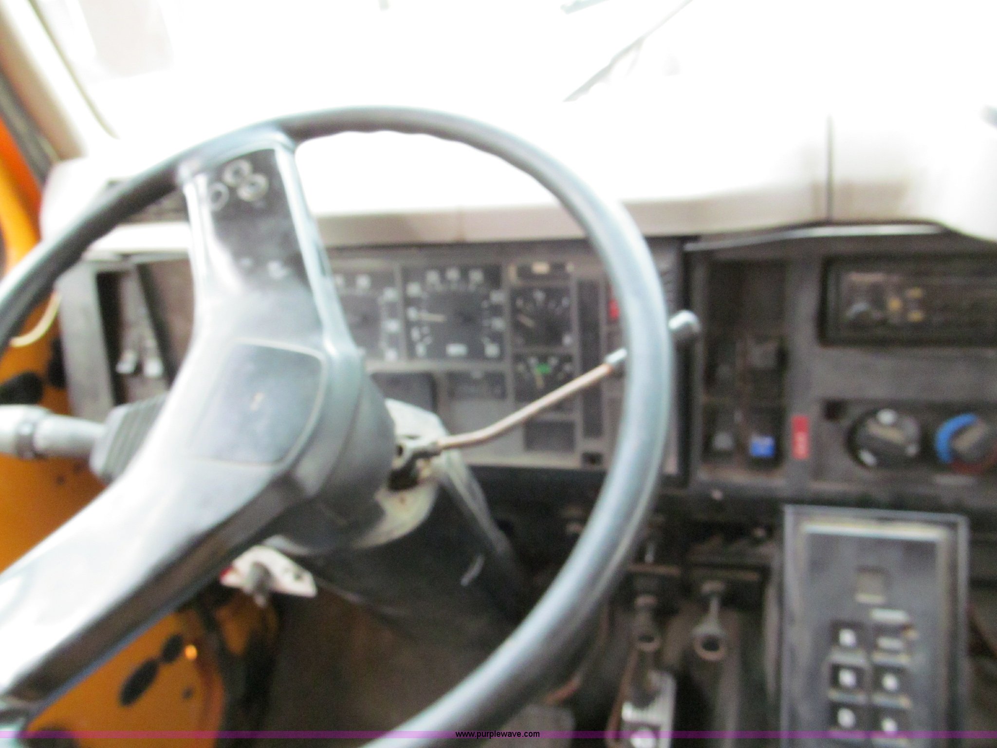Purple Wave is selling a used Construction Dump Truck in Missouri. This item is a 1999 International 4900 dump truck with the following: Approximately 173,741 total miles, 98,742 miles on odometer, 9,894 hours on meter, International DT466 7.6L L6 diesel engine, Automatic transmission, Will not go into gear, Twin screw, Heat, Cruise, AM/FM, Air suspension seat, In-cab plow controls, 16'L dump bed, Rollover tarp, Snow plow ready, Bumper, Toolbox, Pintle hitch, 80 gallon fuel tank, PTO, Front mount PTO, Spring suspension, Air brakes, Mud flaps, (2) sets of rear hydraulic remotes, Front and rear tow hooks, (2) yellow warning lights, (2) front mounted flood lights, 11R22.5 tires, Transmission will not go into gear, MoDOT ID 5911