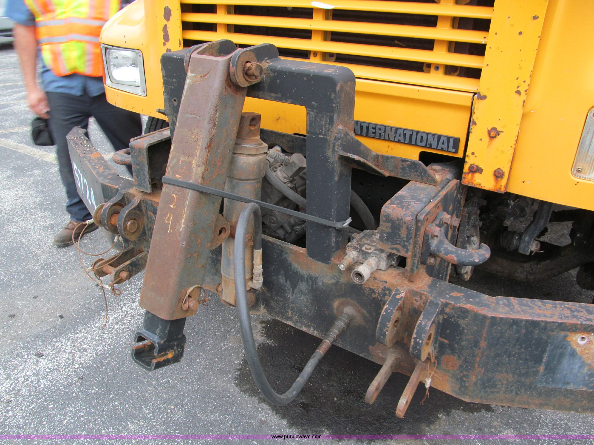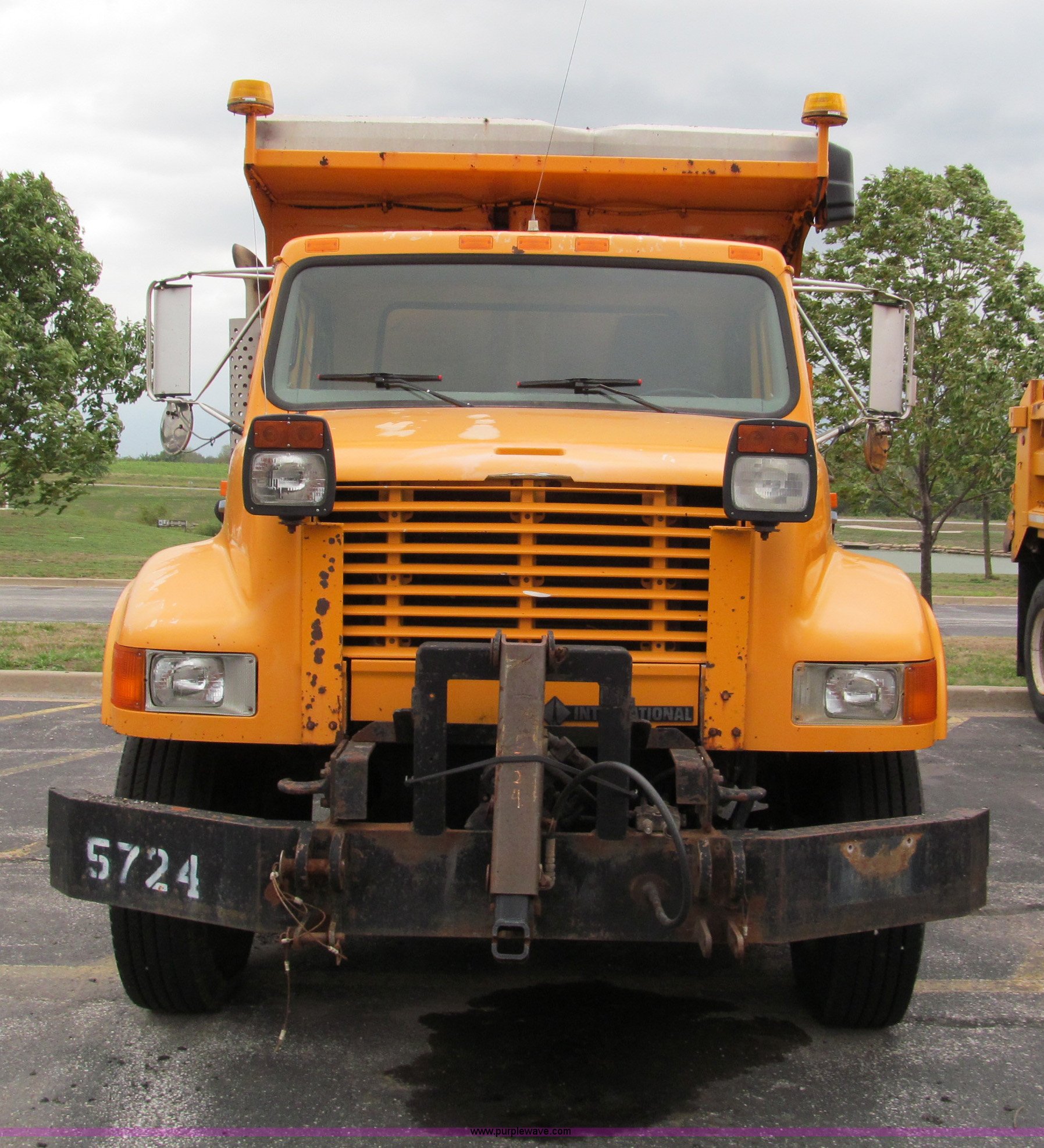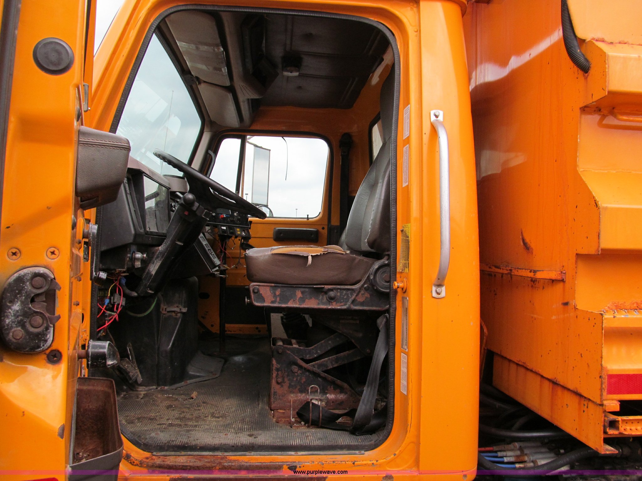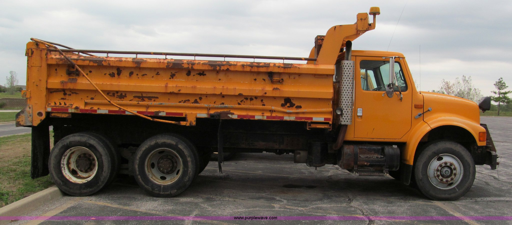 Purple Wave is selling a used Construction Dump Truck in Missouri. This item is a 1998 International 4900 dump truck with the following: 220,050 miles on odometer, 13,173 hours on meter, International DT530 8.7L L6 diesel engine, Automatic transmission, Twin screw, Heat, Cruise, AM/FM, Air suspension seat, Heated mirrors, In-cab plow controls, 16'L dump bed, Air end gate, Rollover tarp capable, No tarp,, Bumper, Pintle hitch, Single rear exhaust stack, Snow plow ready, Mud flaps, Rear tow hooks, PTO, Front mount PTO, Spring suspension, Air brakes, (2) bed mounted yellow warning lights, (2) front mounted flood lights, 11R22.5 tires, Oil leak in front part of engine, Bed leans when raising, not safe to operate, Unknown running condition, MoDOT ID 5724
