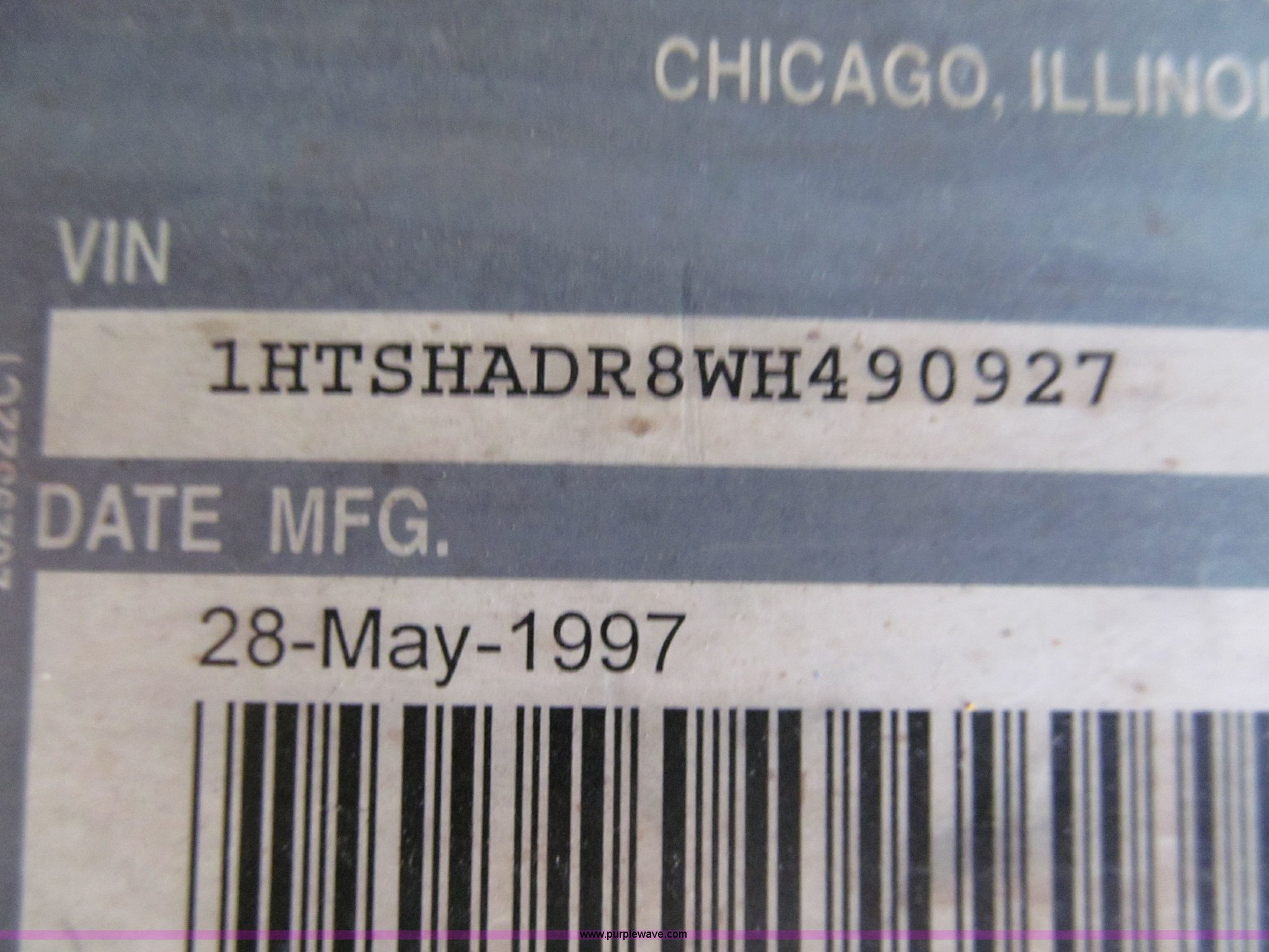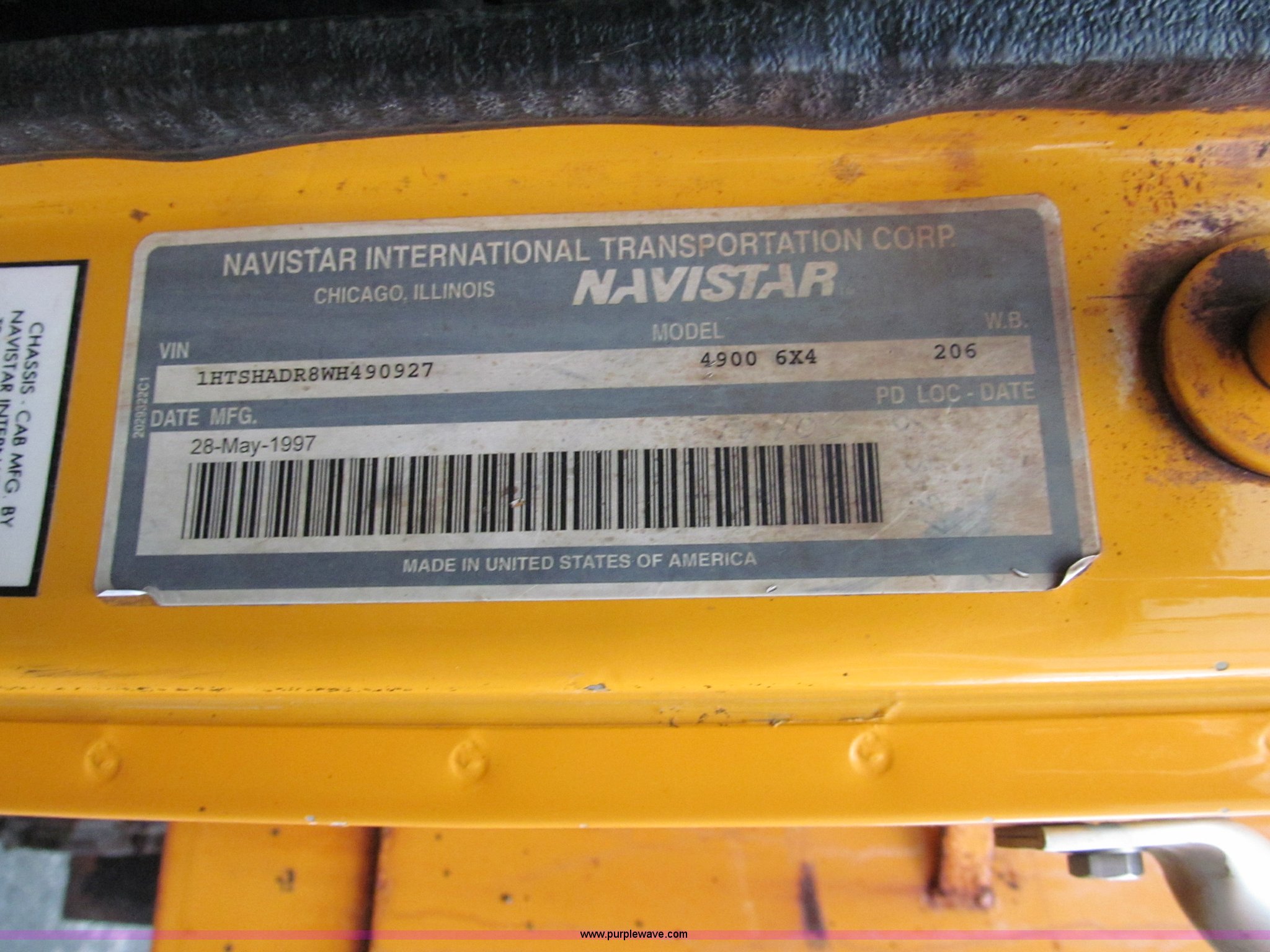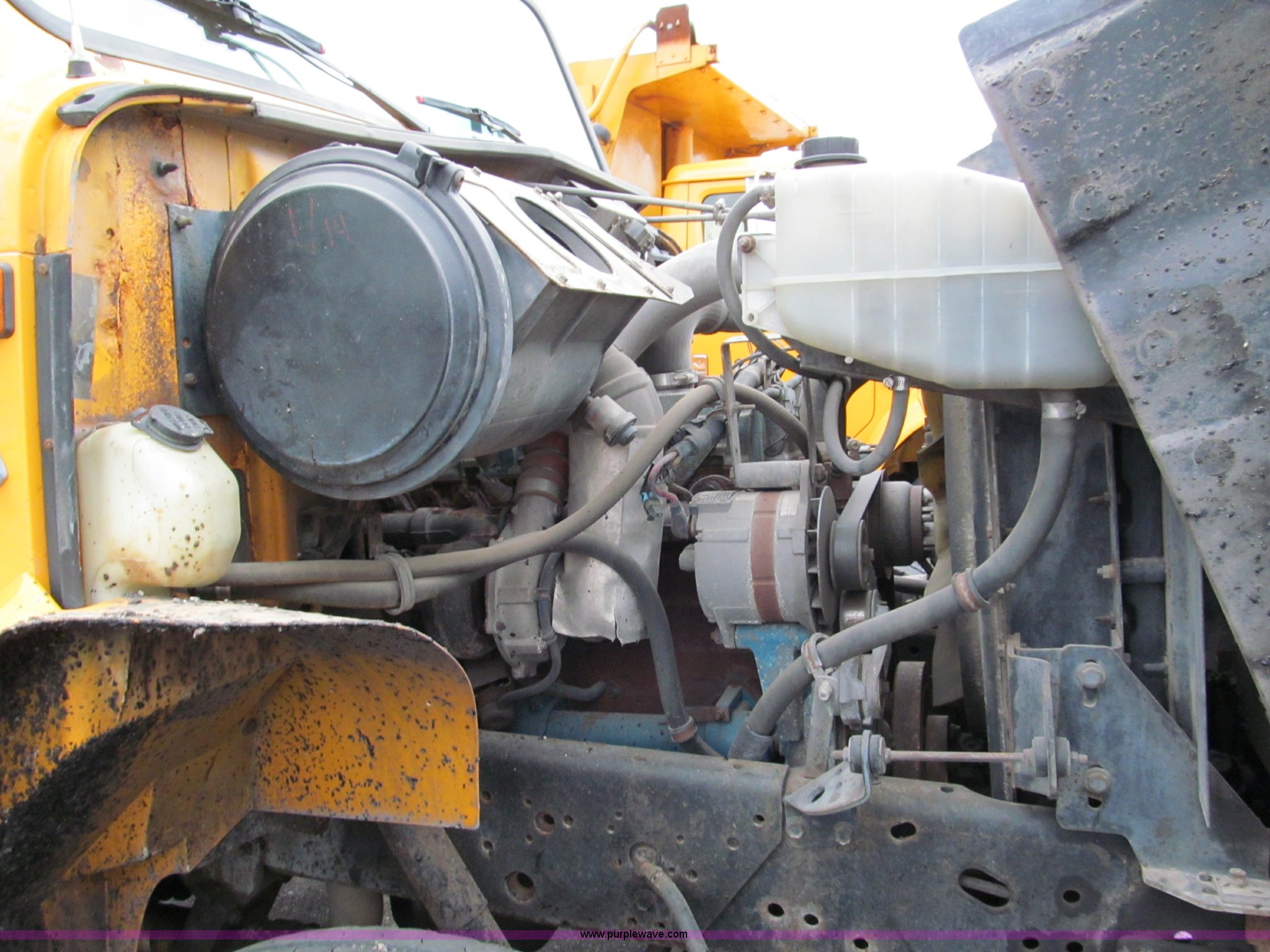 Purple Wave is selling a used Construction Dump Truck in Missouri. This item is a 1998 International 4900 dump truck with the following: 220,050 miles on odometer, 13,173 hours on meter, International DT530 8.7L L6 diesel engine, Automatic transmission, Twin screw, Heat, Cruise, AM/FM, Air suspension seat, Heated mirrors, In-cab plow controls, 16'L dump bed, Air end gate, Rollover tarp capable, No tarp,, Bumper, Pintle hitch, Single rear exhaust stack, Snow plow ready, Mud flaps, Rear tow hooks, PTO, Front mount PTO, Spring suspension, Air brakes, (2) bed mounted yellow warning lights, (2) front mounted flood lights, 11R22.5 tires, Oil leak in front part of engine, Bed leans when raising, not safe to operate, Unknown running condition, MoDOT ID 5724