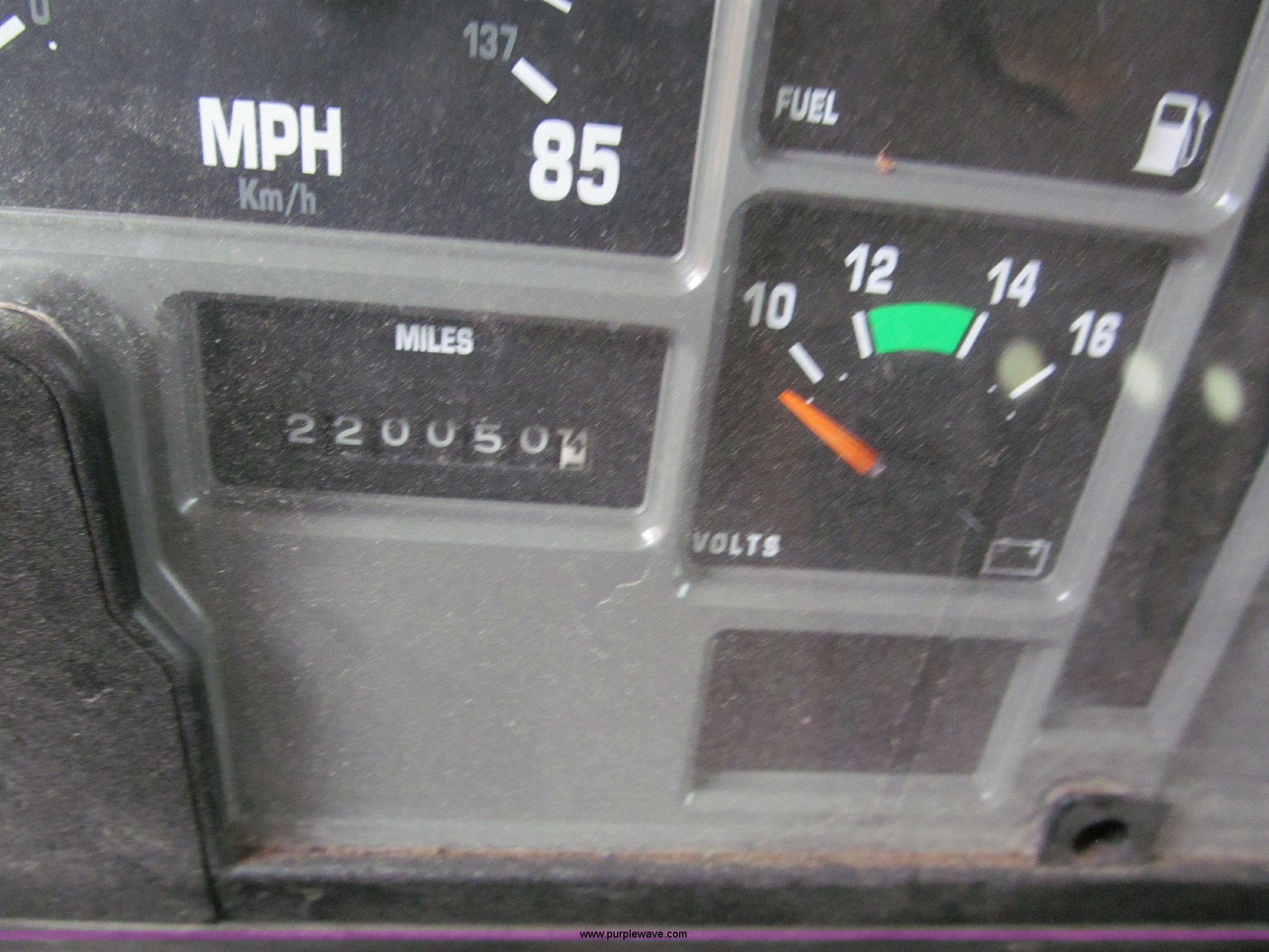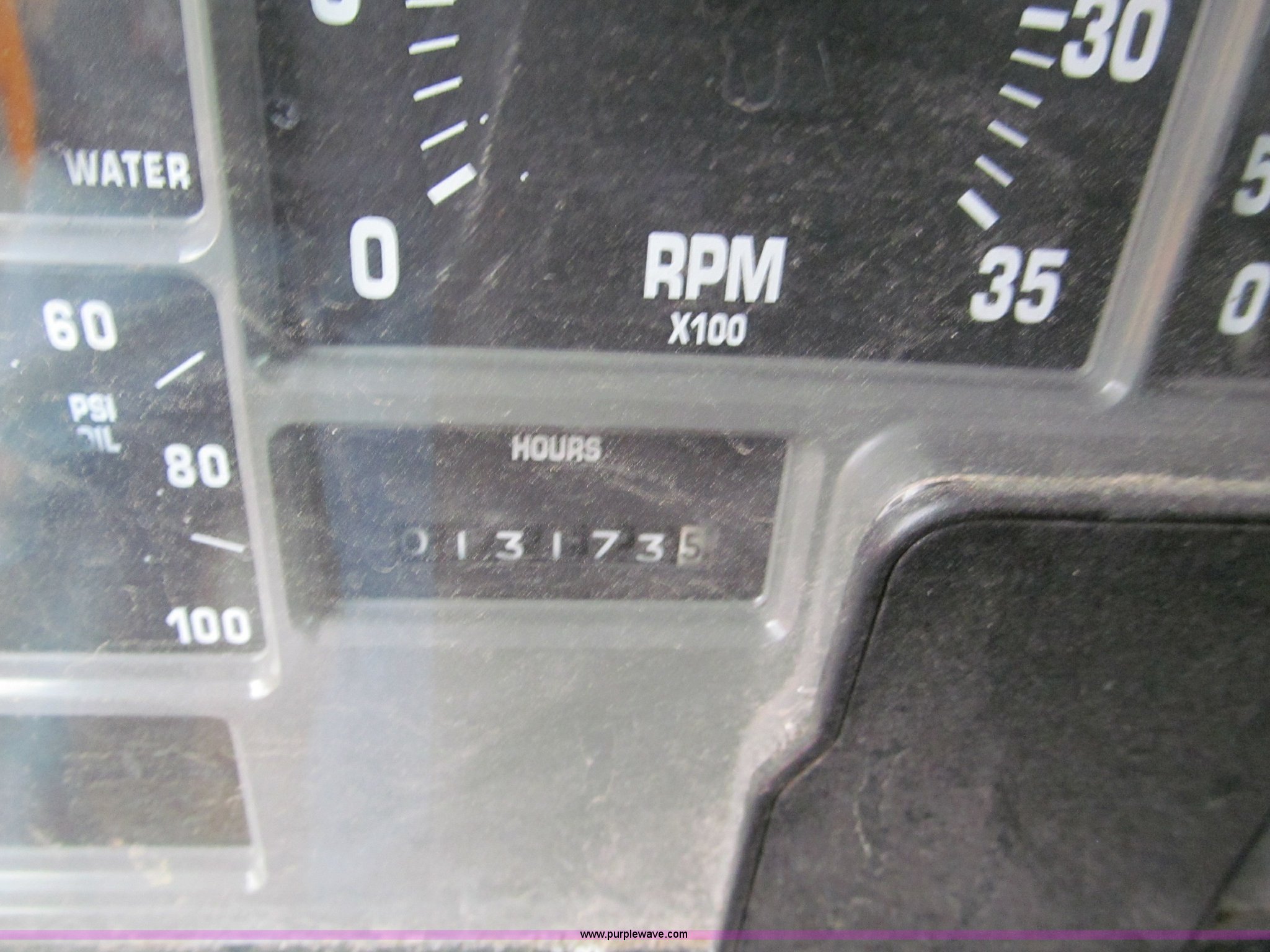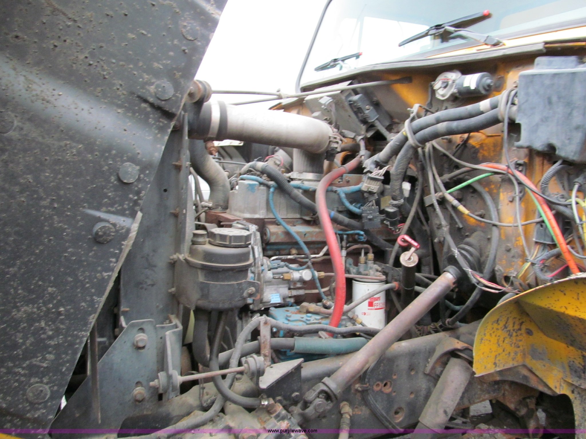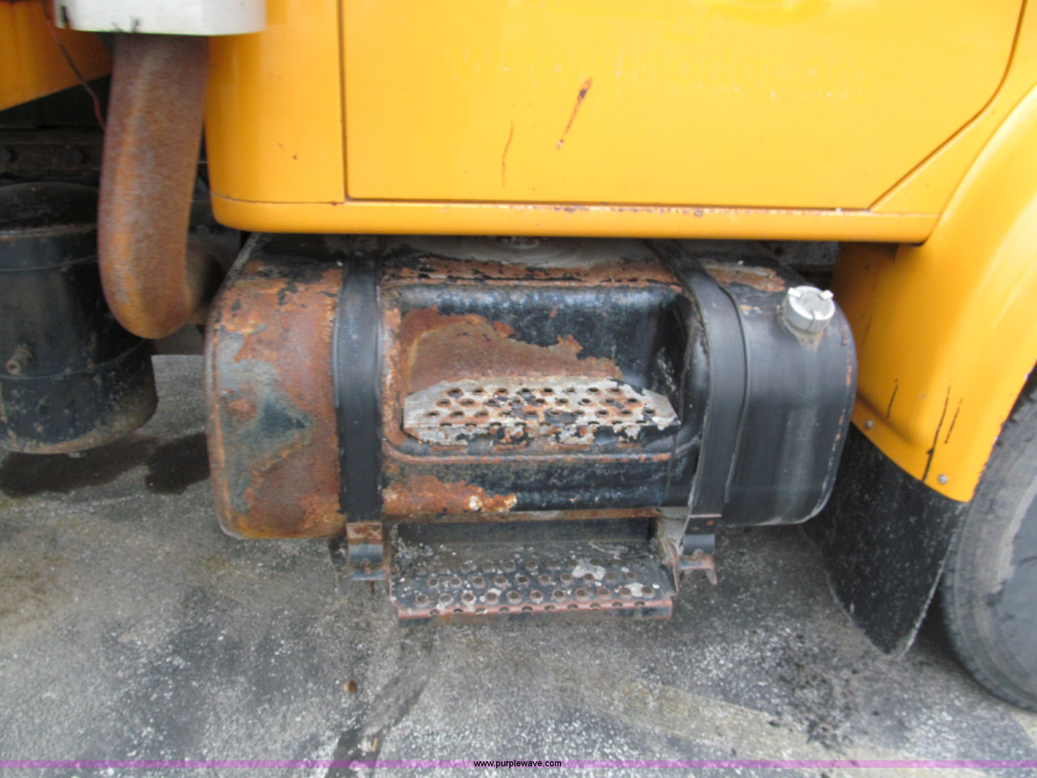 Purple Wave is selling a used Construction Dump Truck in Missouri. This item is a 1998 International 4900 dump truck with the following: 220,050 miles on odometer, 13,173 hours on meter, International DT530 8.7L L6 diesel engine, Automatic transmission, Twin screw, Heat, Cruise, AM/FM, Air suspension seat, Heated mirrors, In-cab plow controls, 16'L dump bed, Air end gate, Rollover tarp capable, No tarp,, Bumper, Pintle hitch, Single rear exhaust stack, Snow plow ready, Mud flaps, Rear tow hooks, PTO, Front mount PTO, Spring suspension, Air brakes, (2) bed mounted yellow warning lights, (2) front mounted flood lights, 11R22.5 tires, Oil leak in front part of engine, Bed leans when raising, not safe to operate, Unknown running condition, MoDOT ID 5724
