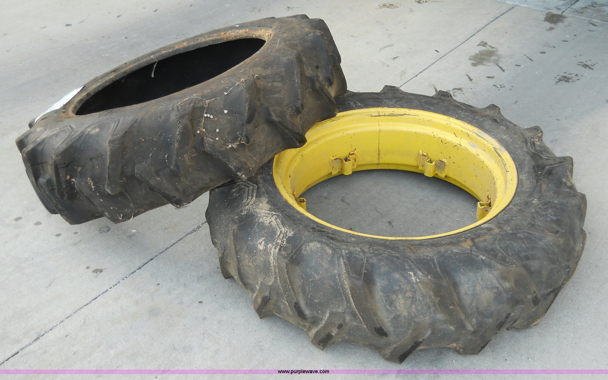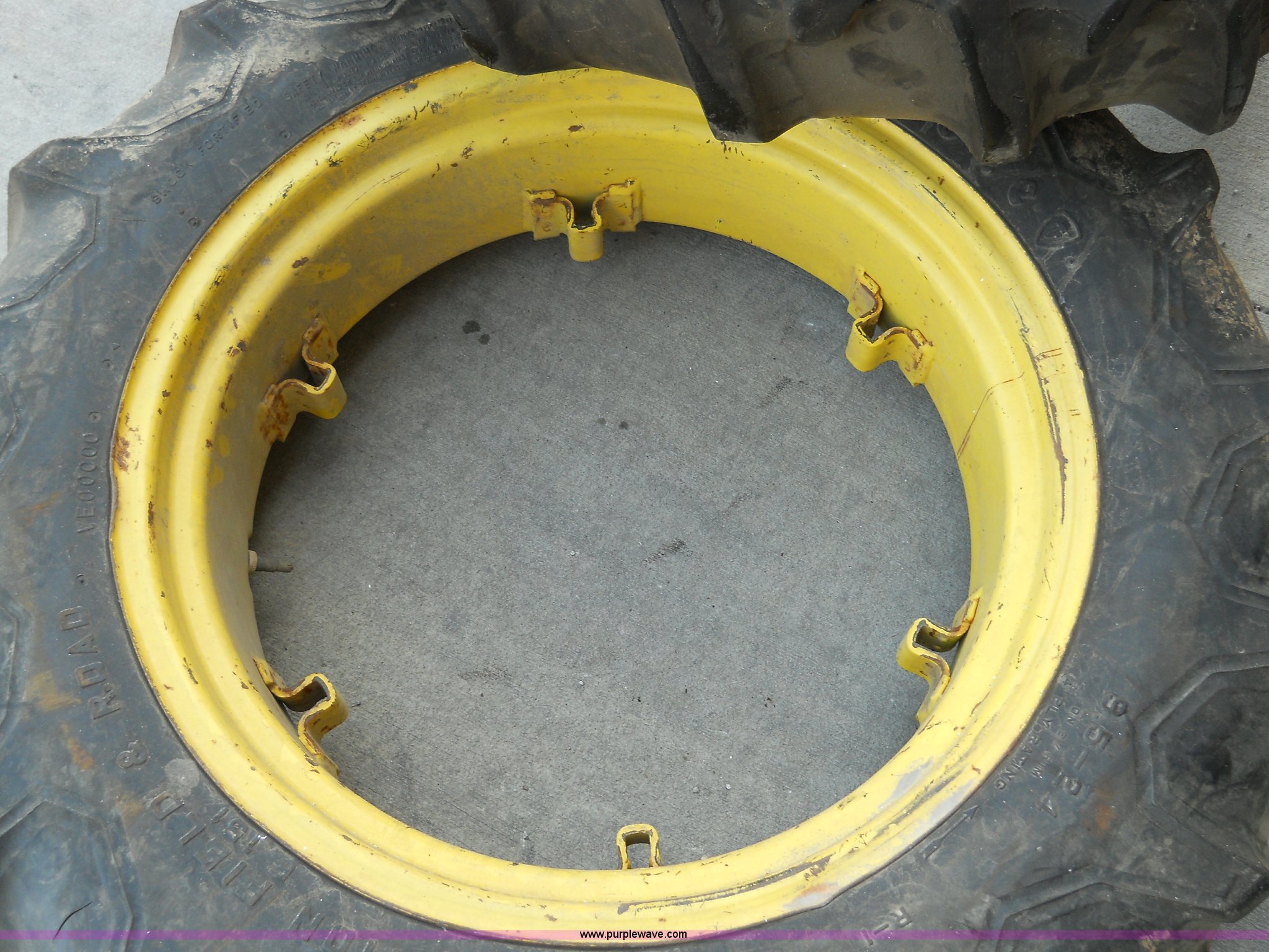 Purple Wave is selling a used Industrial Tires or Tracks in Missouri. This item is a (2) Firestone 9.5-24 Field & Road Ag tires with the following: Used, One on John Deere wheel