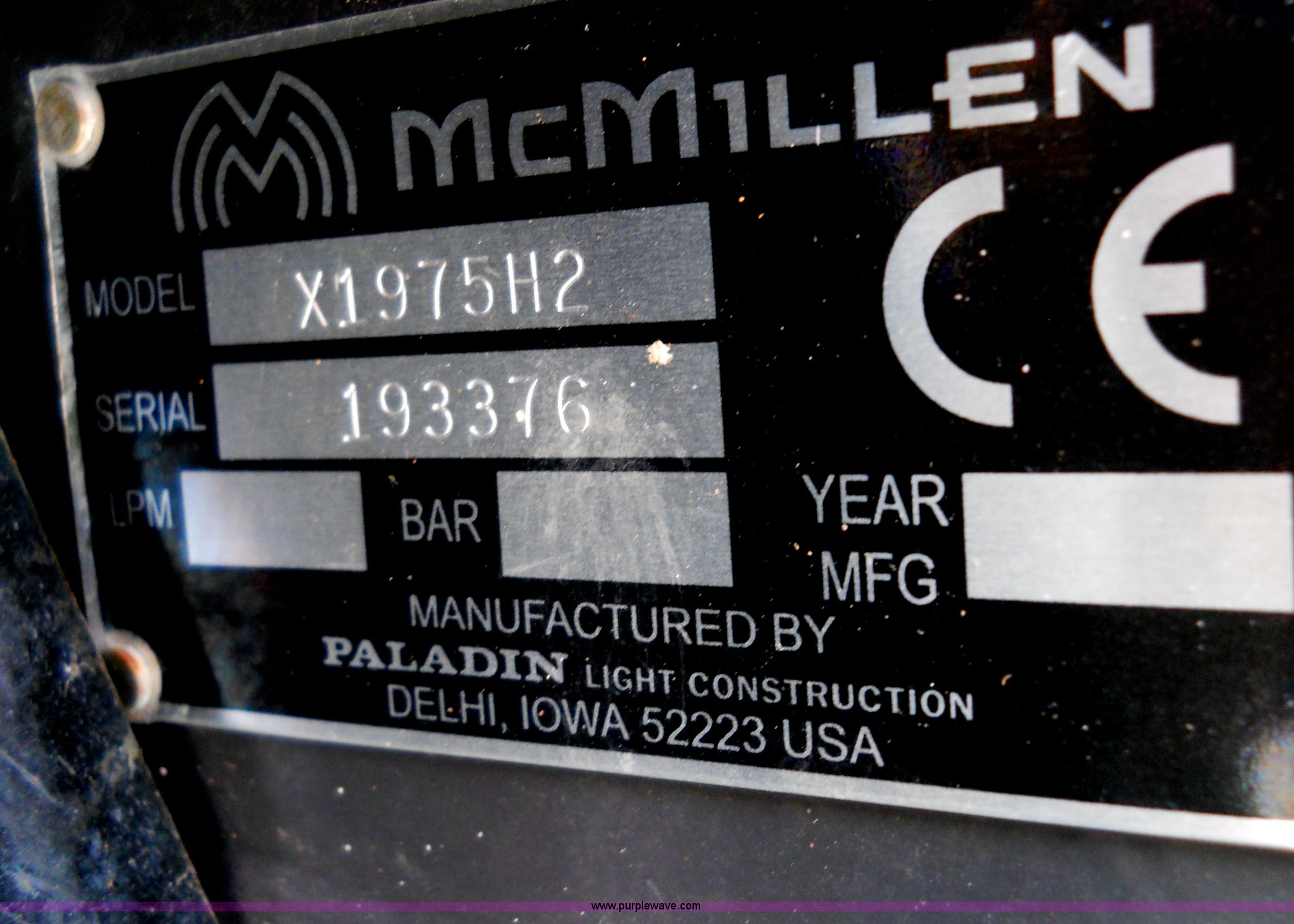 Purple Wave is selling a used Rough Terr. Forklift Attach. in Missouri. This item is a McMillen telehandler auger attachment with the following: Model X1975H2, Fits New Holland telehandler, Serial 193376