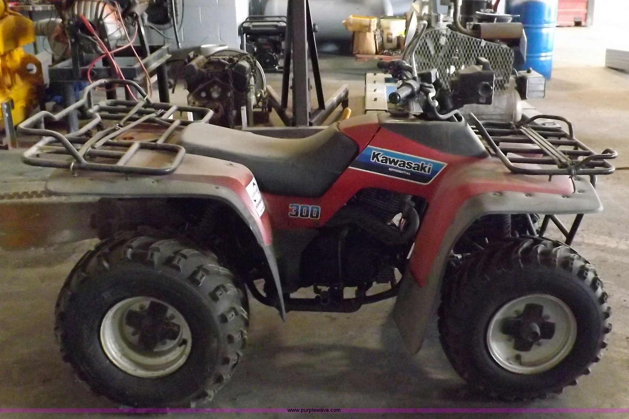 Purple Wave is selling a used ATV in Kansas. This item is a 1986 Kawasaki Bayou 300 ATV with the following: Five speed transmission, Front and rear racks, 22x8-10 front tires, 24x11-10 rear tires, Non-operational, No odometer