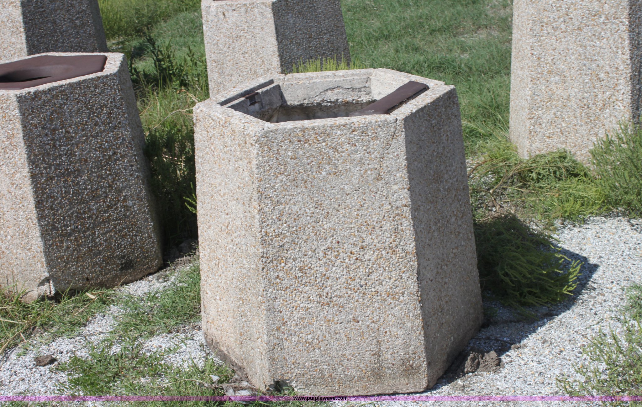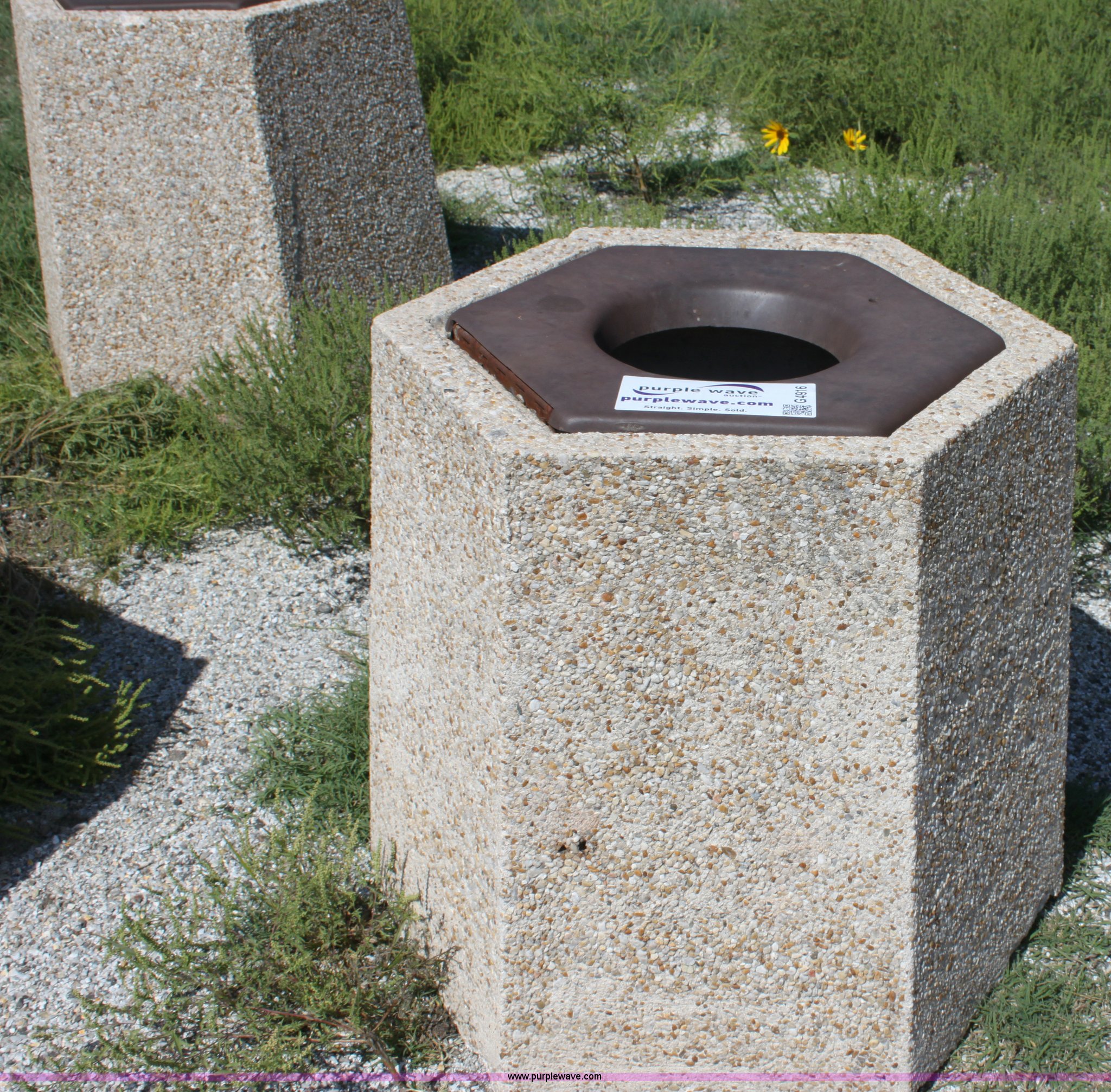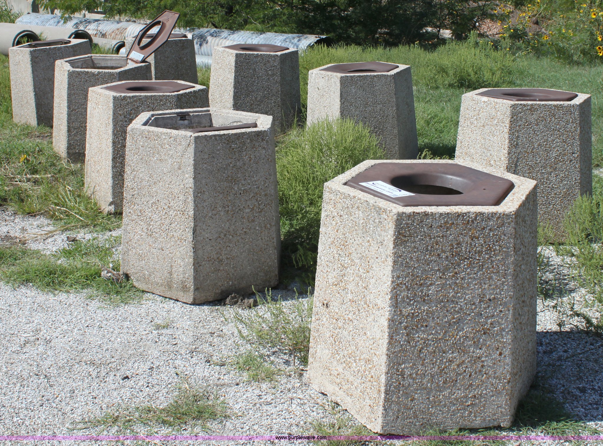 (9) concrete trash cans has sold in Newton, Kansas for $253. Item G4916 sold on October 9th, 2012.