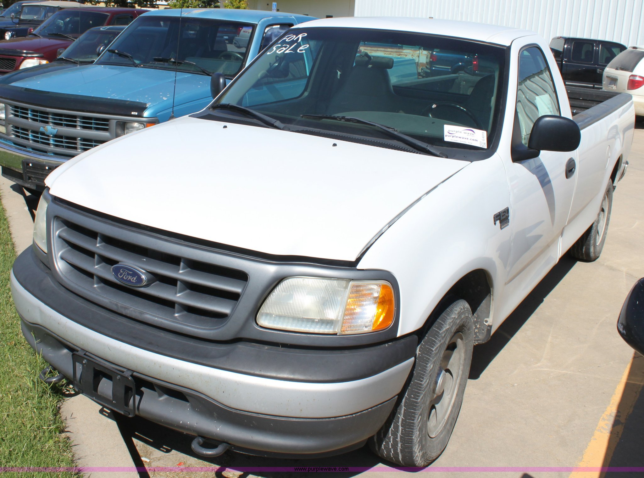 Purple Wave is selling a used Passenger Vehicle in Kansas. This item is a 2000 Ford F150 pickup truck with the following: 157,018 miles on odometer, 4.6L V8 EFI gas engine, Automatic transmission, AC and heat, AM/FM, Manual windows and locks, Vinyl interior, Bed liner, Long bed, Front tow hooks, 235/70R16 tires, Dented drivers door