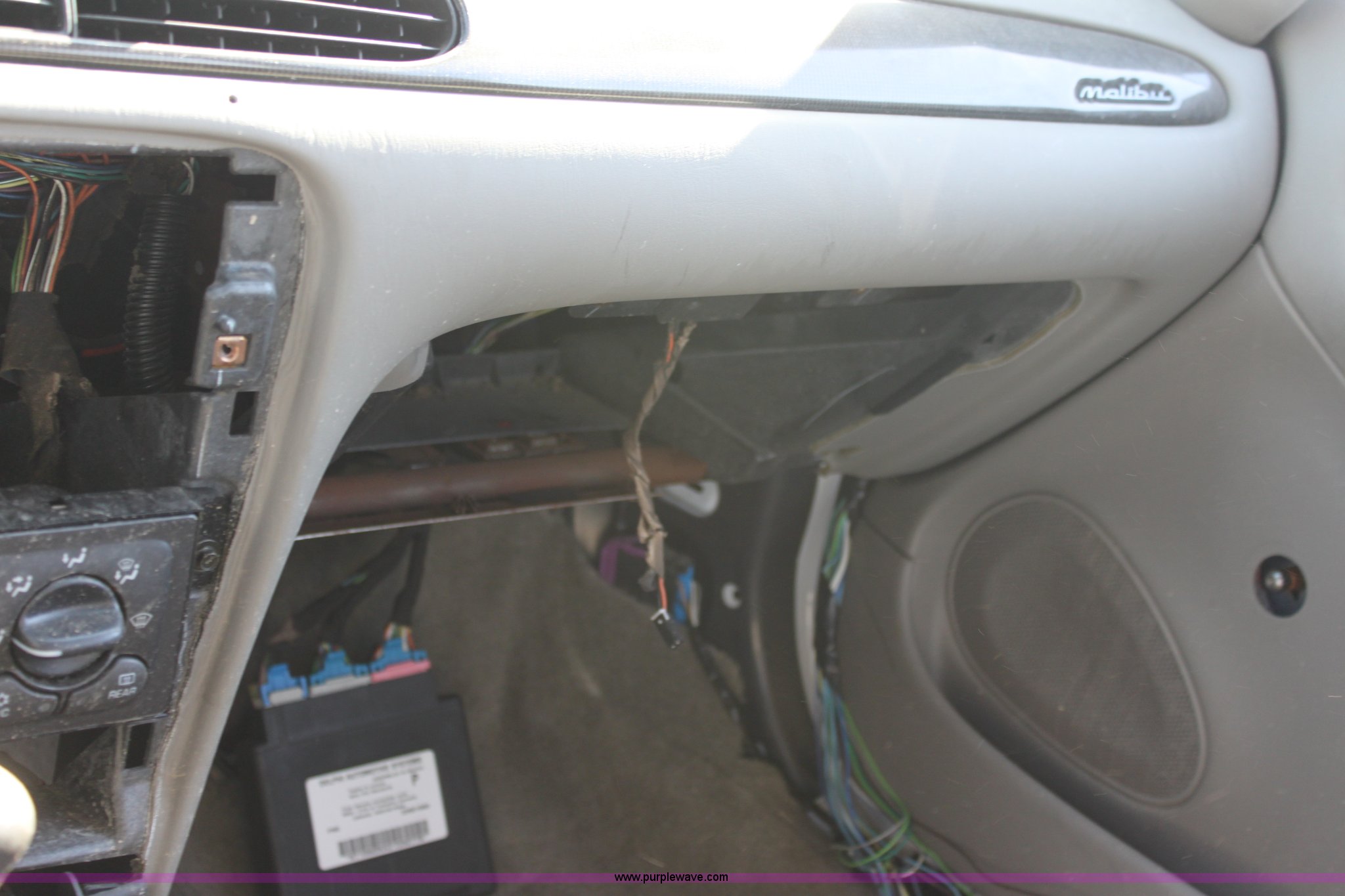 Purple Wave is selling a used Passenger Vehicle in Kansas. This item is a 2002 Chevrolet Malibu with the following: 62,514 miles on odometer, No engine, Automatic transmission, AC and heat, Tilt, Cruise, Manual windows and locks, Cloth interior, Cracked windshield, Interior components missing, Substantial front end damage, CV axle bent, Missing passenger front fender, Taillight missing, Non-operational, must be towed, (2) spare tires on car, Missing one tire