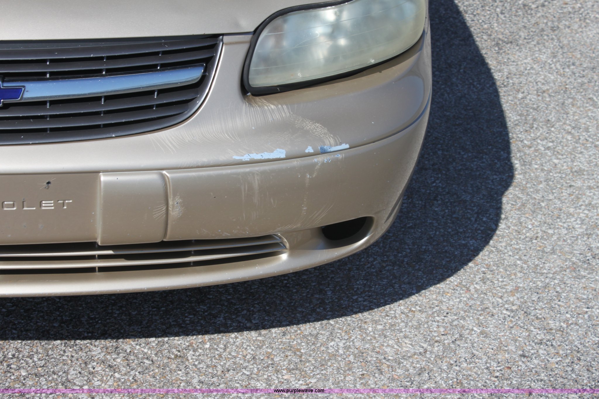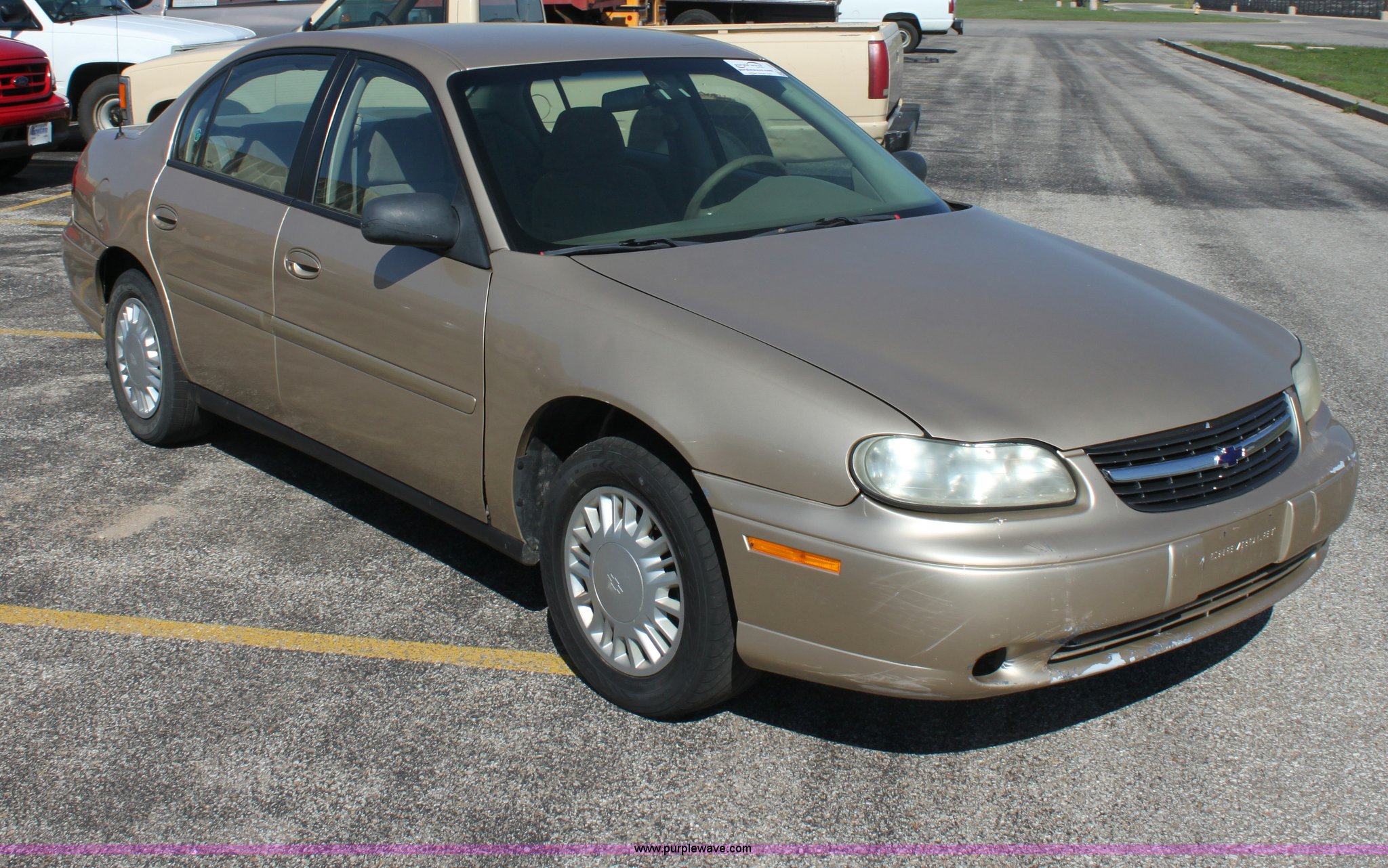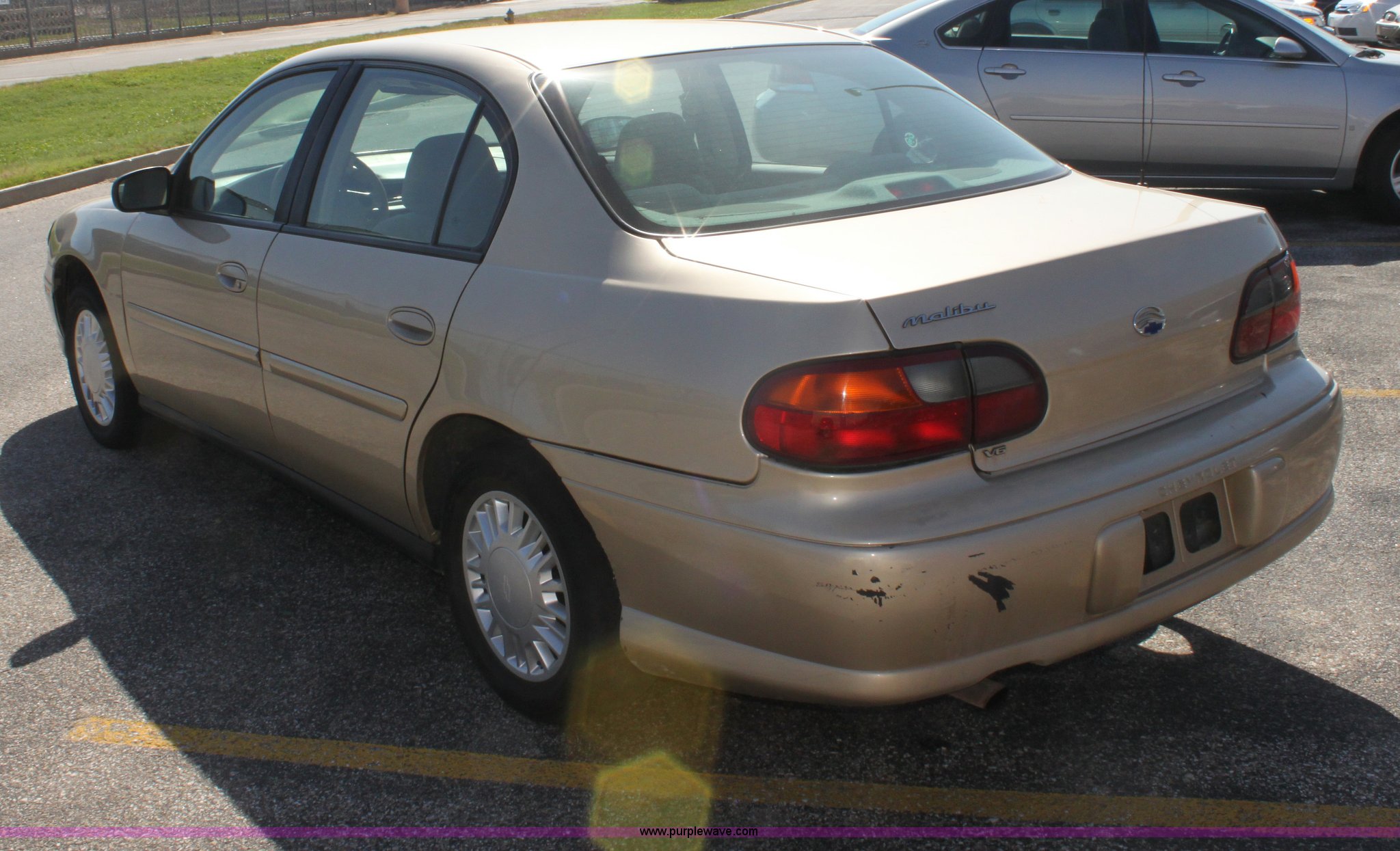 Purple Wave is selling a used Passenger Vehicle in Kansas. This item is a 2002 Chevrolet Malibu with the following: 225,964 miles on odometer, 3.1L V6 SFI gas engine, Automatic transmission, AC and heat, Tilt, Cruise, AM/FM/CD, Manual windows, Power locks, Cloth interior, 215/60R15 tires, Interior/exterior cosmetic damage, ABS light on, Front bumper scratched, Passenger front fender dented