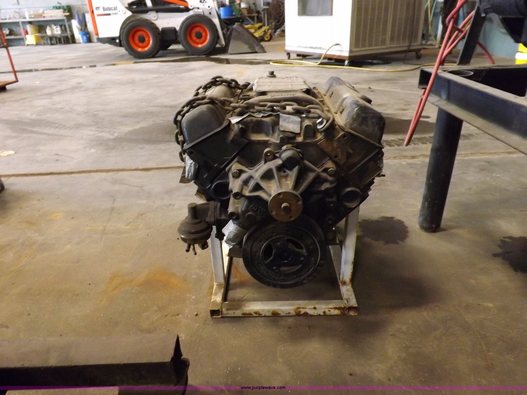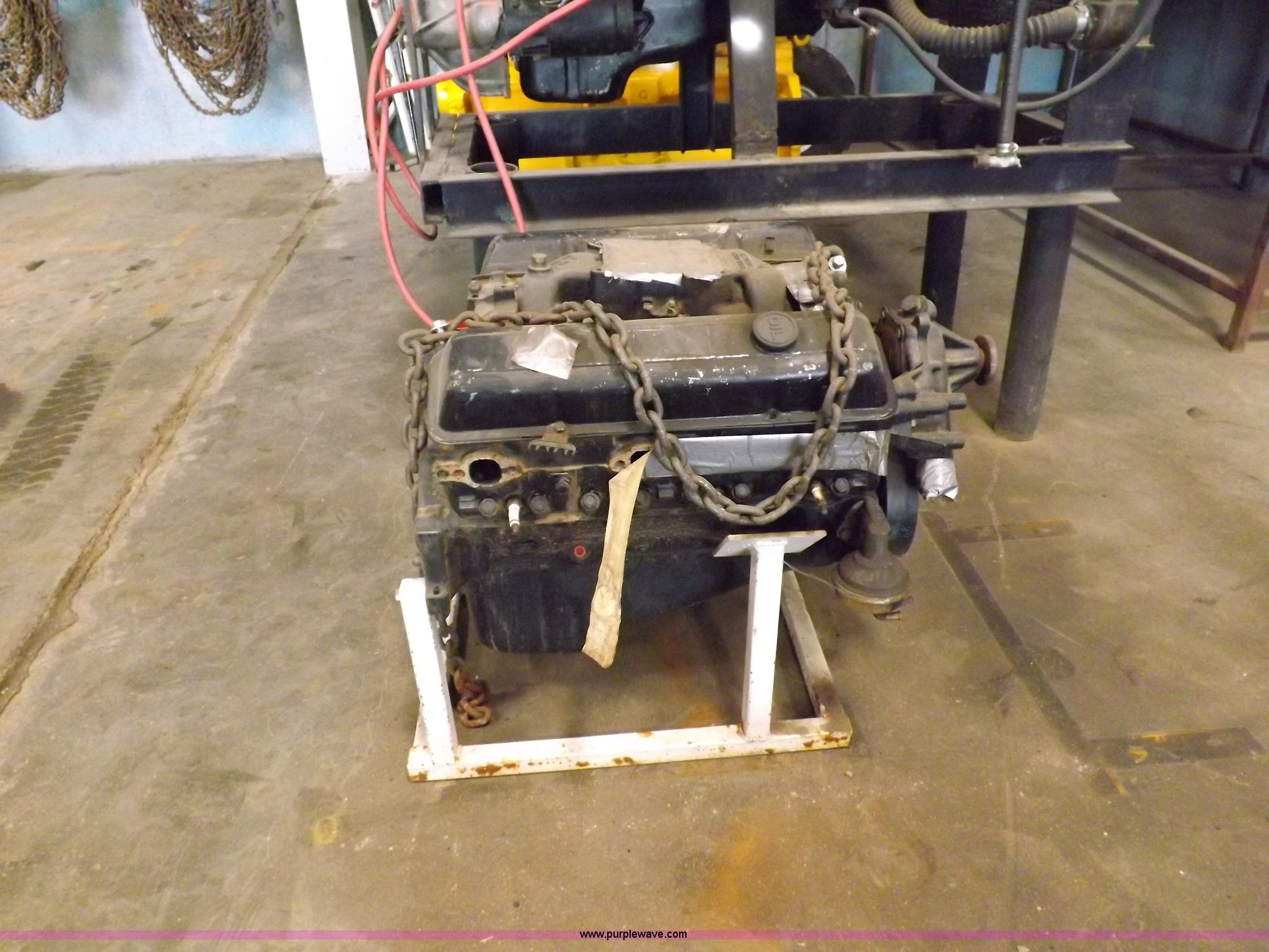 Chevrolet 350 CID V8 gas engine. On stand, Rebuilt by Harry's in Dodge City, Kansas. Shipping quotes available. Grant County Road and Bridge. 1550 N Road I. Ulysses, KS 67880