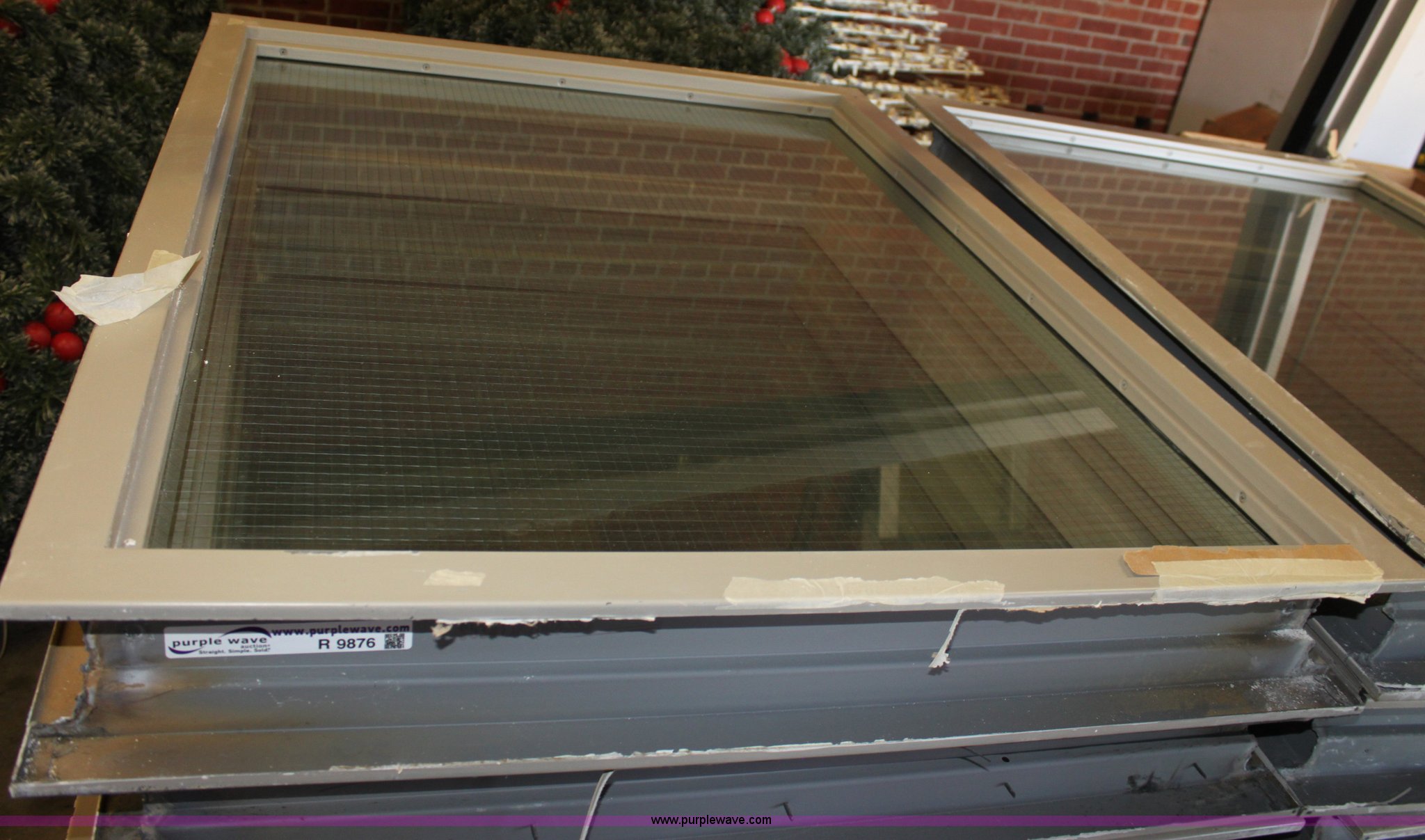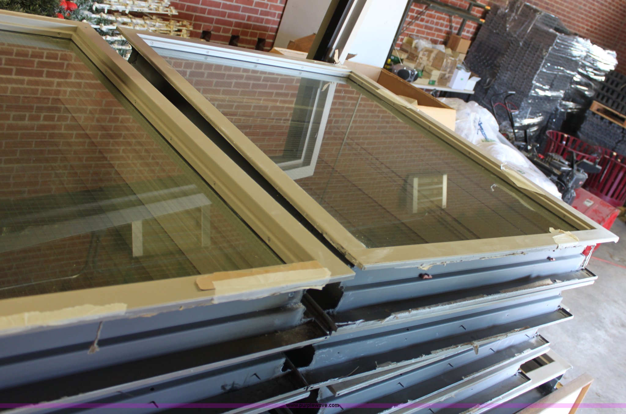 Purple Wave is selling a used Home Improvement in Kansas. This item is a (9) windows with the following: (8) 40"W x 52"H fire rated windows, One missing glass, 96"W x 52"H fire rated double window